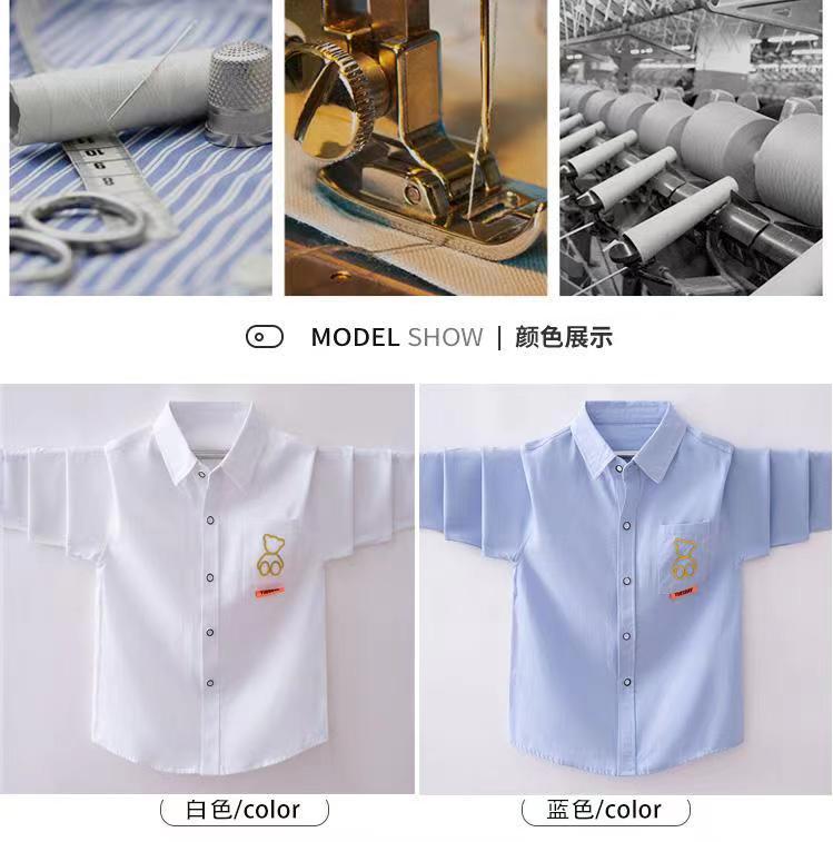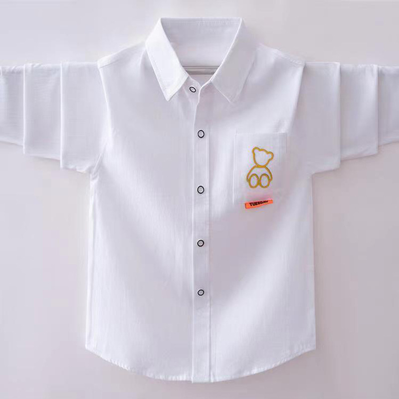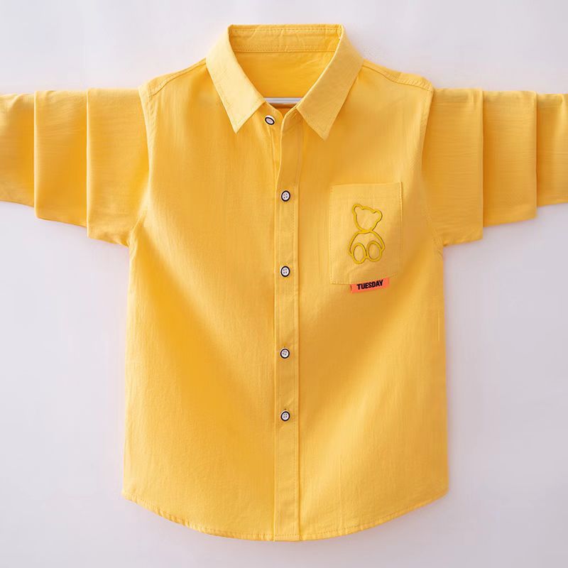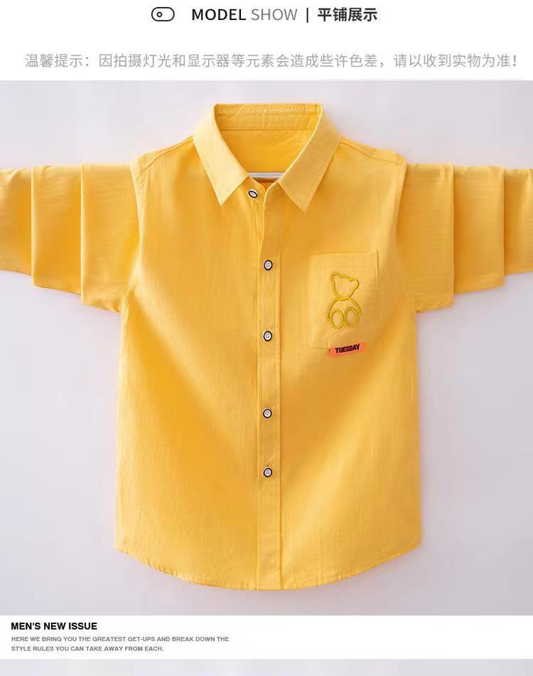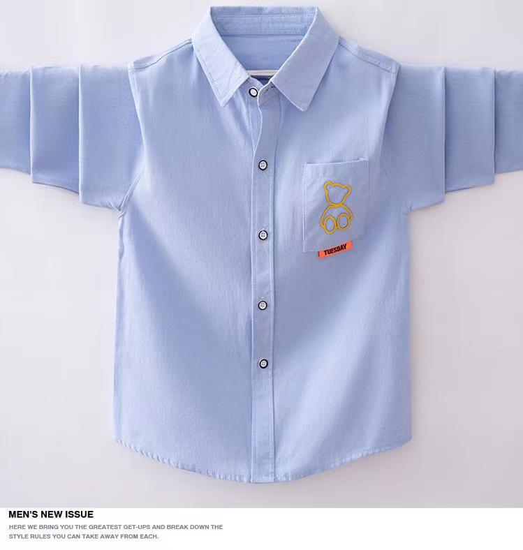어린이 셔츠 봄과 가을 단색 소년 중 큰 어린이 셔츠 어린이 곰 옷깃 긴팔 셔츠 면 셔츠스토어 가기