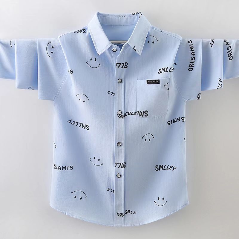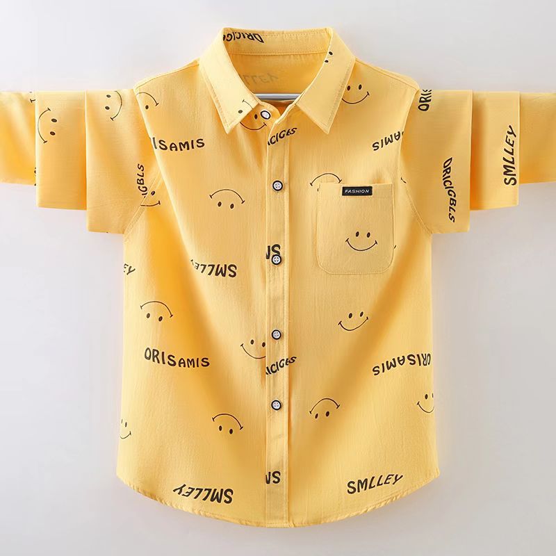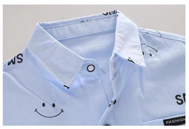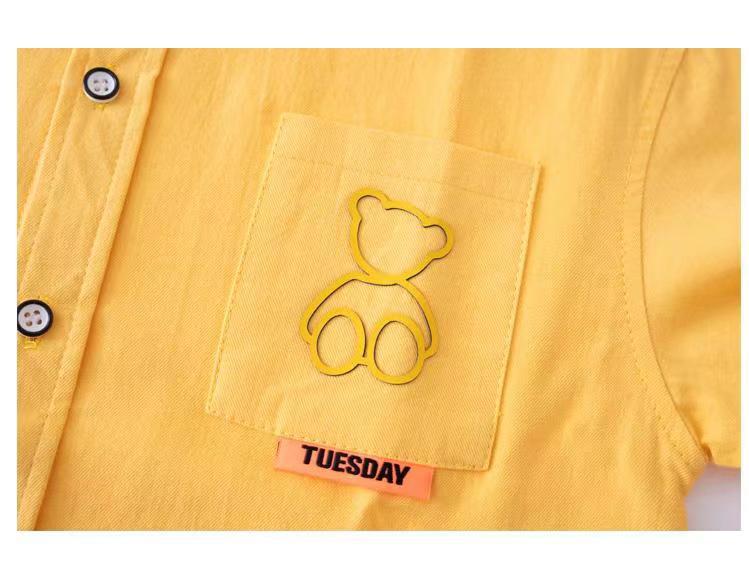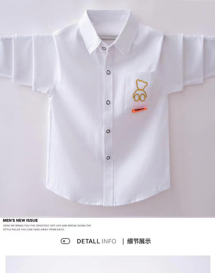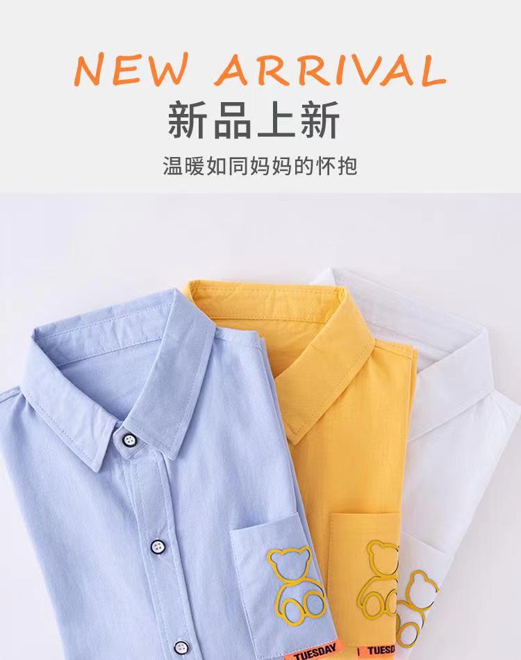 어린이 셔츠 봄과 가을 단색 소년 중 큰 어린이 셔츠 어린이 곰 옷깃 긴팔 셔츠 면 셔츠스토어 가기