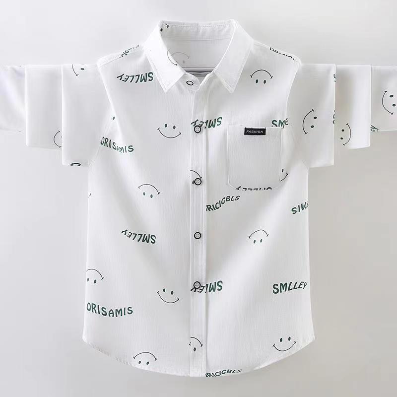 어린이 셔츠 봄과 가을 단색 소년 중 큰 어린이 셔츠 어린이 곰 옷깃 긴팔 셔츠 면 셔츠