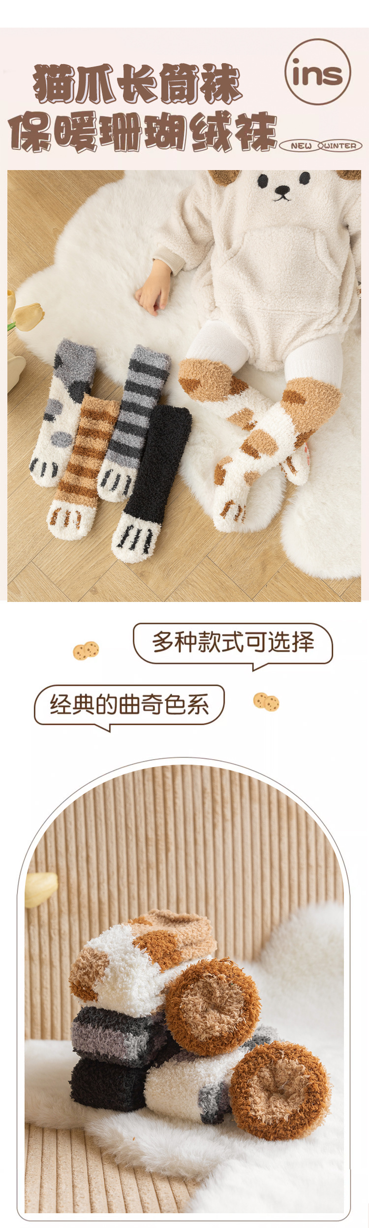 아기 양말 겨울 두꺼운 긴 귀여운 슈퍼 귀여운 가을과 겨울 아기 양말 겨울 기모 따뜻한 신생아 양말