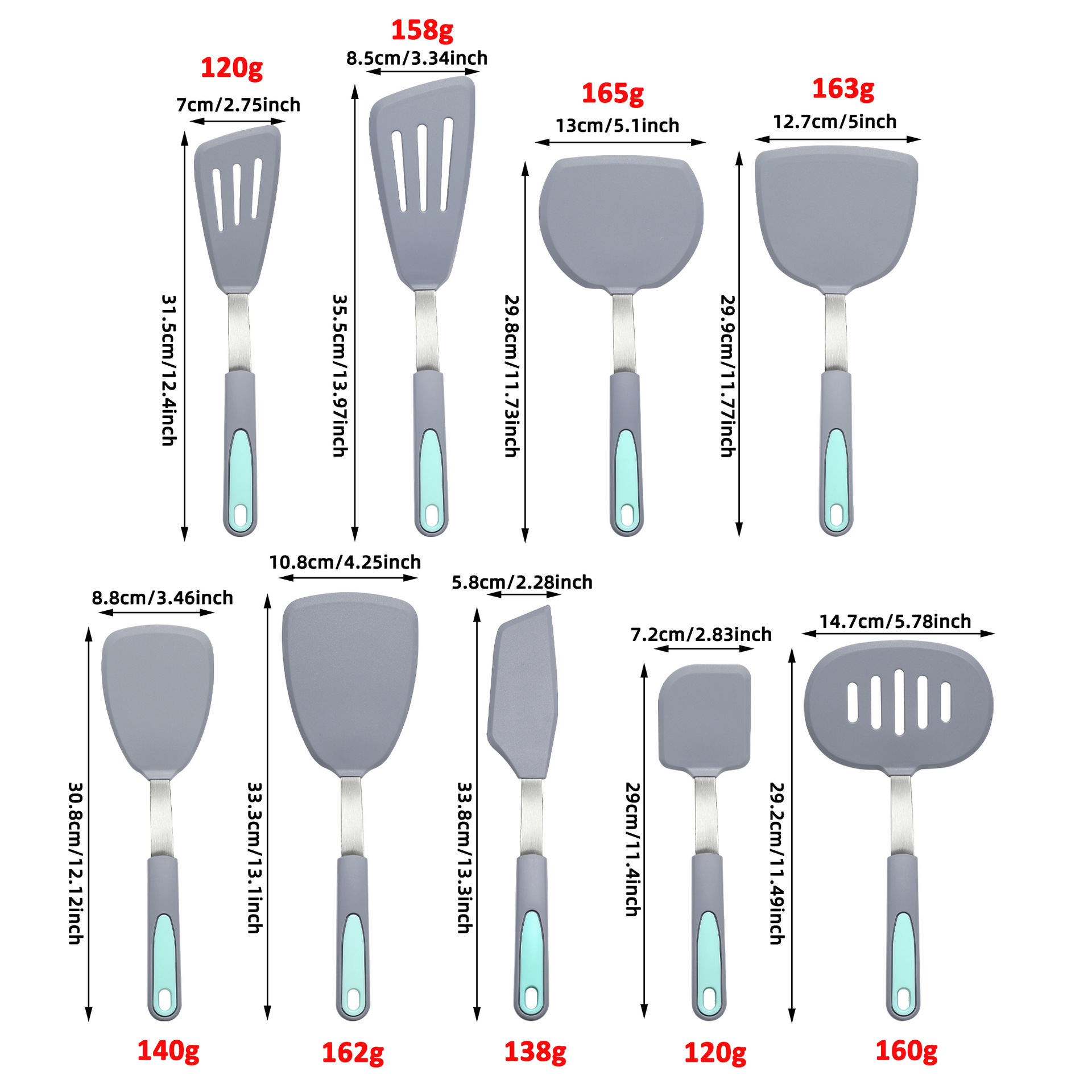 더블 컬러 실리콘 스프링 삽 고온 저항 주걱 요리 주방 주방 요리 도구 Turner Spatula