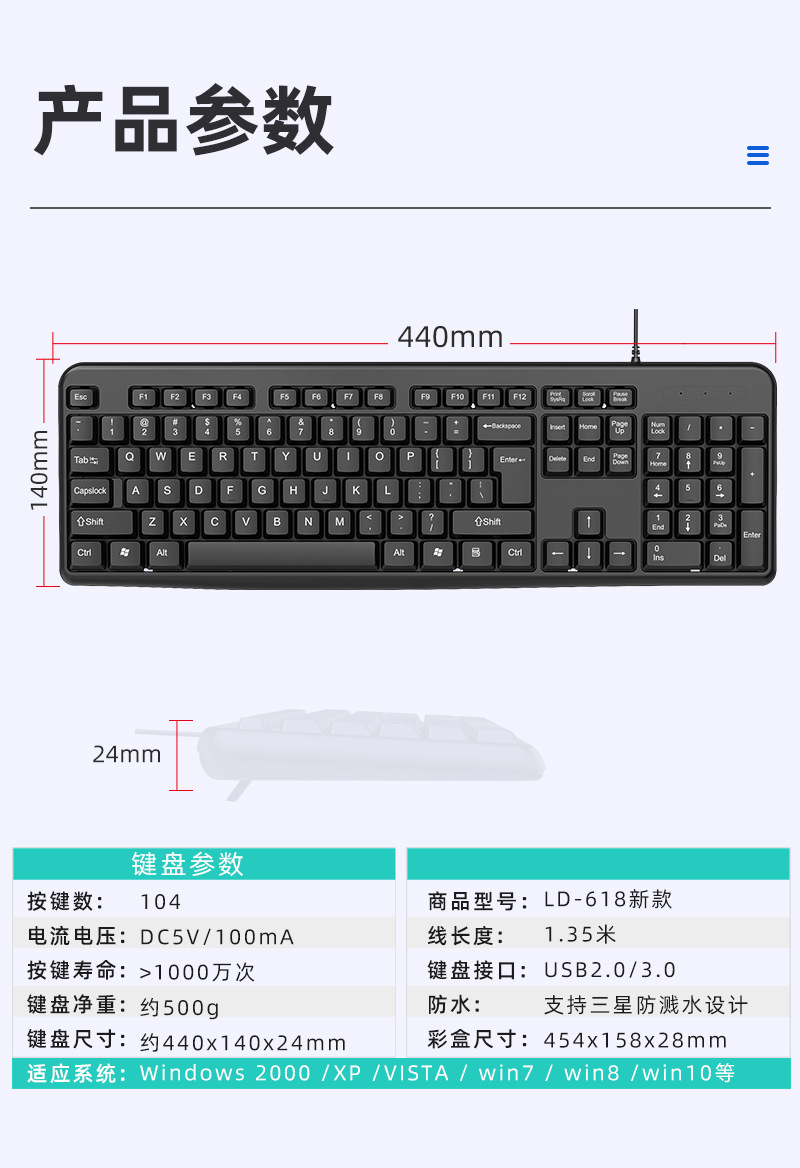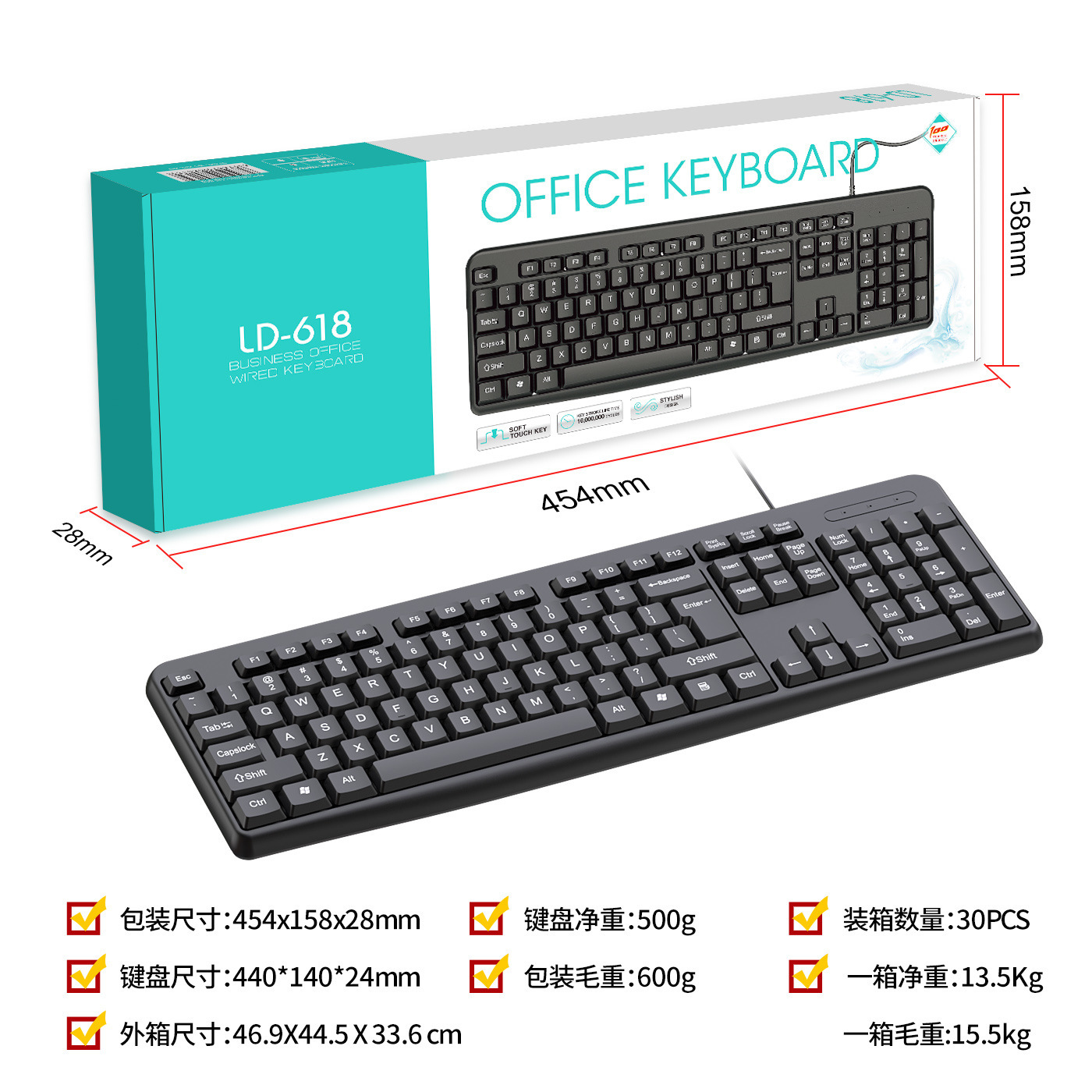 • LD-618 단일 키보드 (컬러 박스 또는 크라프트 박스 포장 랜덤 발송)
