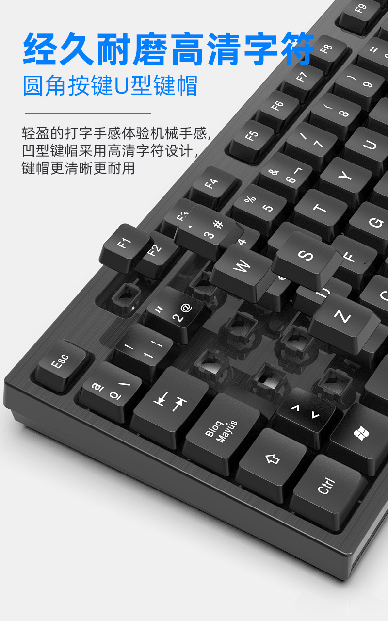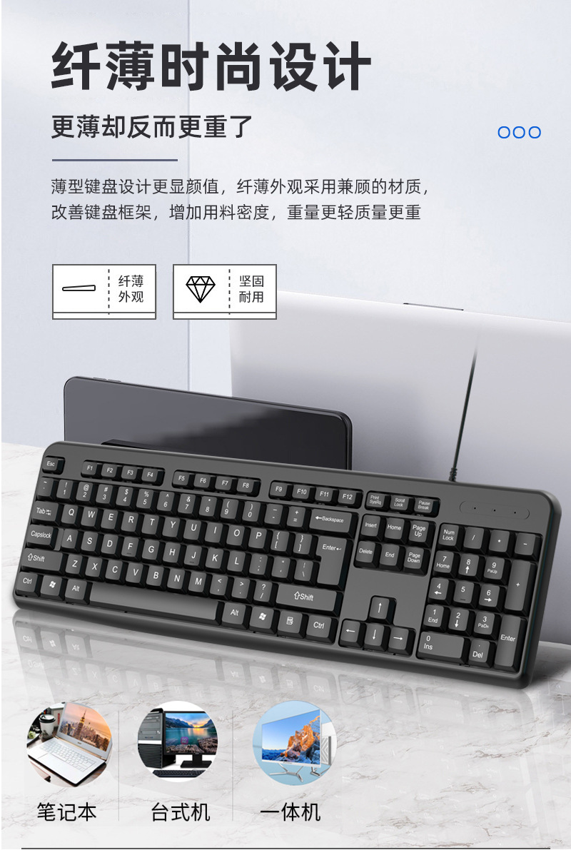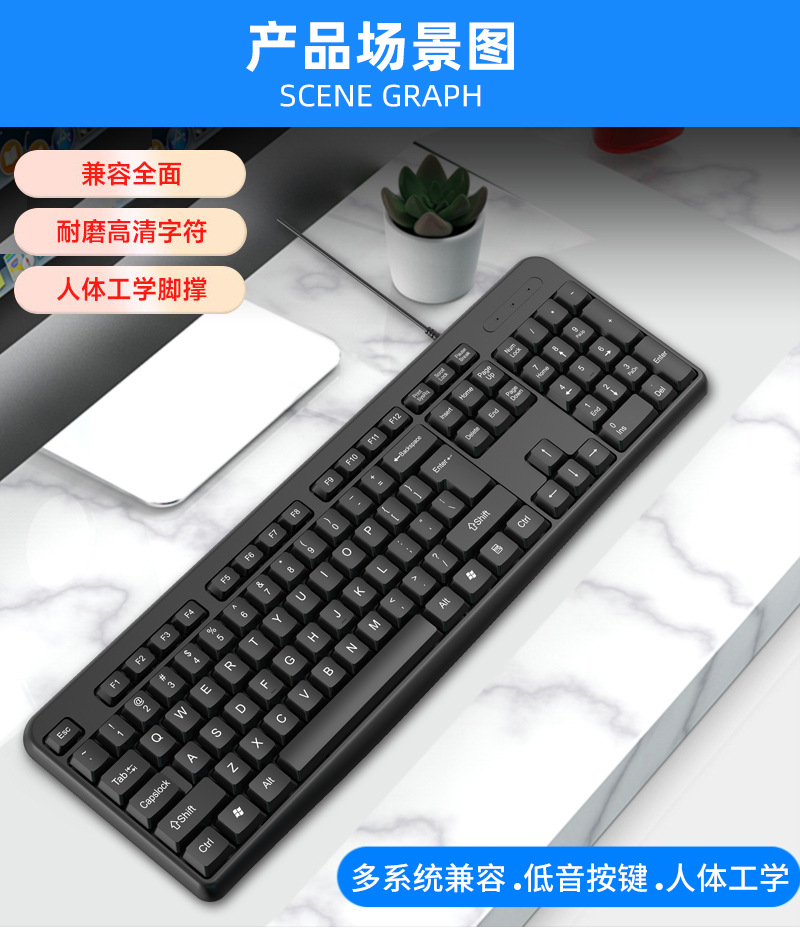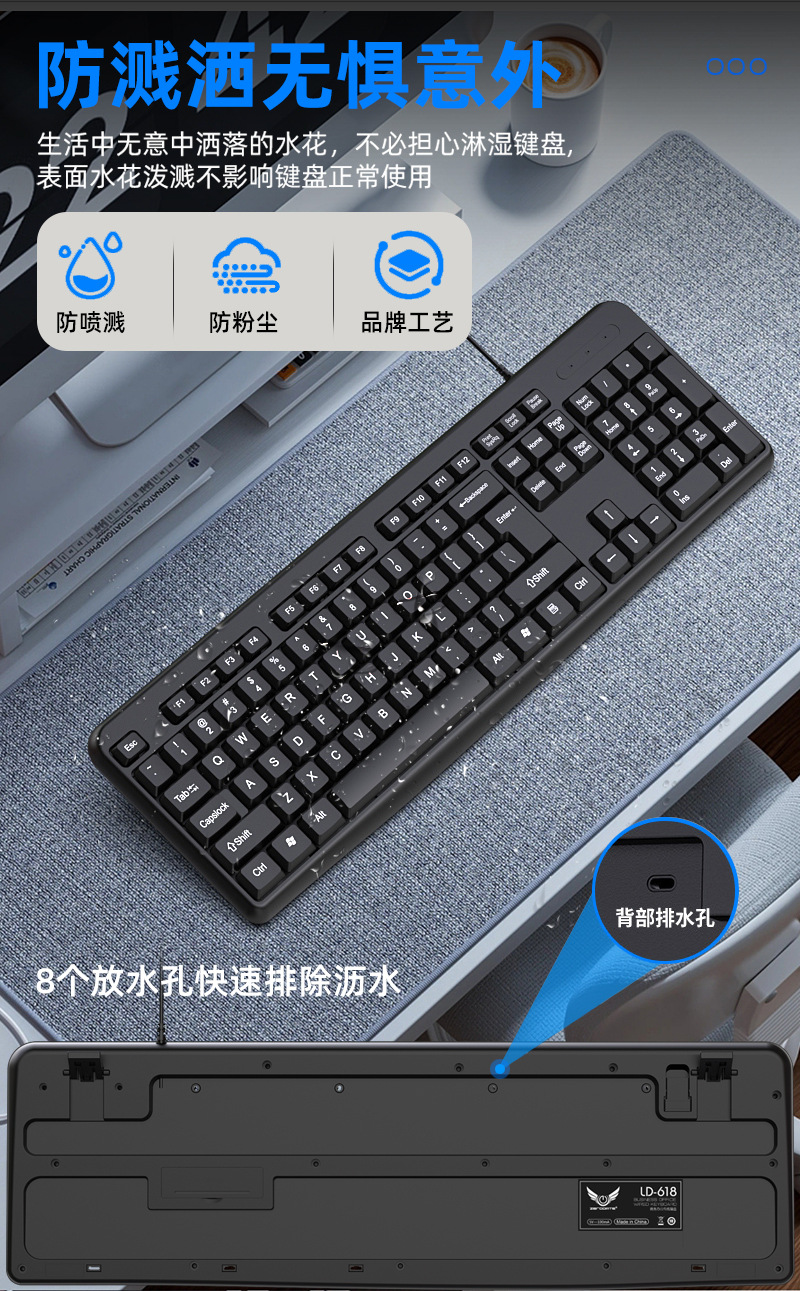 공장 스팟 618 유선 키보드 스플래시 증거 초콜릿 키 캡 경량 멤브레인 키보드 usb 오피스 키보드스토어 가기