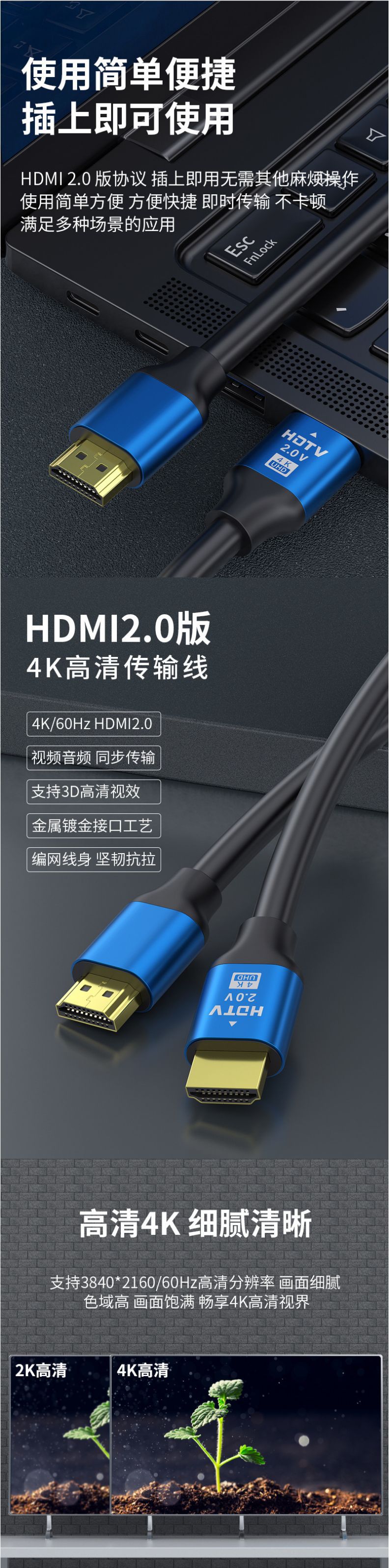 Hdmi2.0 4K TV 컴퓨터 디스플레이 화면 HDMI 케이블 프로젝터 HD 케이블 hdmi 케이블 도매스토어 가기