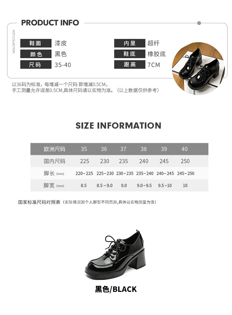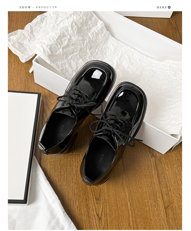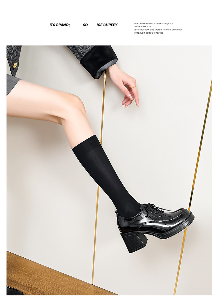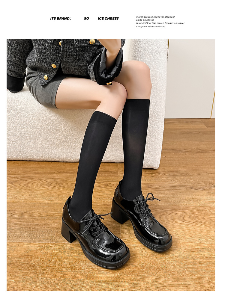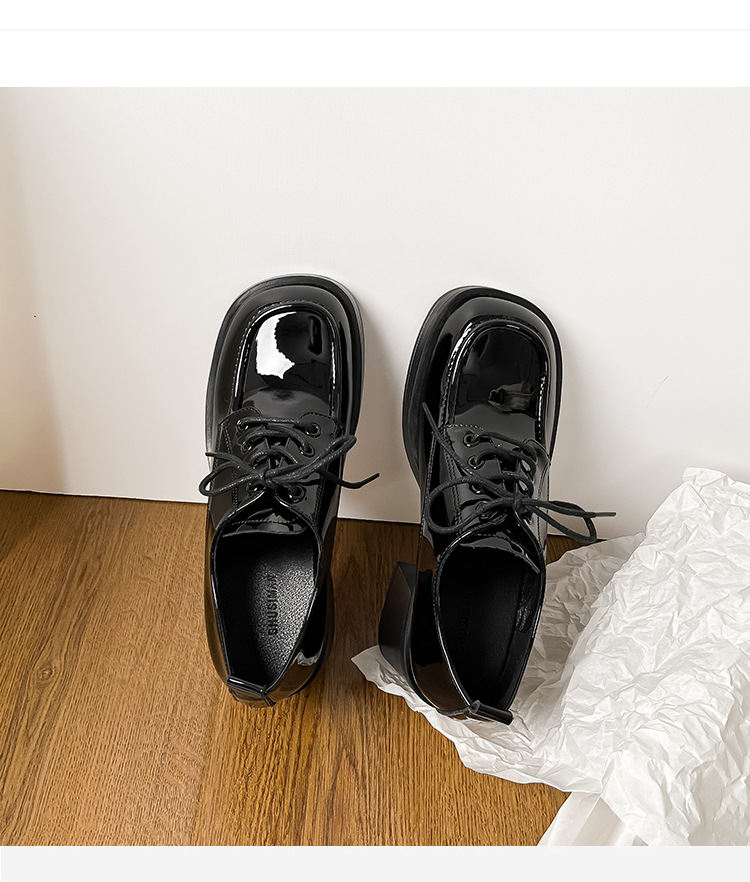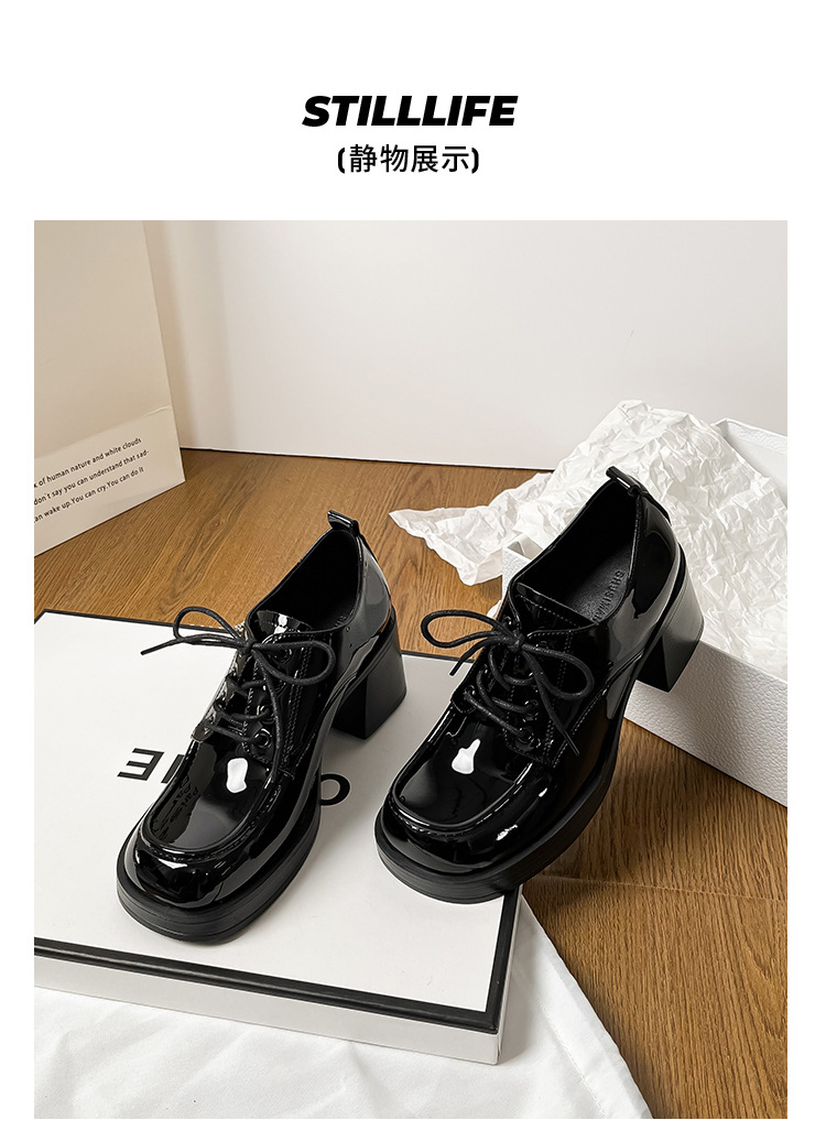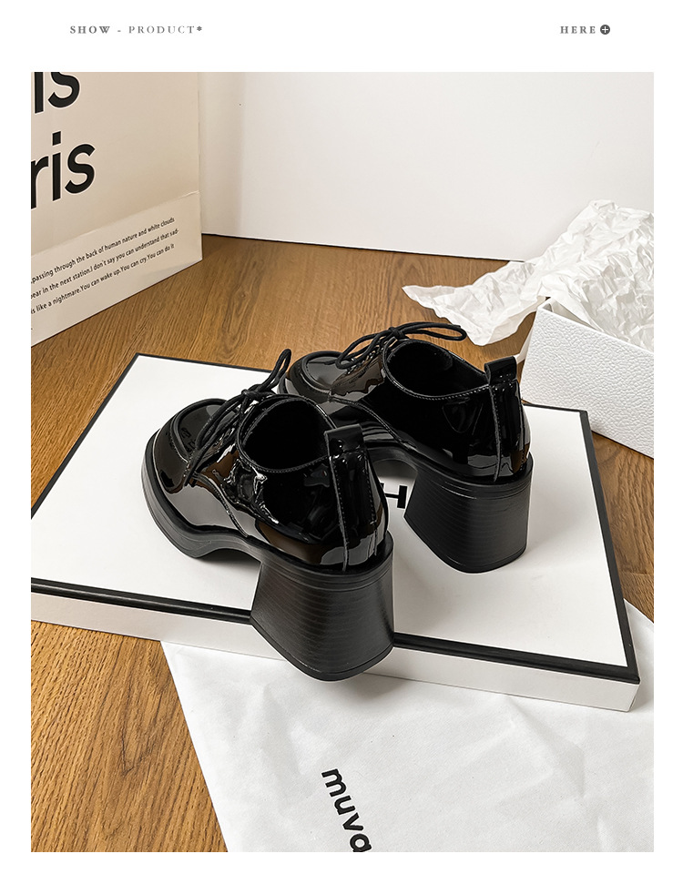 레이스 업 특허 가죽 샤넬 하이힐 봄 새로운 블랙 두꺼운 힐 작업 신발 편안한 메리 제인 싱글 레이어 신발스토어 가기
