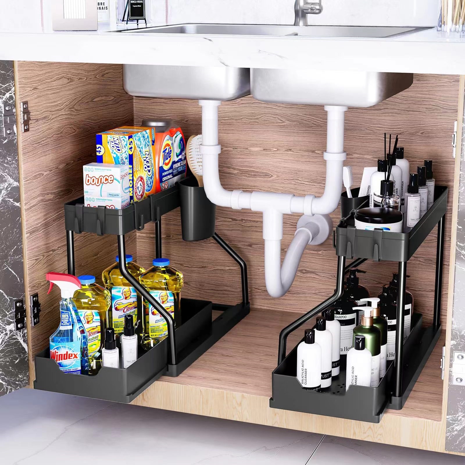 다기능 더블 레이어 플로어 타입 주방 조리대 스토리지 랙 조미료 랙 화장실 스토리지 랙 싱크 스토리지 랙
