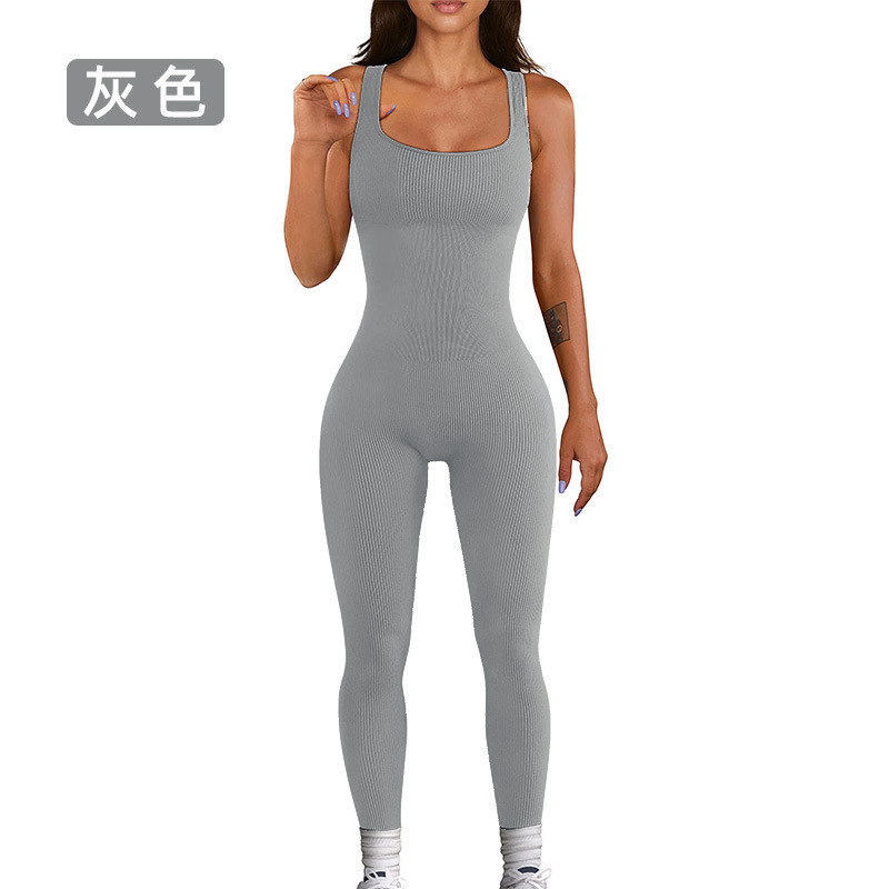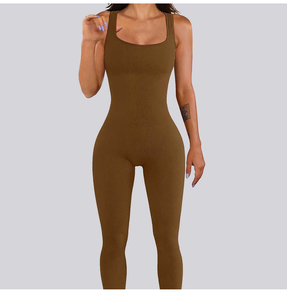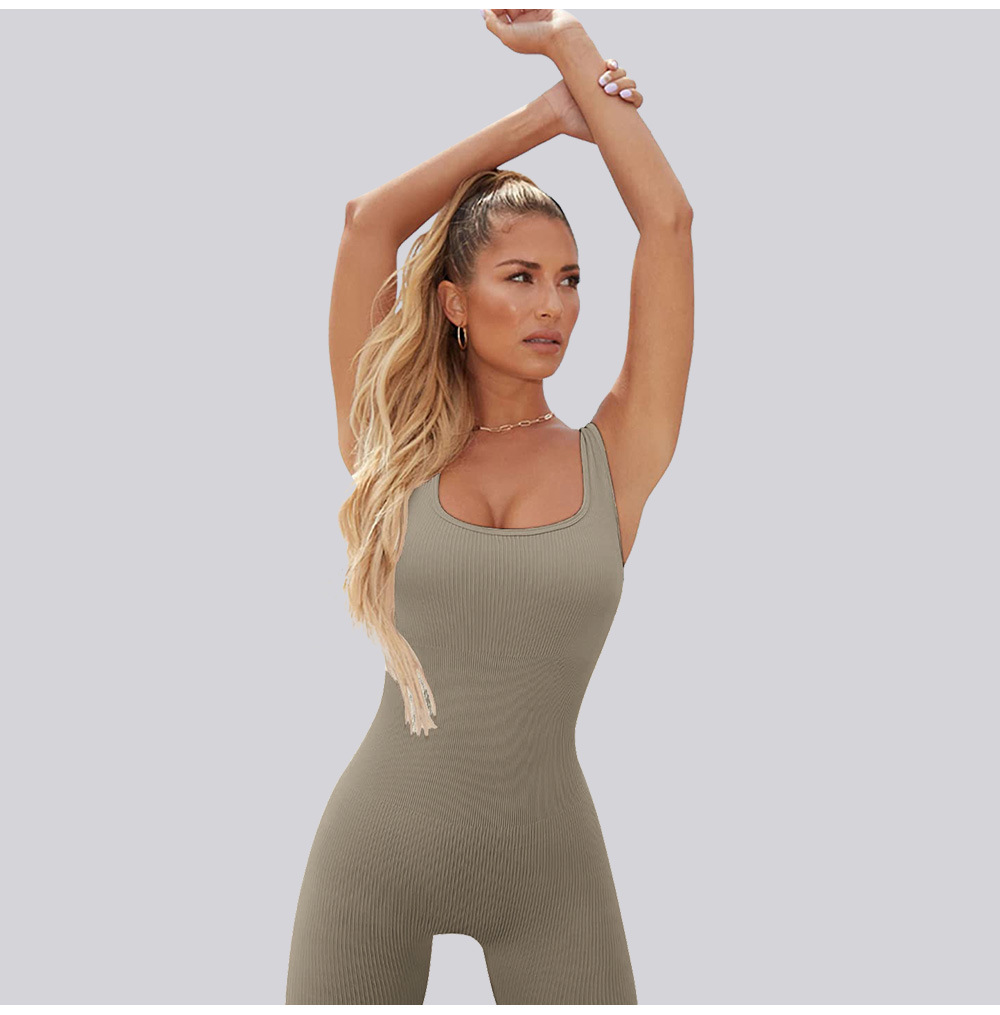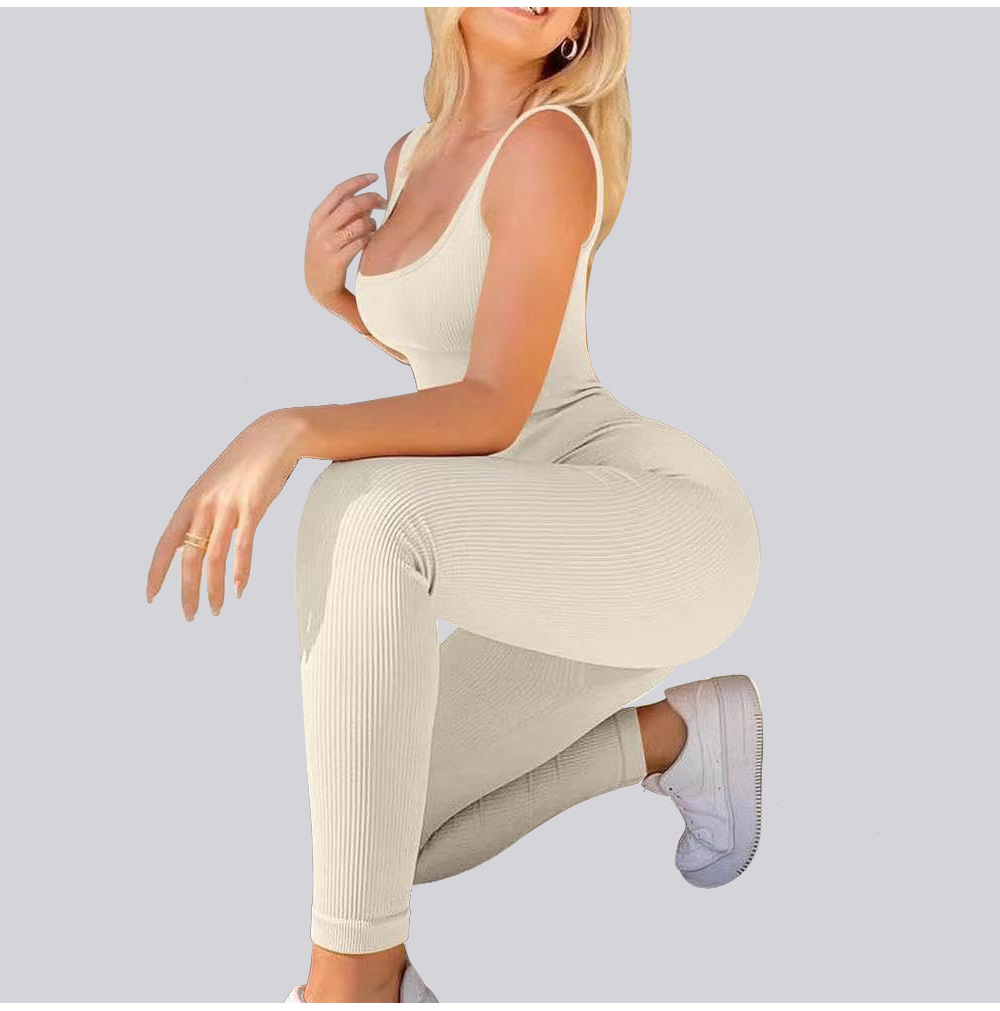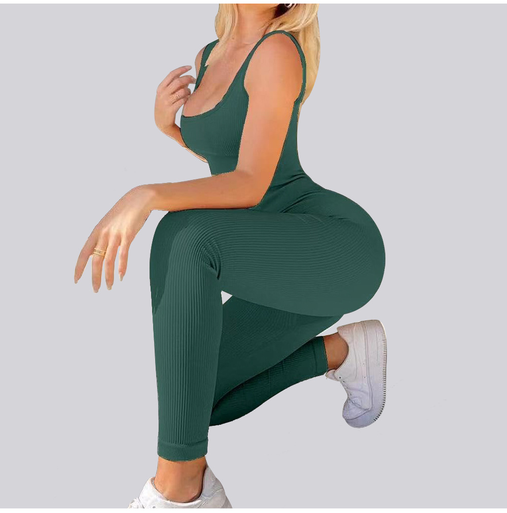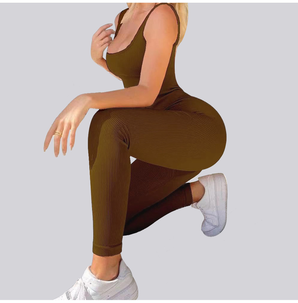 넓은 어깨 끈이 있는 유럽과 미국의 국경 복숭아 엉덩이 요가 점프수트, 탈부착 가능한 가슴 패드, 타이트한 긴 점프수트, 피트니스웨어