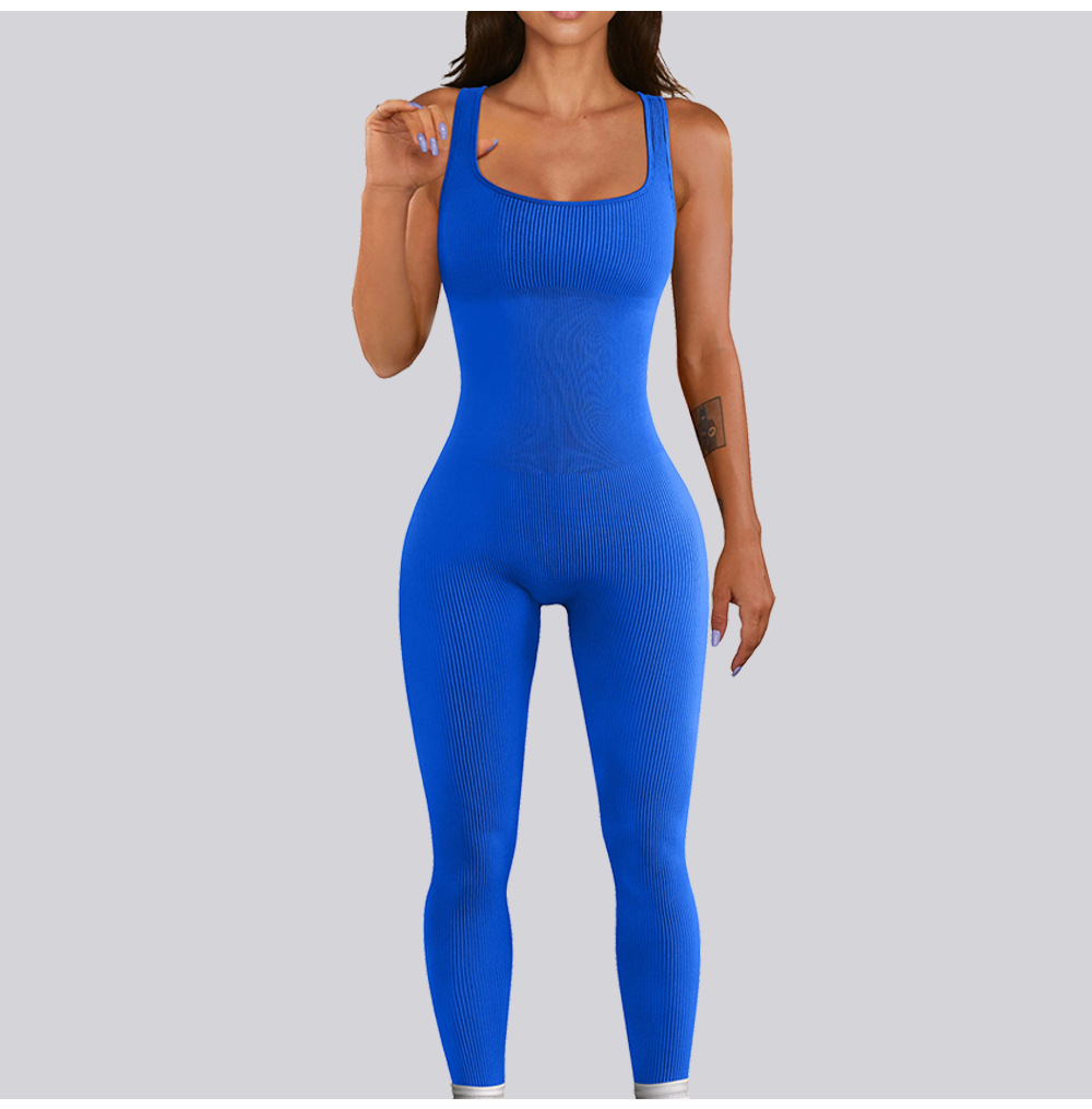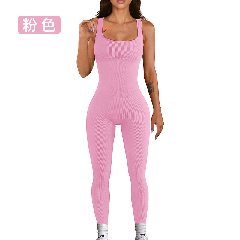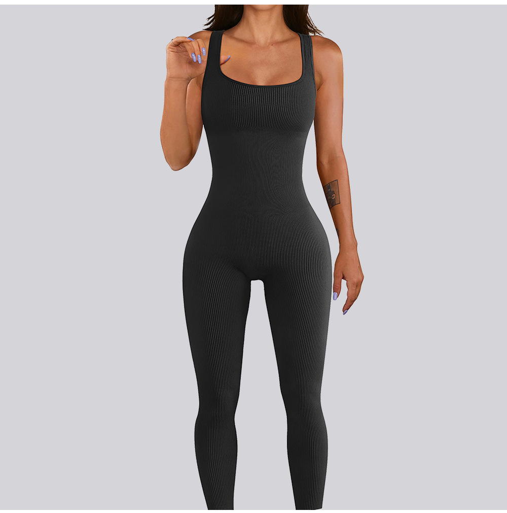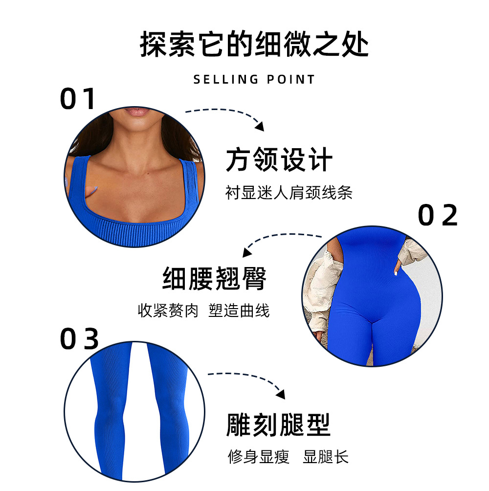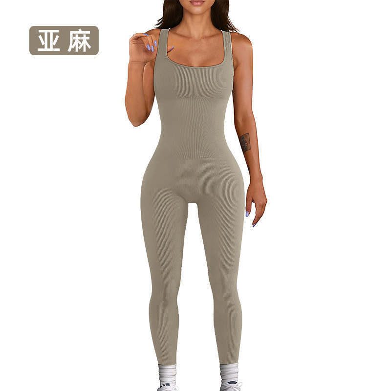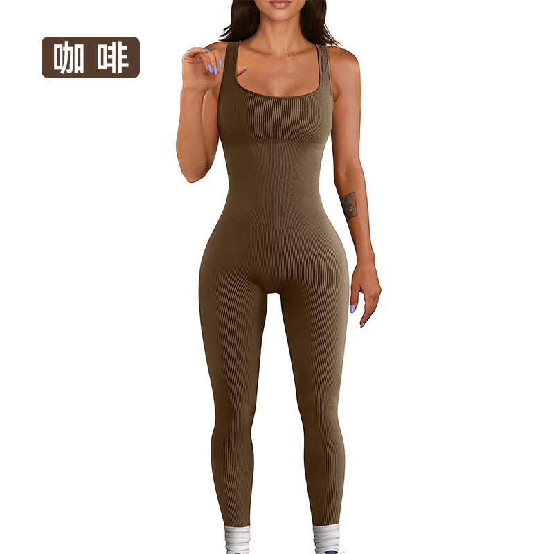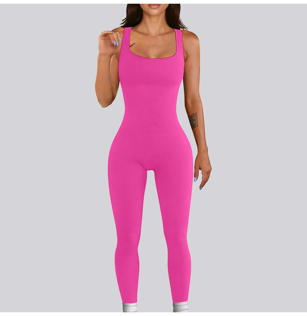넓은 어깨 끈이 있는 유럽과 미국의 국경 복숭아 엉덩이 요가 점프수트, 탈부착 가능한 가슴 패드, 타이트한 긴 점프수트, 피트니스웨어