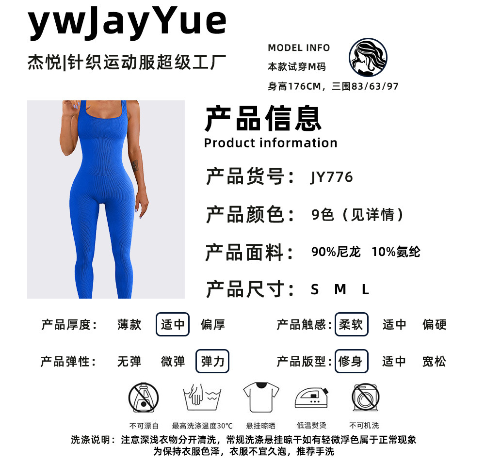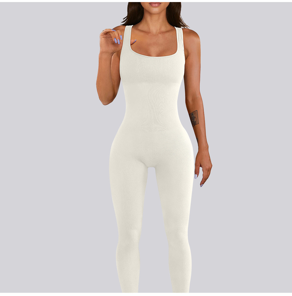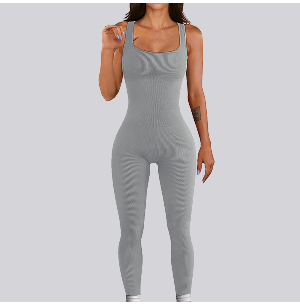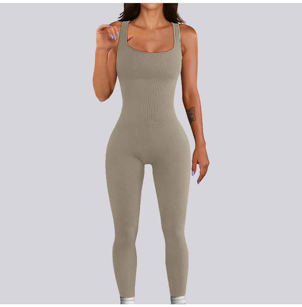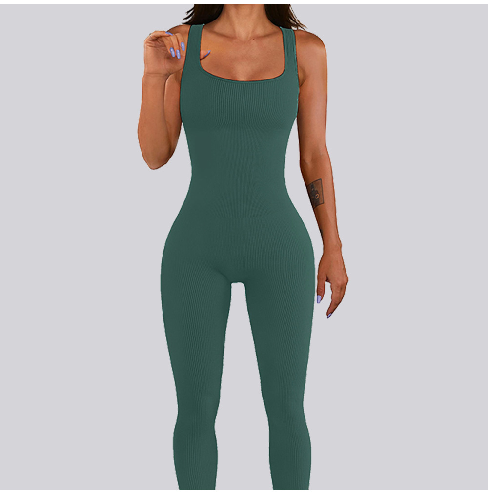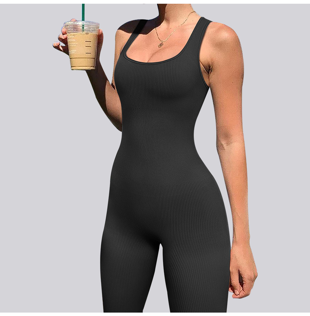넓은 어깨 끈이 있는 유럽과 미국의 국경 복숭아 엉덩이 요가 점프수트, 탈부착 가능한 가슴 패드, 타이트한 긴 점프수트, 피트니스웨어