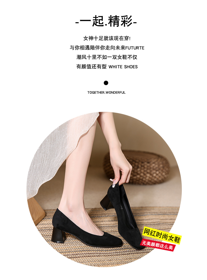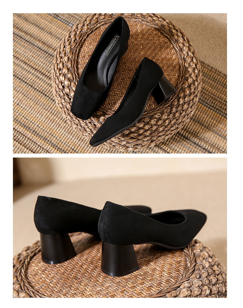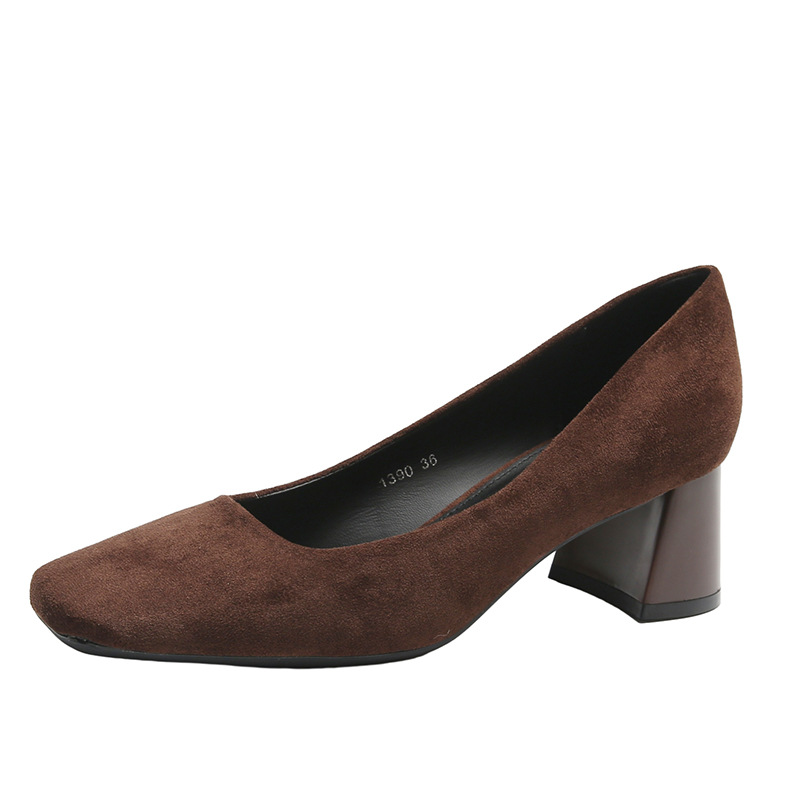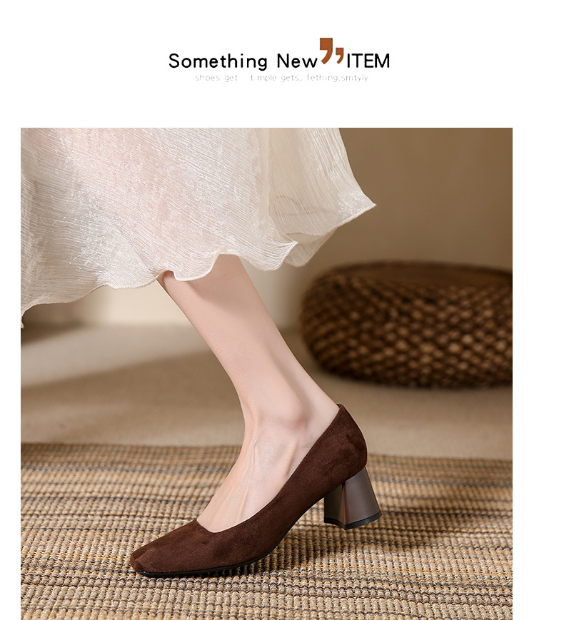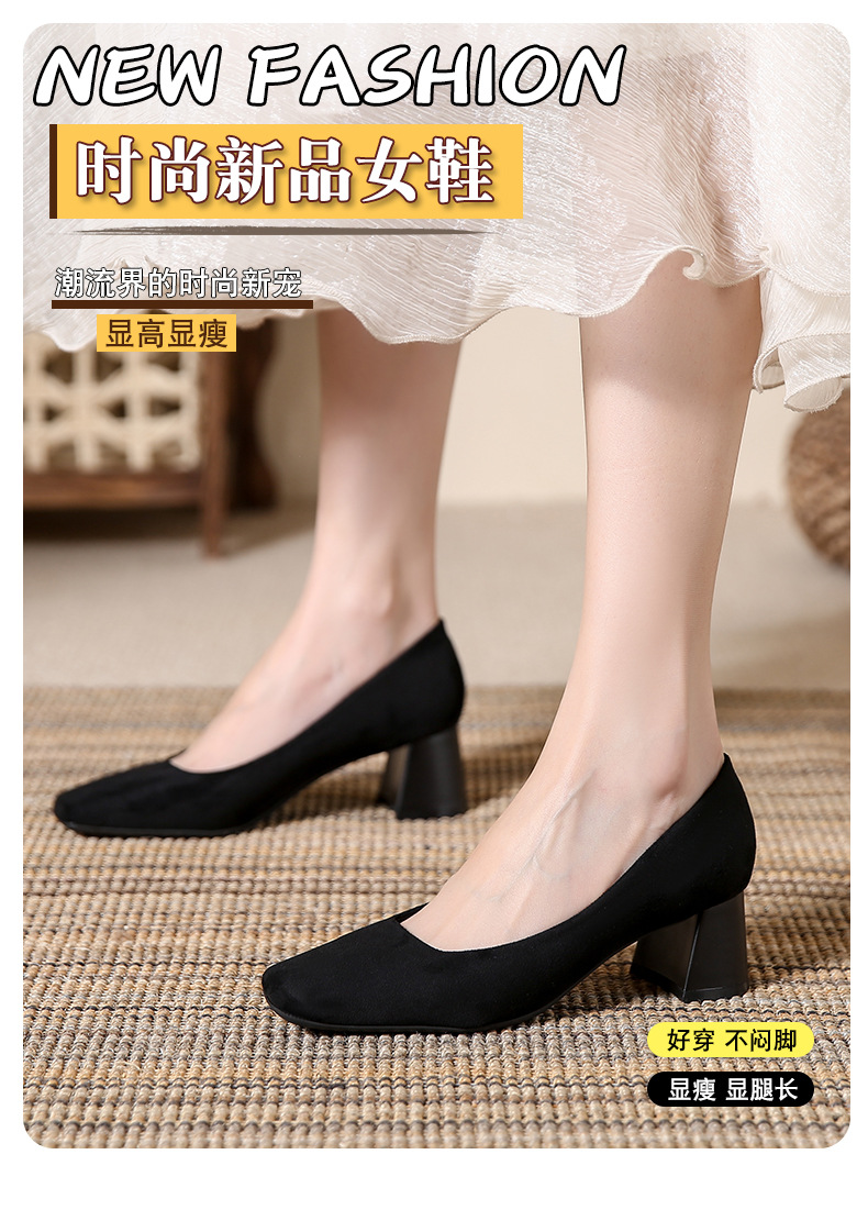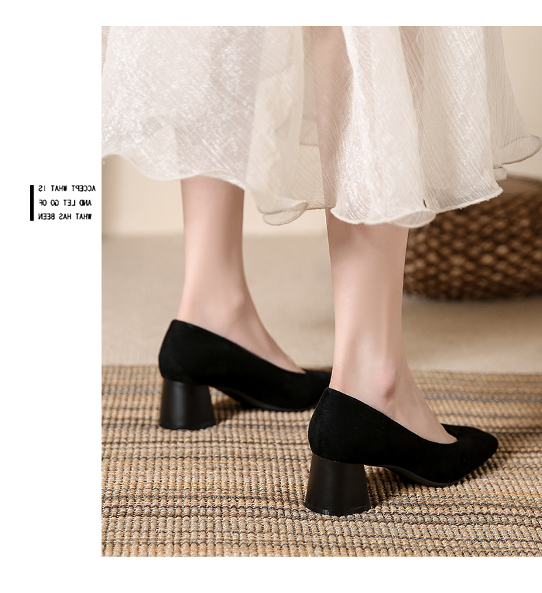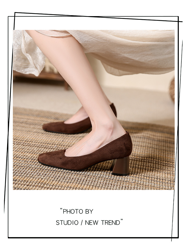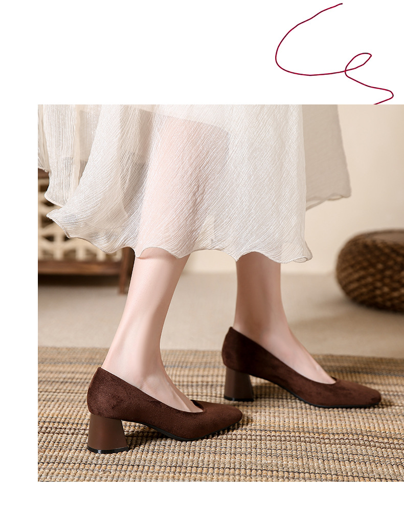 스퀘어토 두꺼운 굽 여성용 슈즈, 누벅 가죽, 2026년 봄 신상, 레트로 스타일, 다용도, 얕은 입구 하이힐 여성화스토어 가기