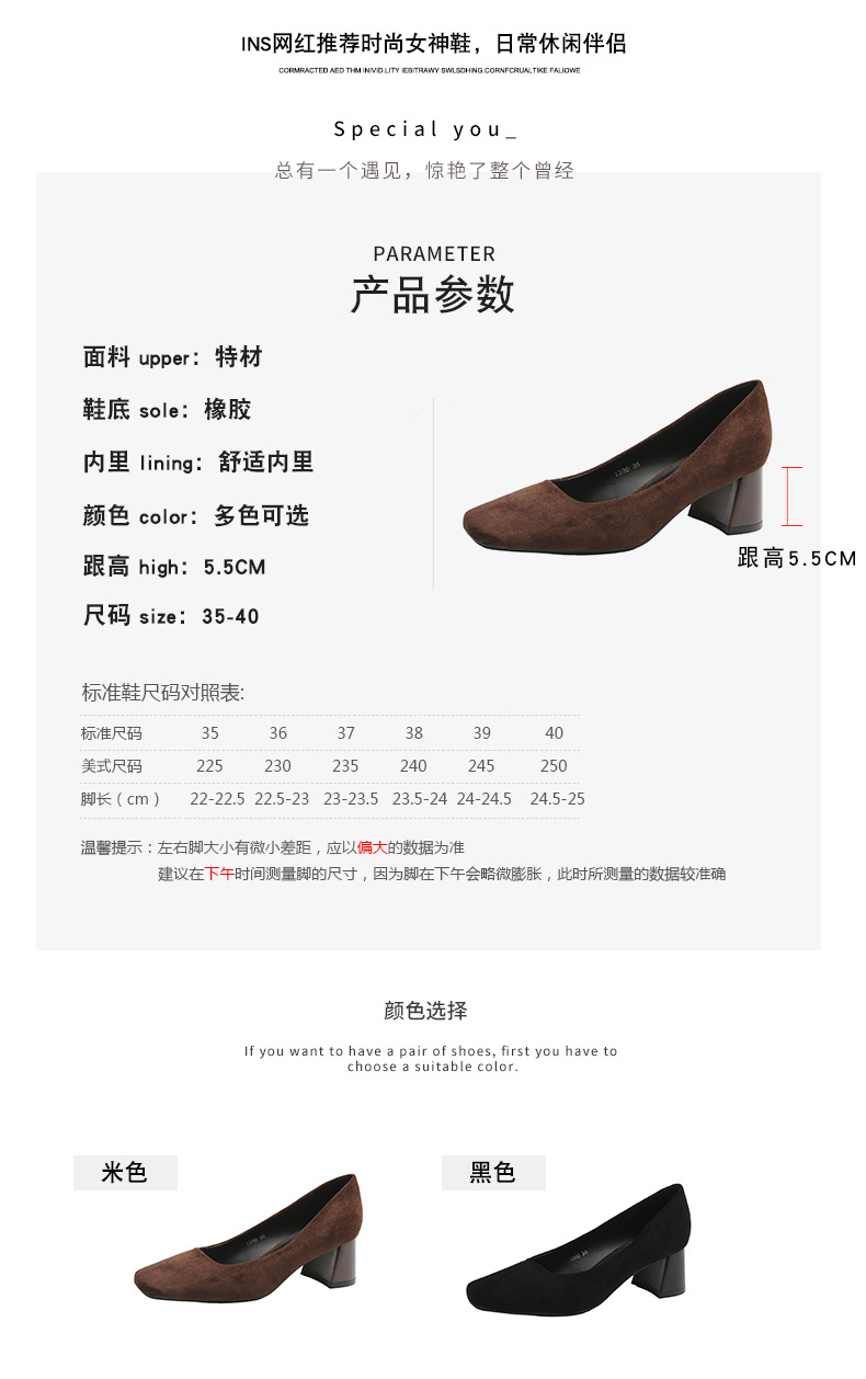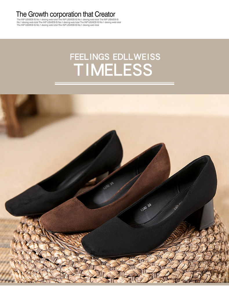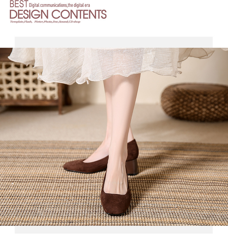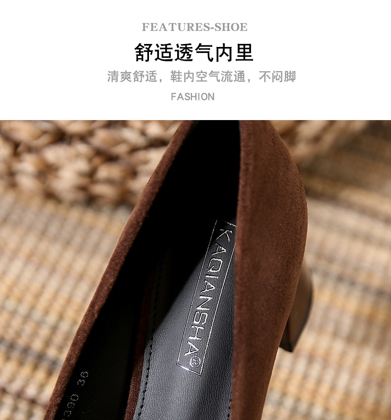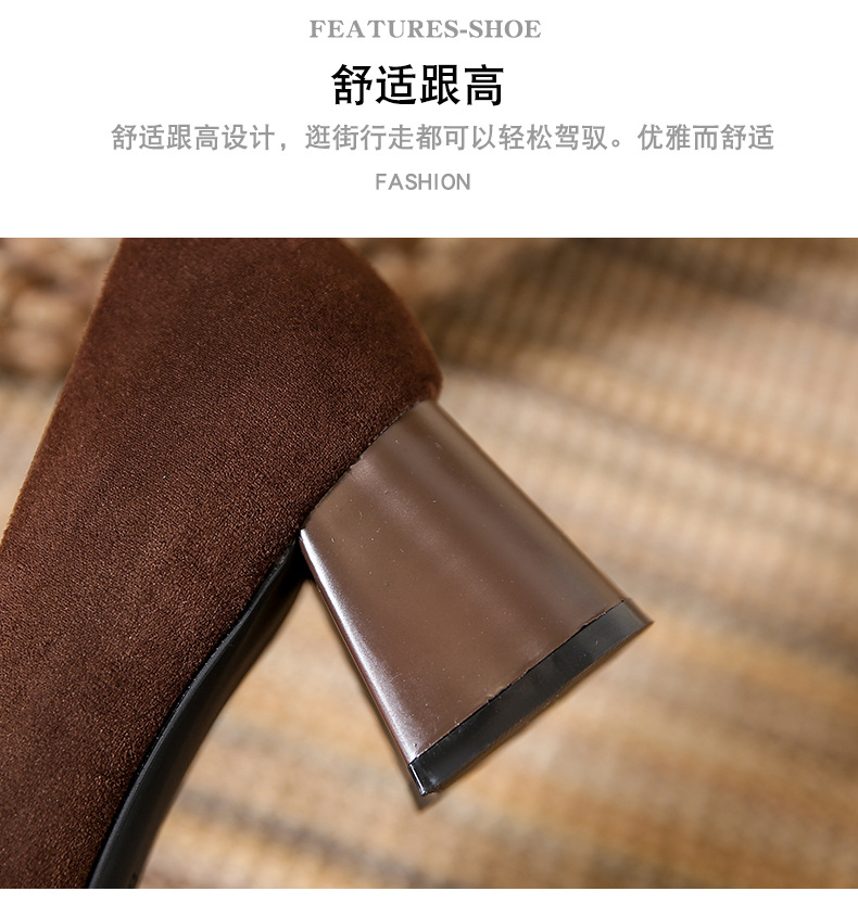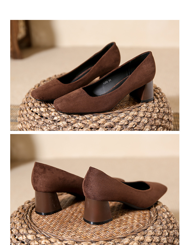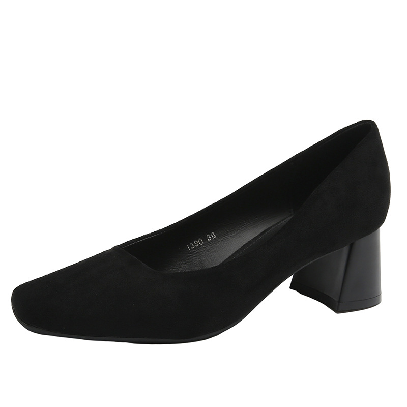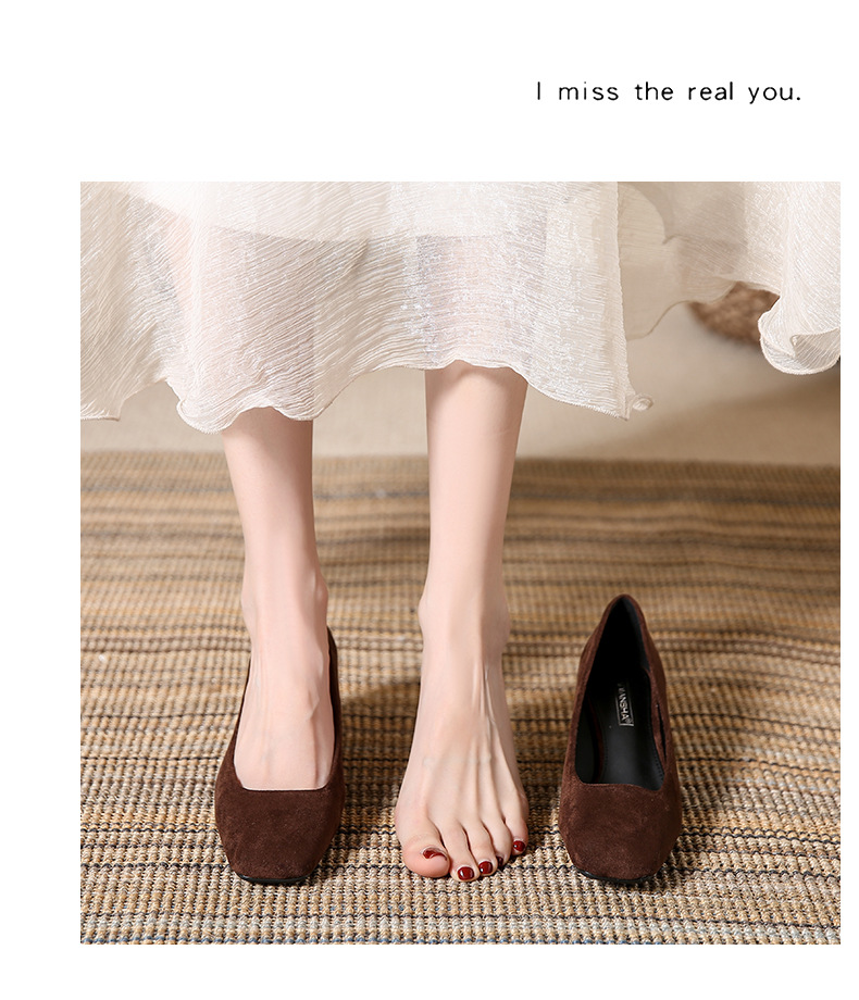 스퀘어토 두꺼운 굽 여성용 슈즈, 누벅 가죽, 2026년 봄 신상, 레트로 스타일, 다용도, 얕은 입구 하이힐 여성화스토어 가기