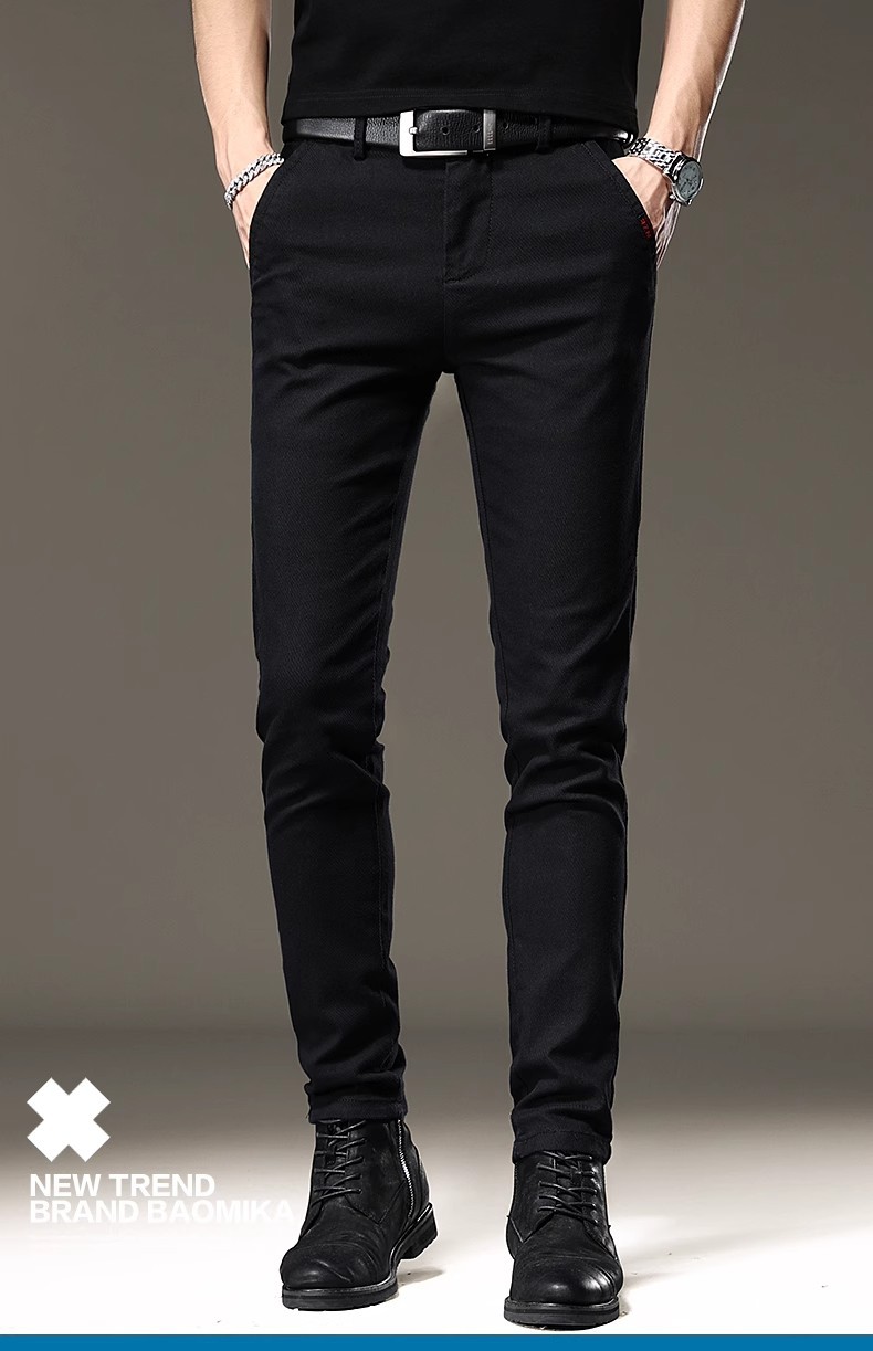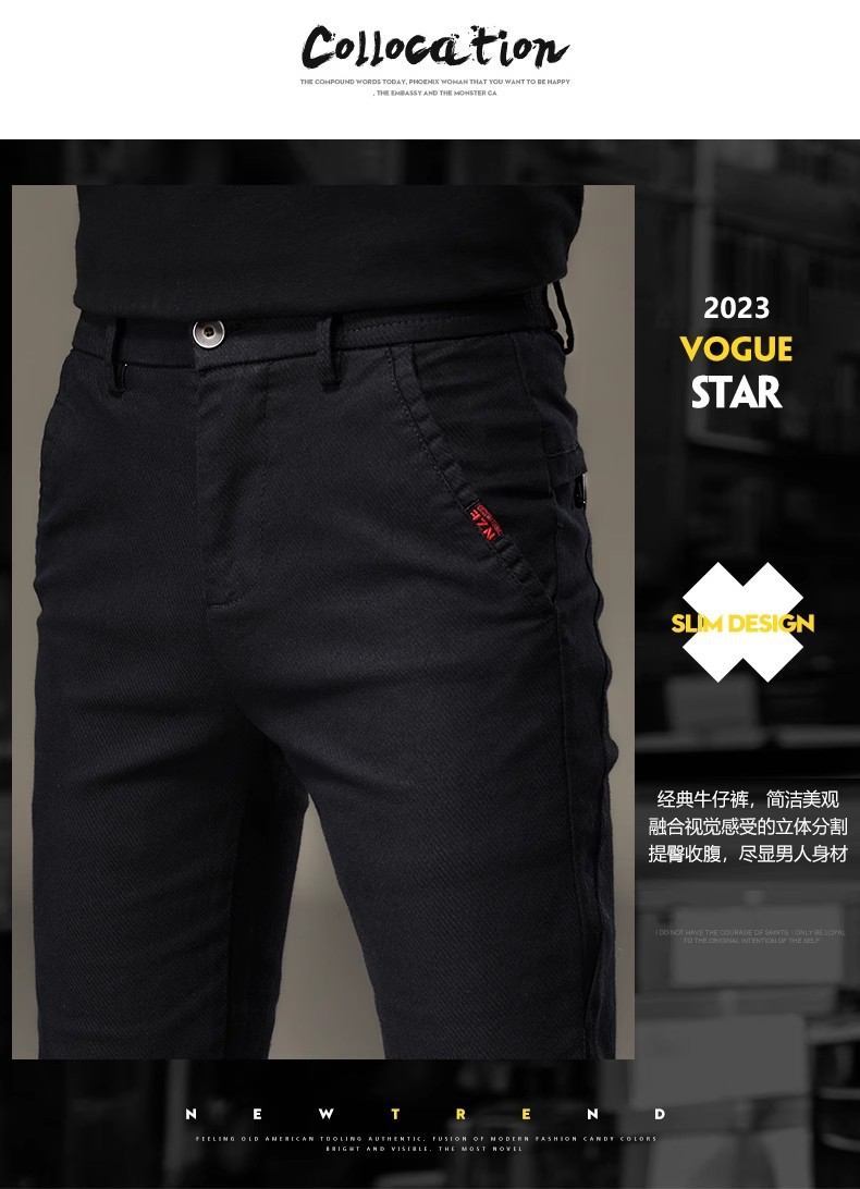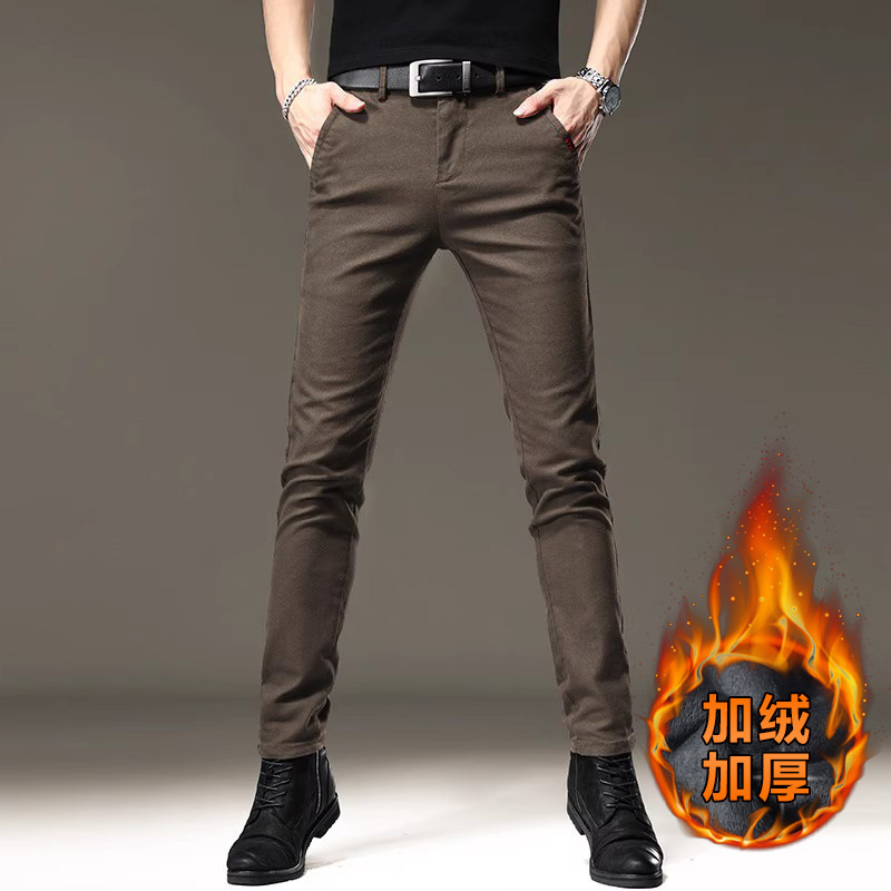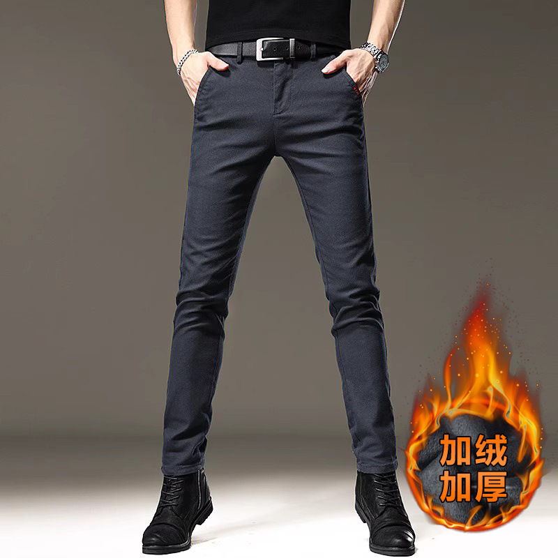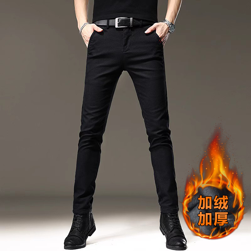 2023 겨울 플러스 벨벳 블랙 청바지 남성용 탄성 하이 엔드 캐주얼 비즈니스 슬림 피트 바지