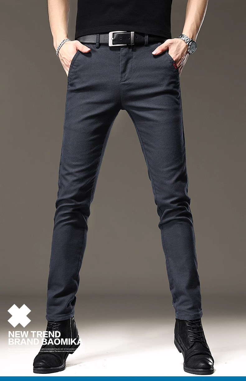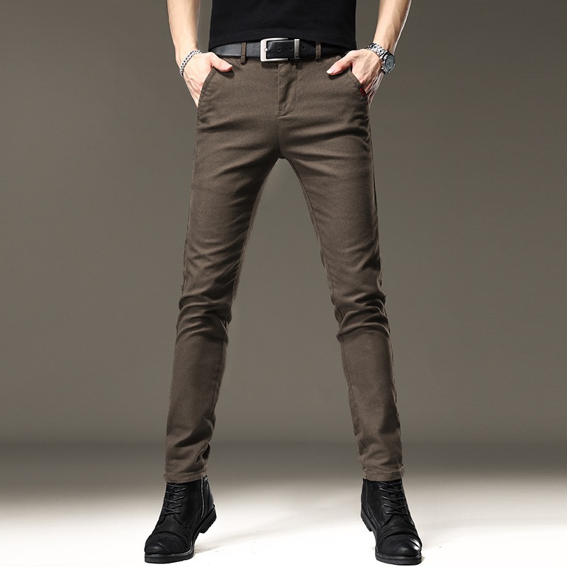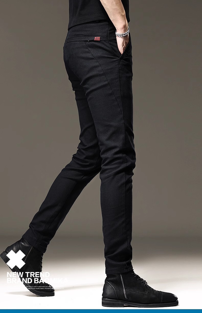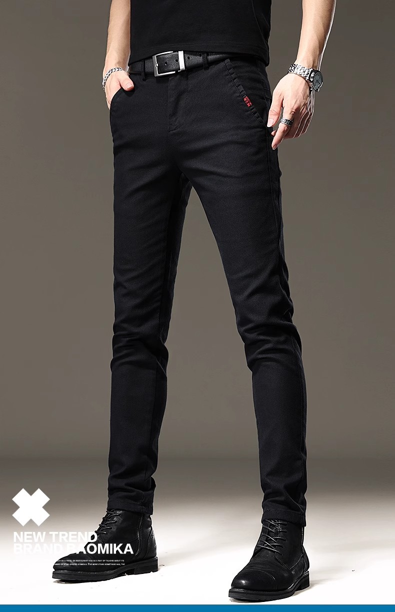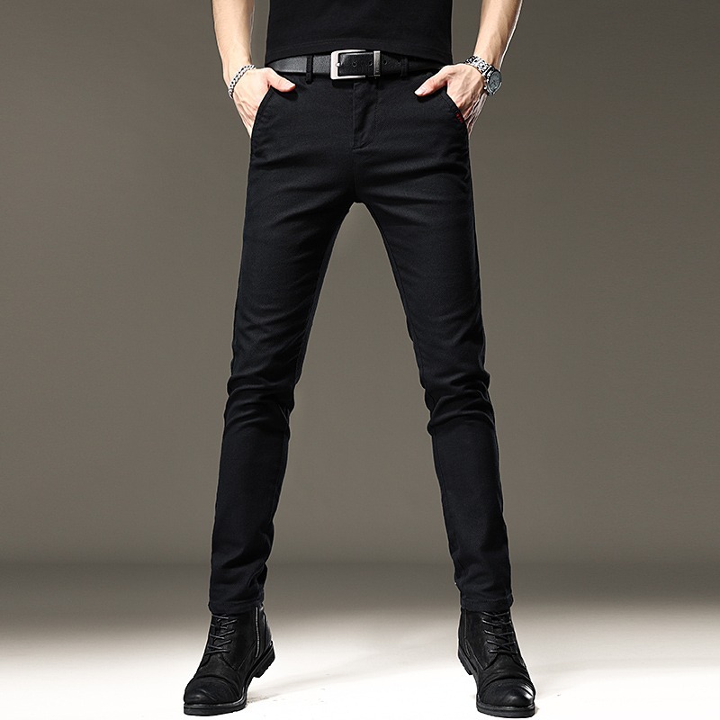 2023 겨울 플러스 벨벳 블랙 청바지 남성용 탄성 하이 엔드 캐주얼 비즈니스 슬림 피트 바지