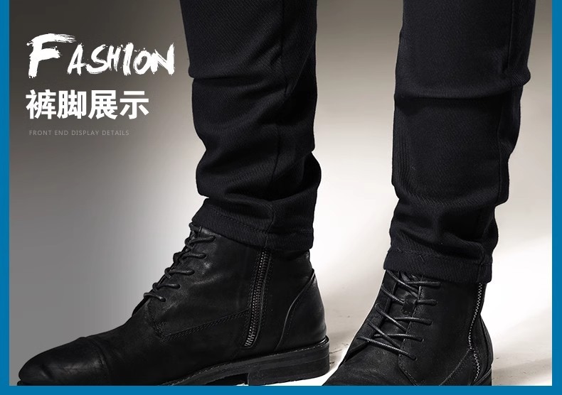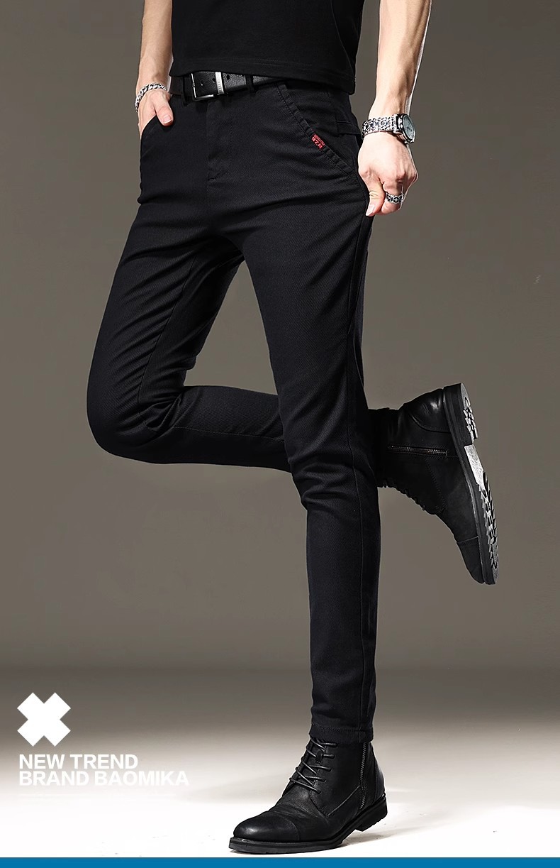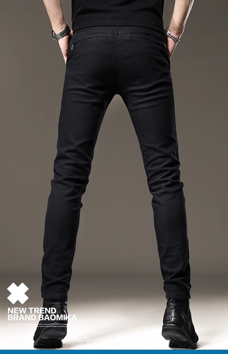 2023 겨울 플러스 벨벳 블랙 청바지 남성용 탄성 하이 엔드 캐주얼 비즈니스 슬림 피트 바지스토어 가기