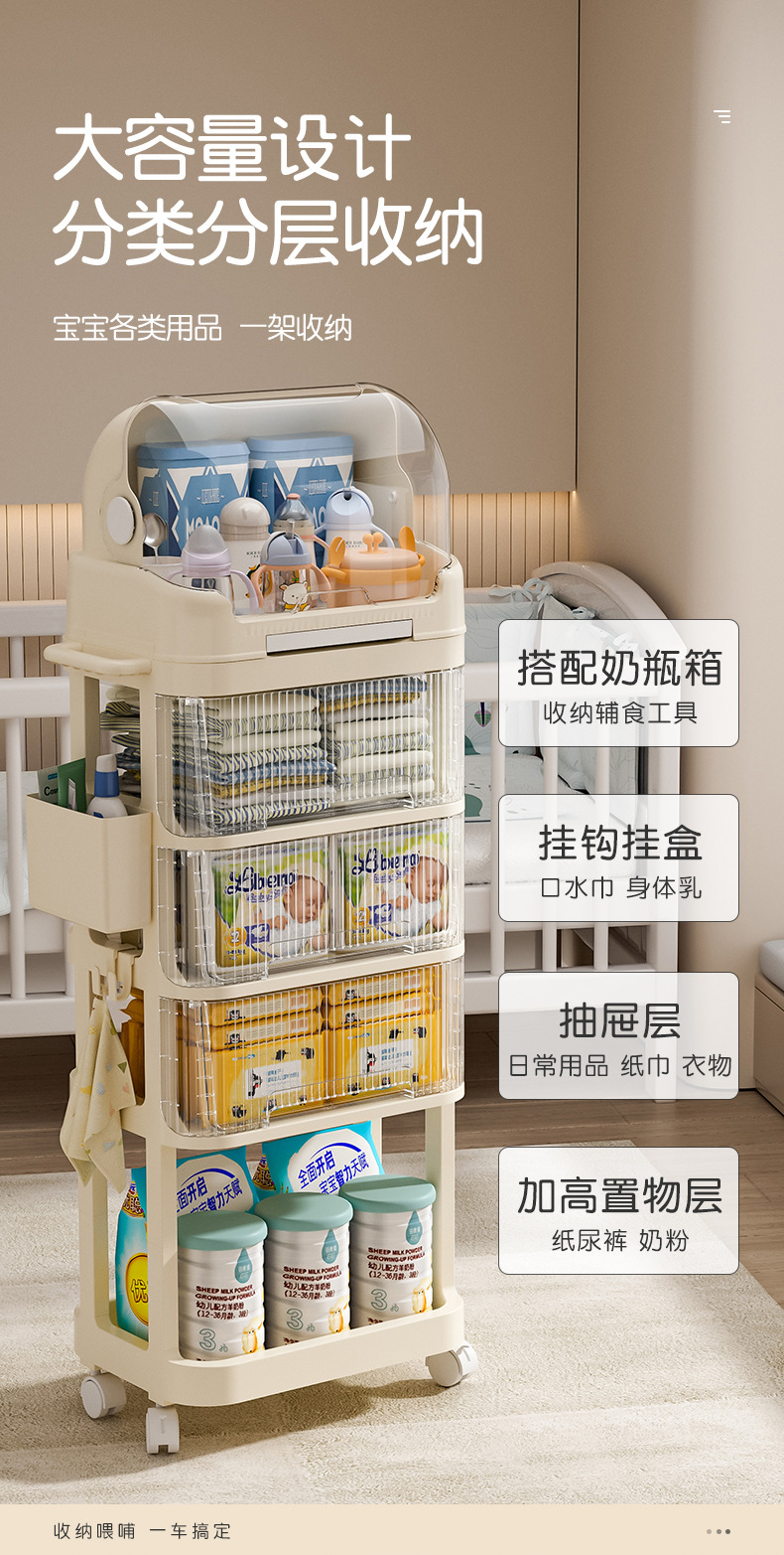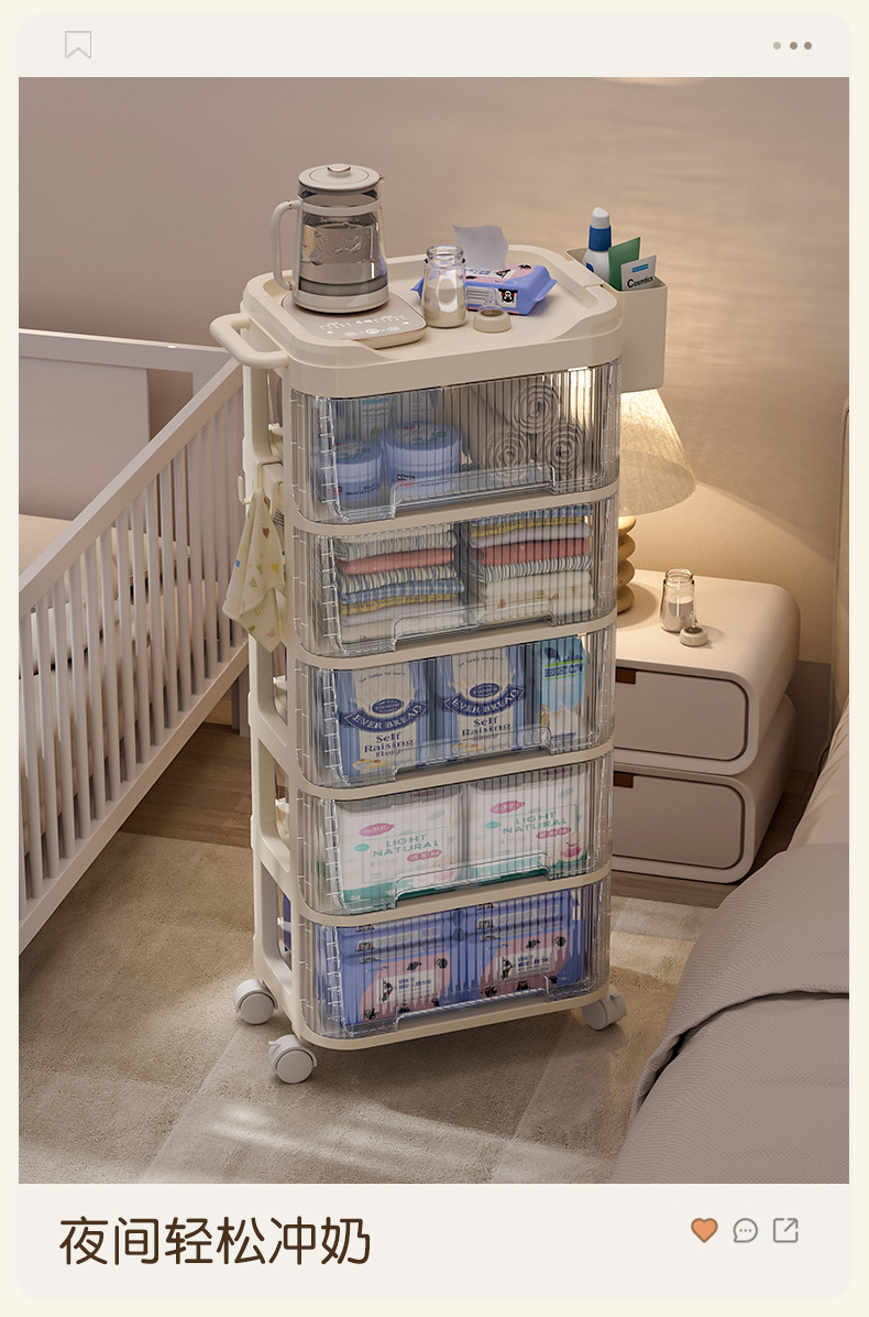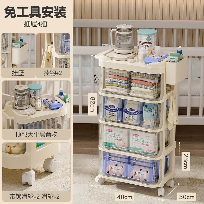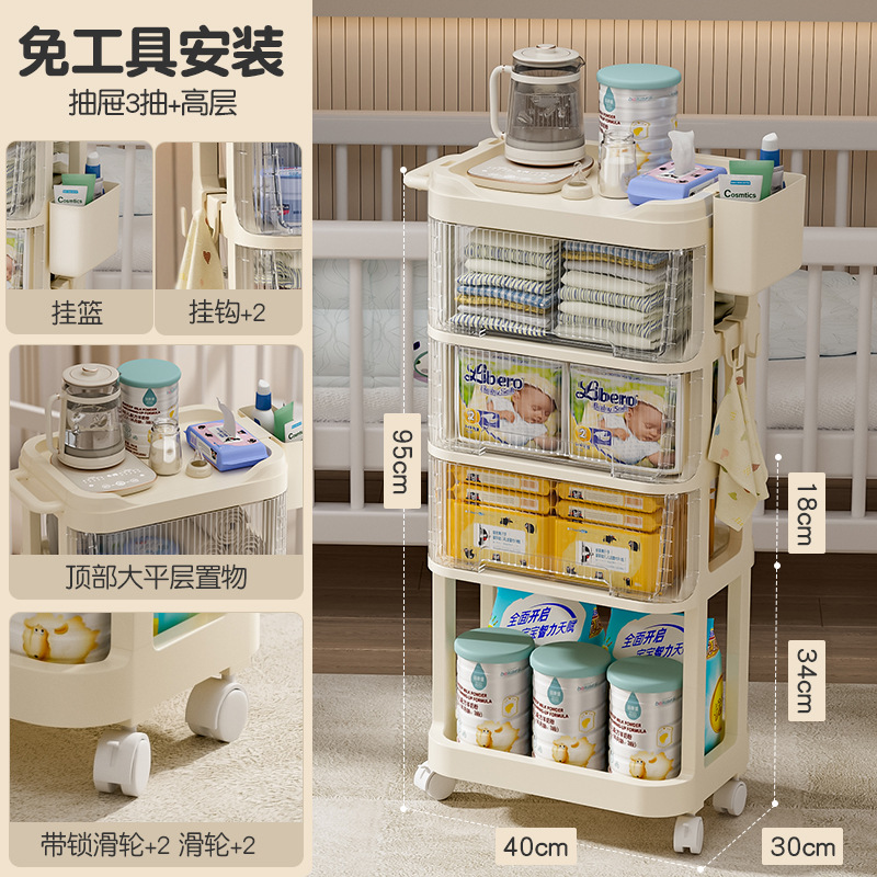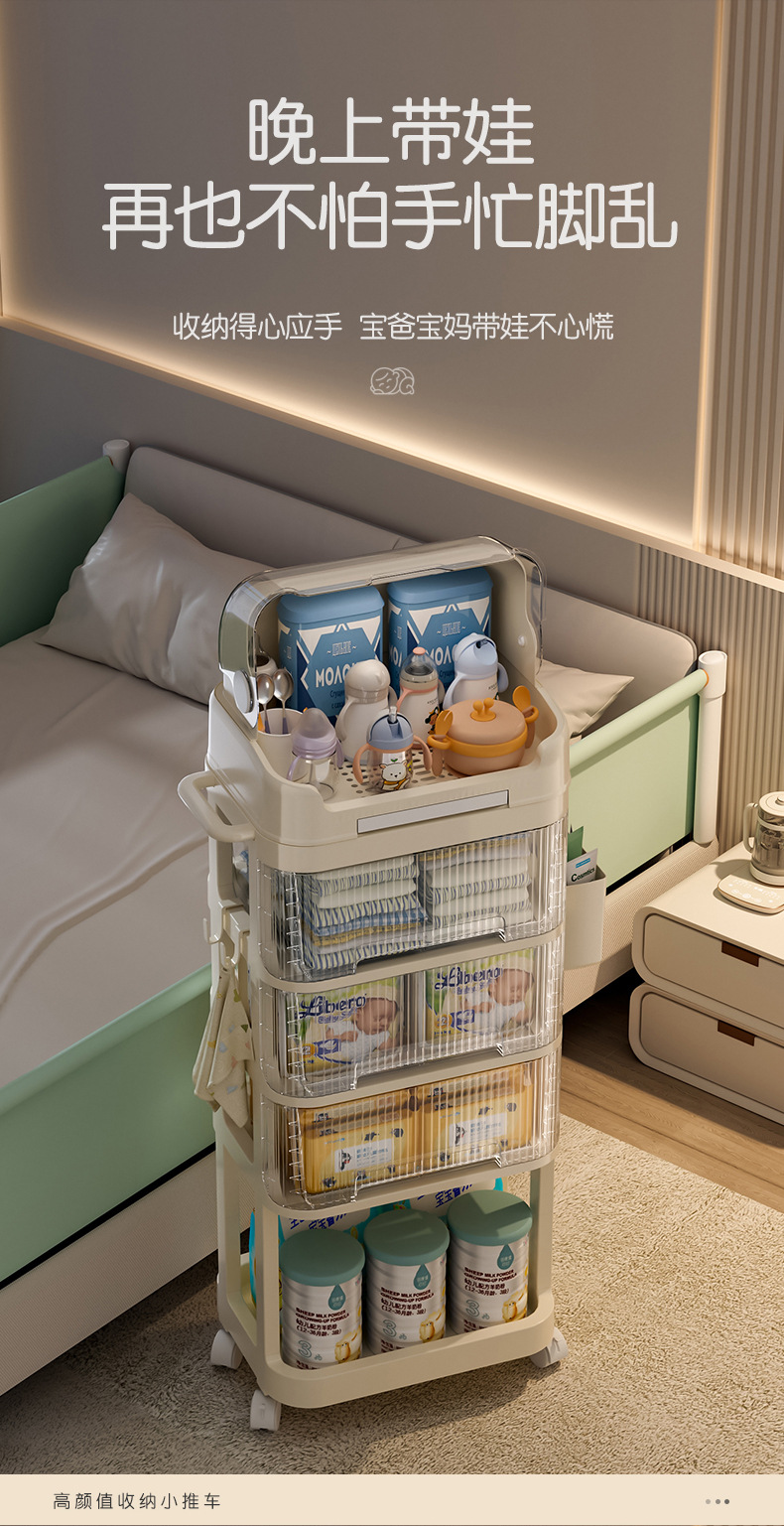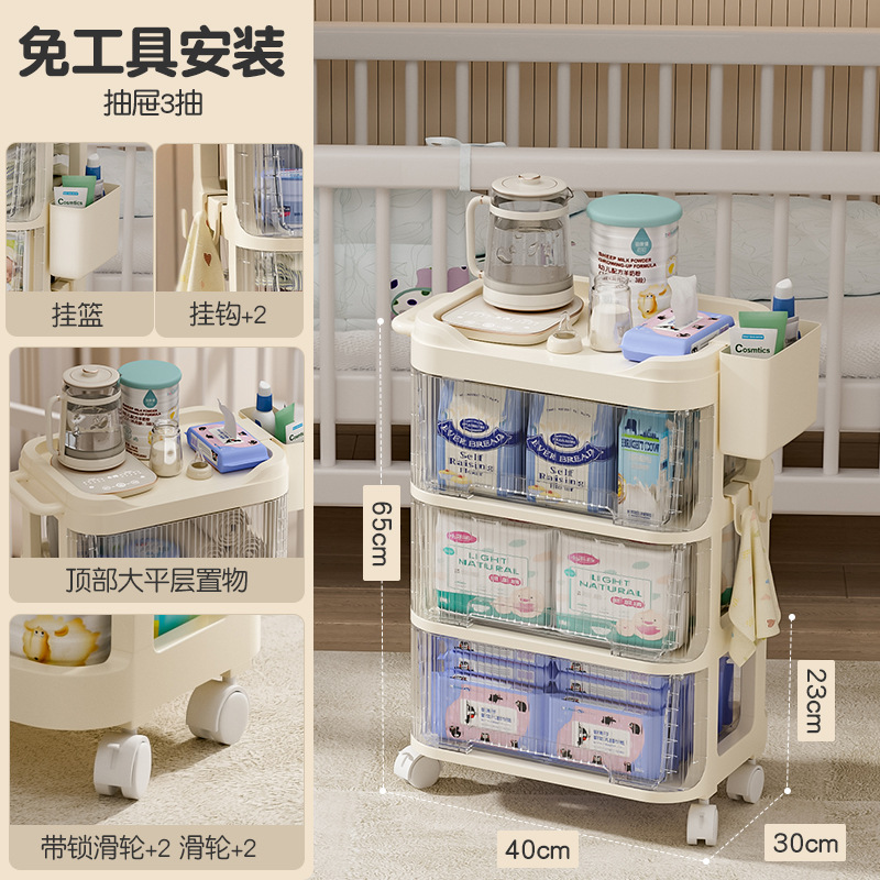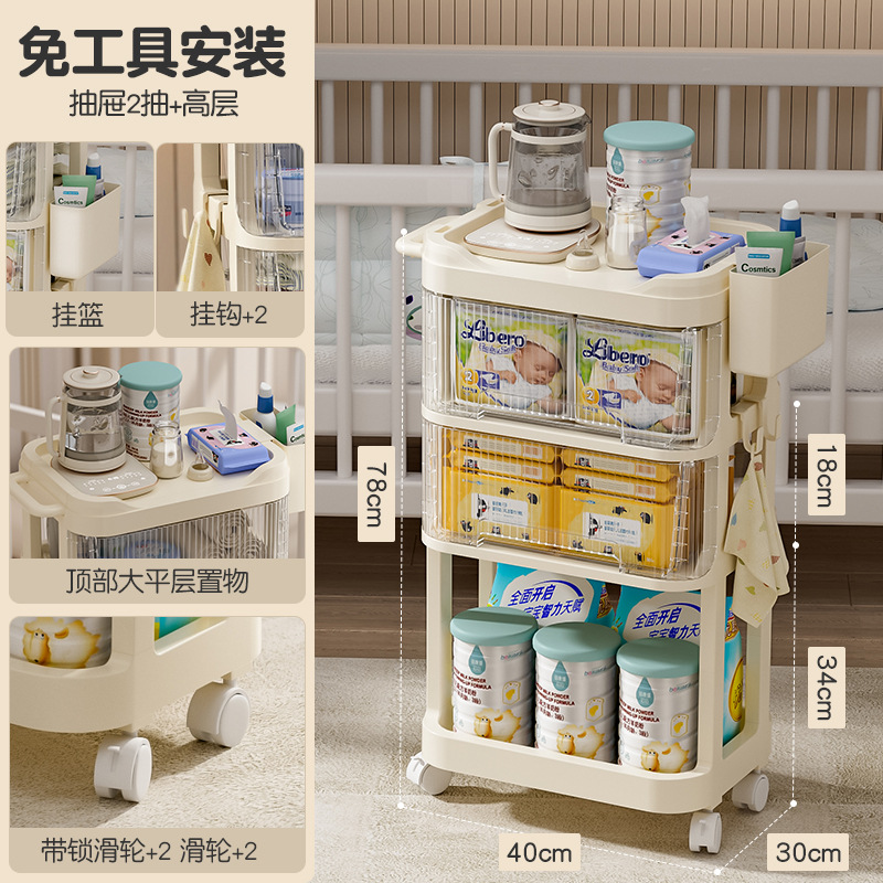 트롤리 스낵 보관 랙 아기 용품 이동식 사물함 침대 옆 먹이 테이블 아기 다층 보관 랙스토어 가기