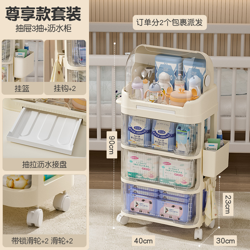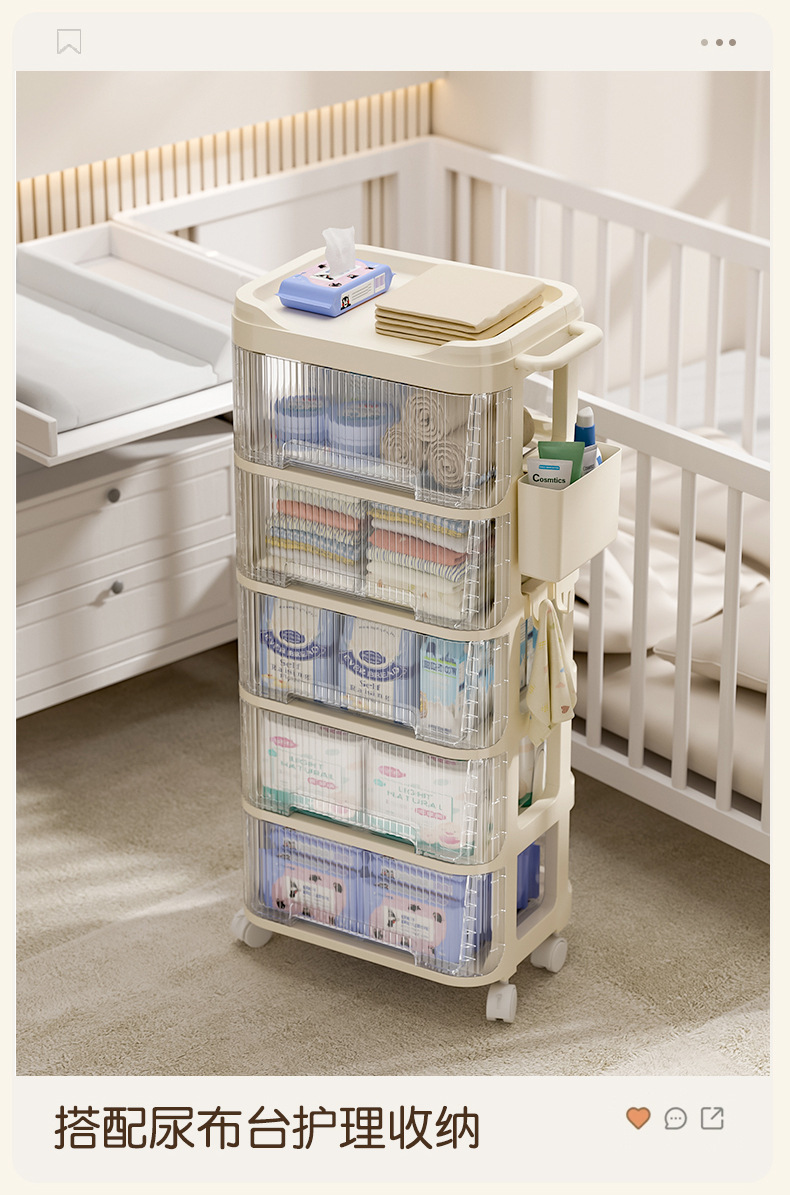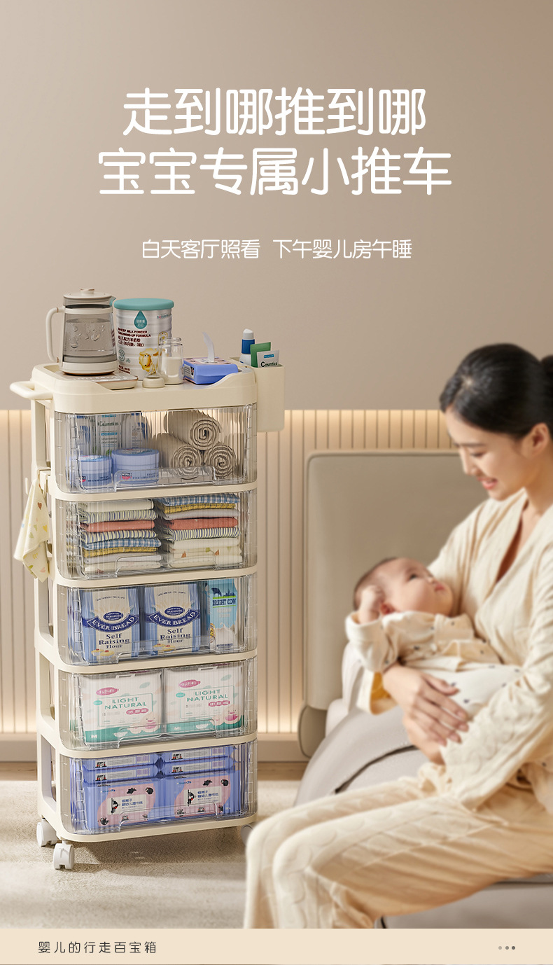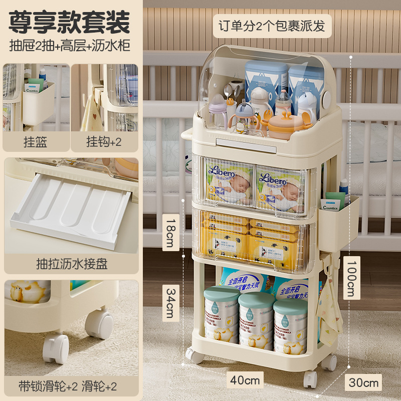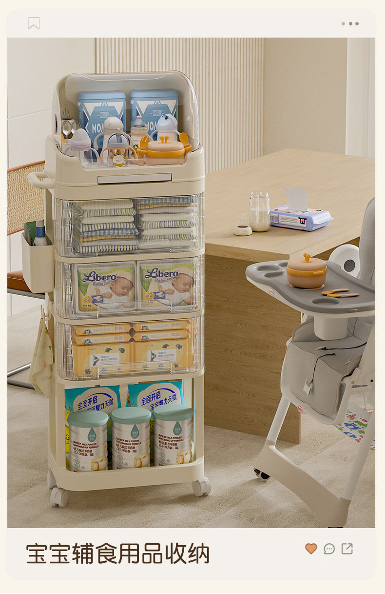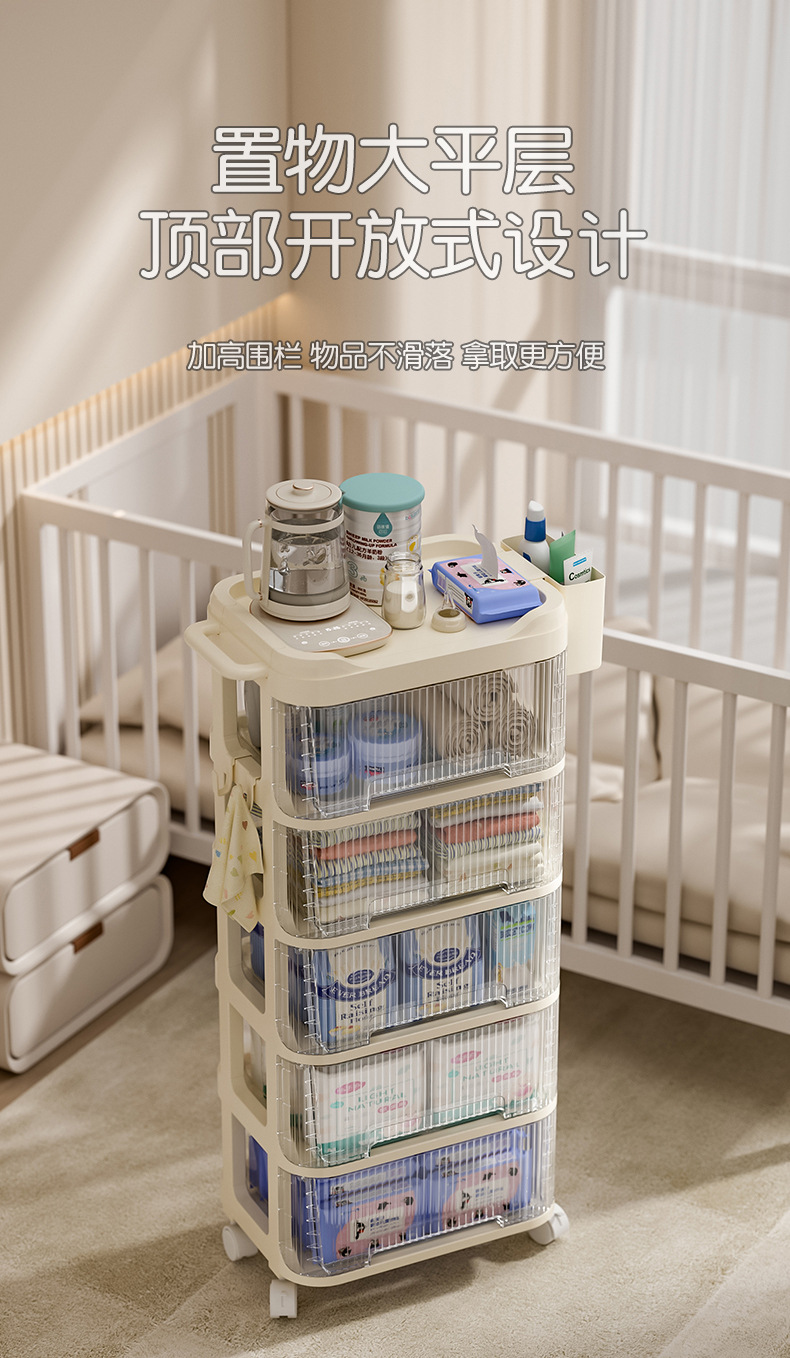 트롤리 스낵 보관 랙 아기 용품 이동식 사물함 침대 옆 먹이 테이블 아기 다층 보관 랙스토어 가기