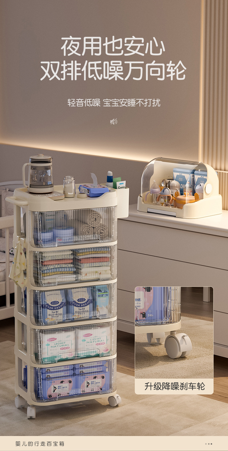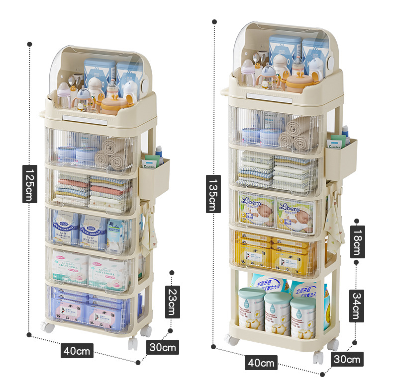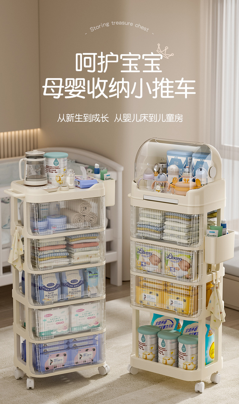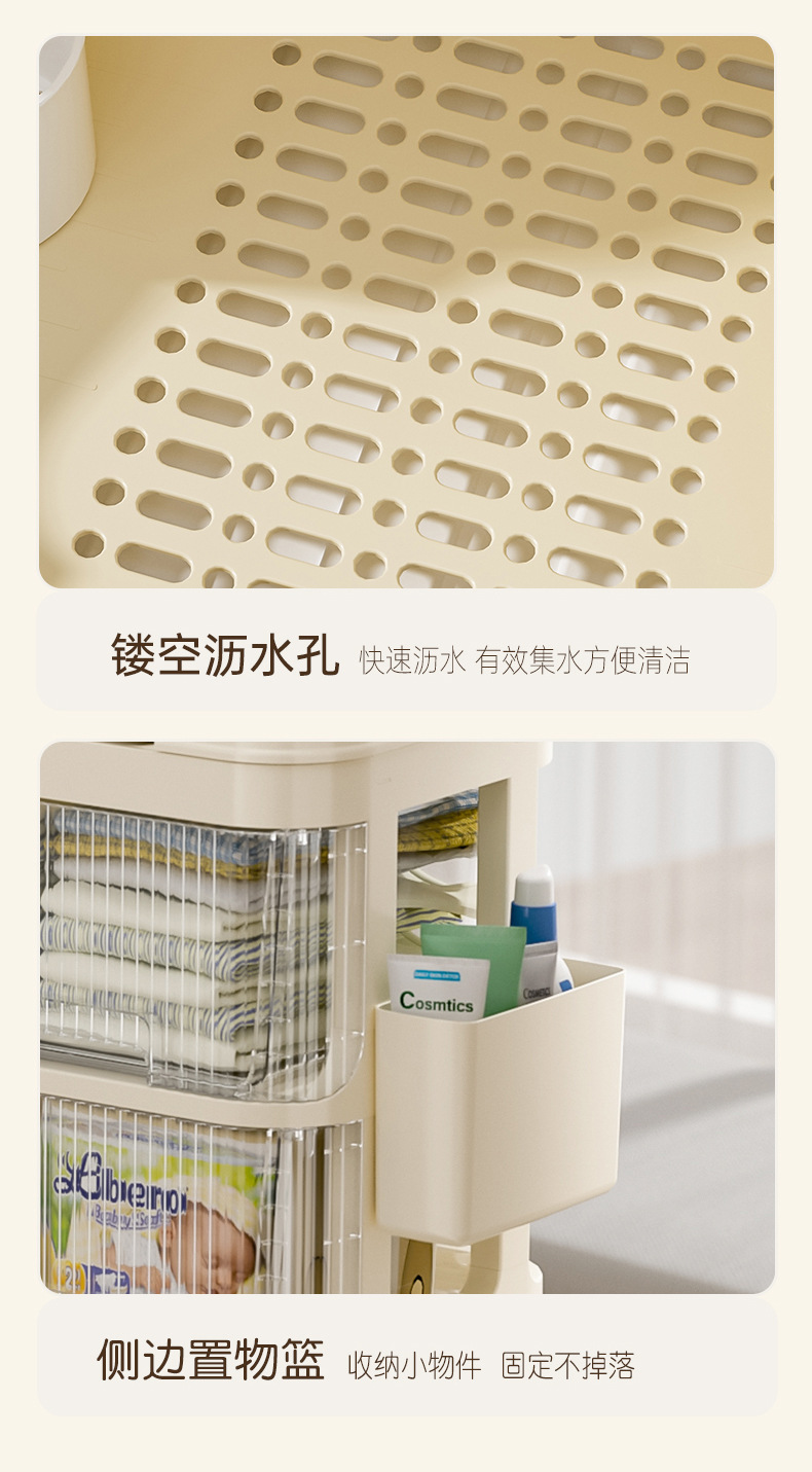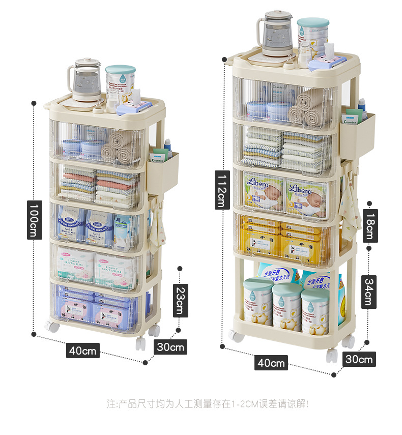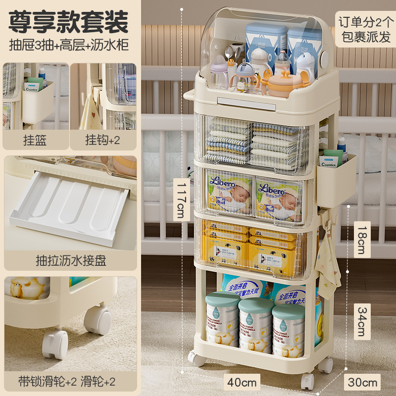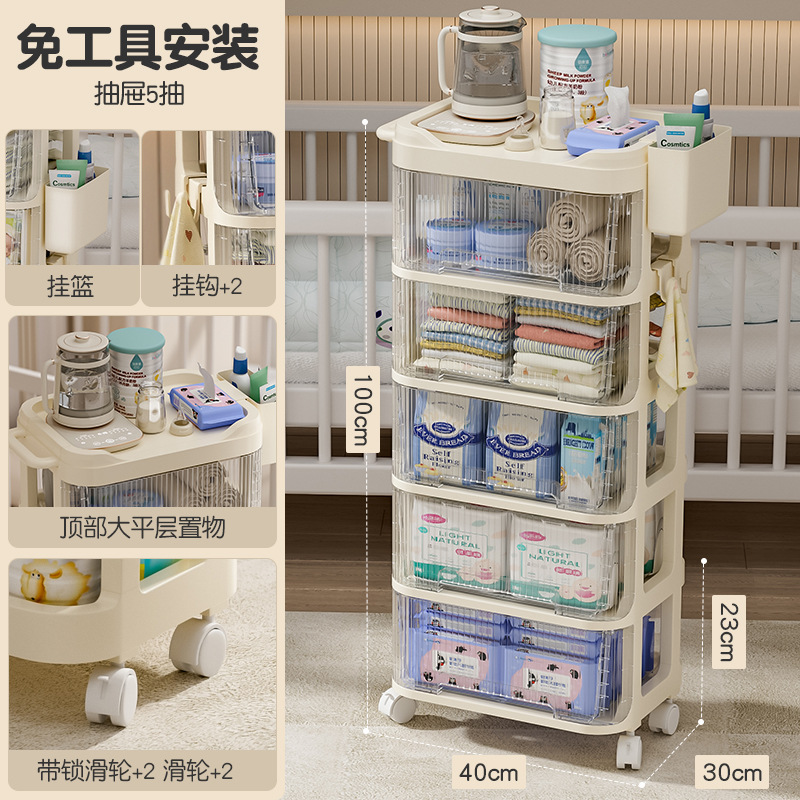 트롤리 스낵 보관 랙 아기 용품 이동식 사물함 침대 옆 먹이 테이블 아기 다층 보관 랙스토어 가기