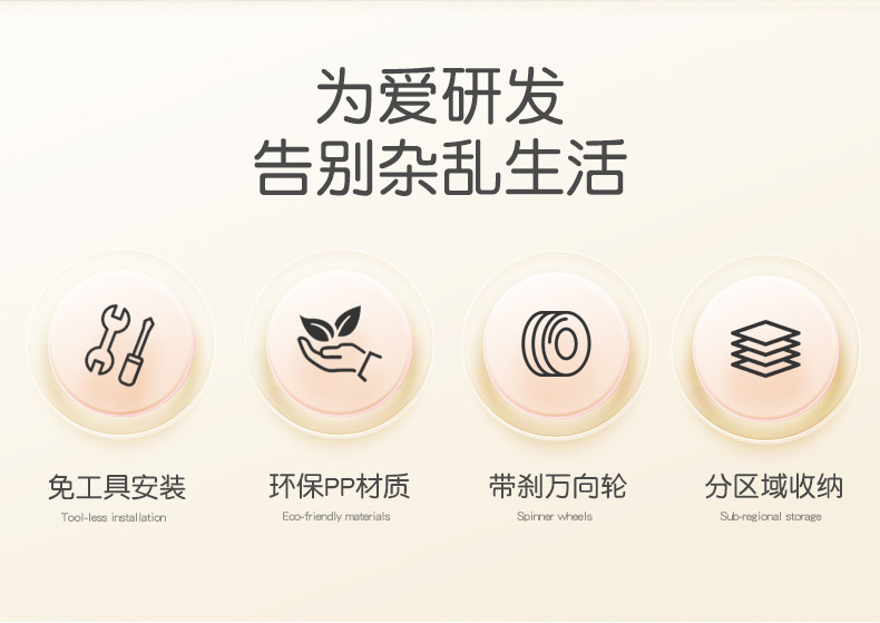 • 4 층 크림 노란색 [3 서랍 + 병 배수 랙] 작은 상자 + 후크