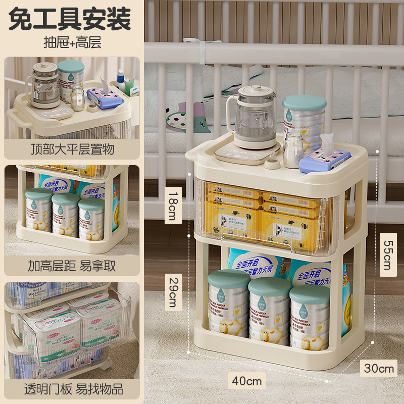 트롤리 스낵 보관 랙 아기 용품 이동식 사물함 침대 옆 먹이 테이블 아기 다층 보관 랙