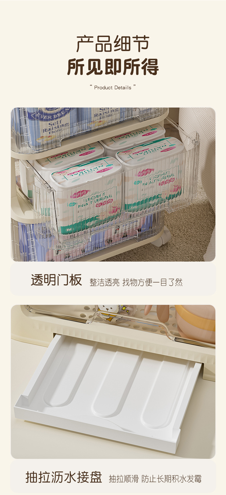 • 5 층 크림 노란색 [4 서랍 + 병 배수 랙] 작은 상자 + 후크