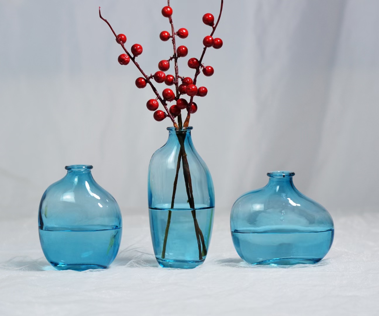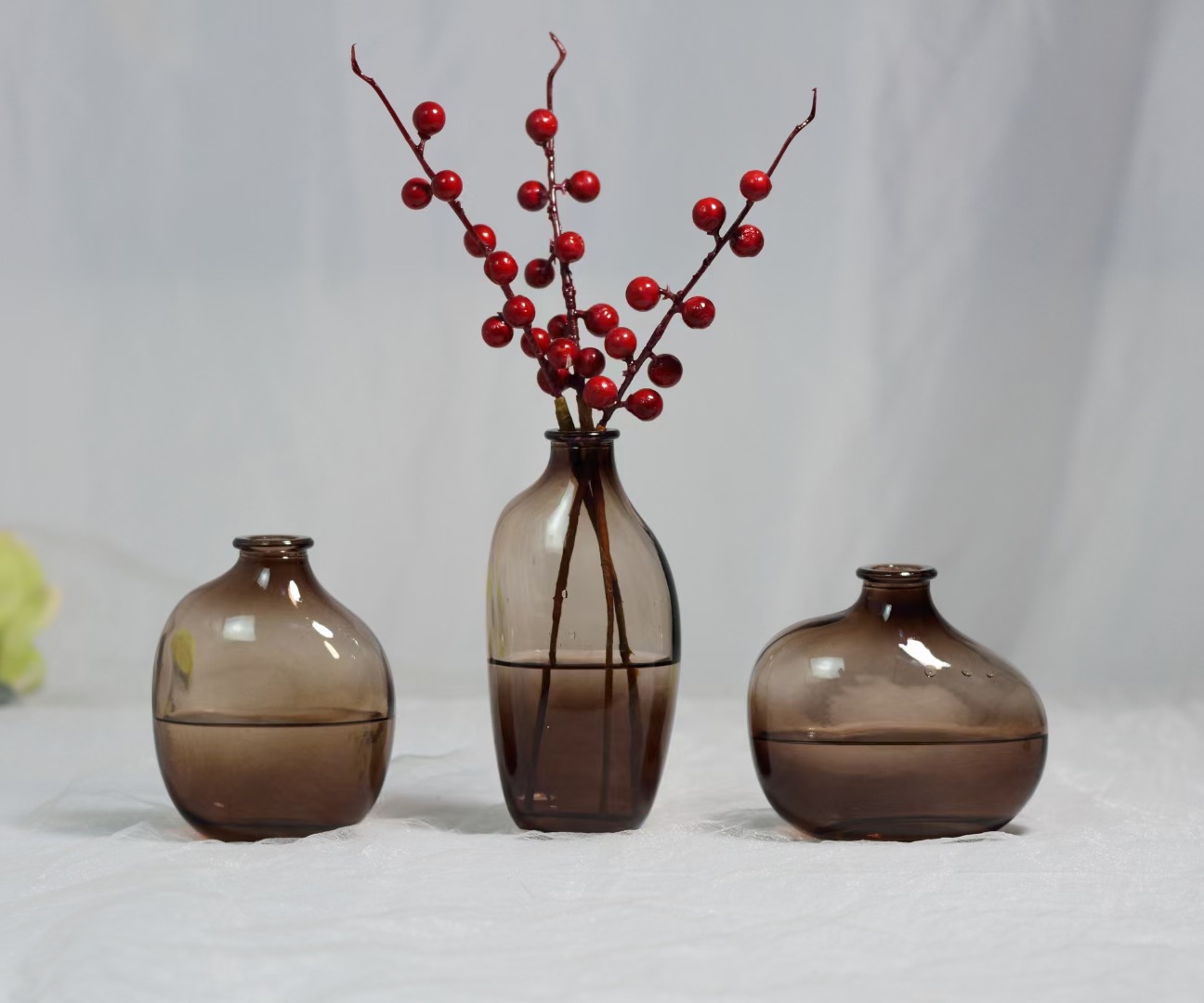 가벼운 고급 미니 3 피스 작은 꽃병 세트 고급 복고풍 데스크탑 유리 장식 프랑스 가정 장식 장식품