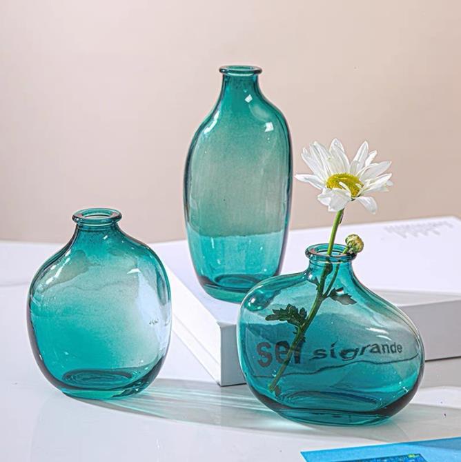 가벼운 고급 미니 3 피스 작은 꽃병 세트 고급 복고풍 데스크탑 유리 장식 프랑스 가정 장식 장식품스토어 가기