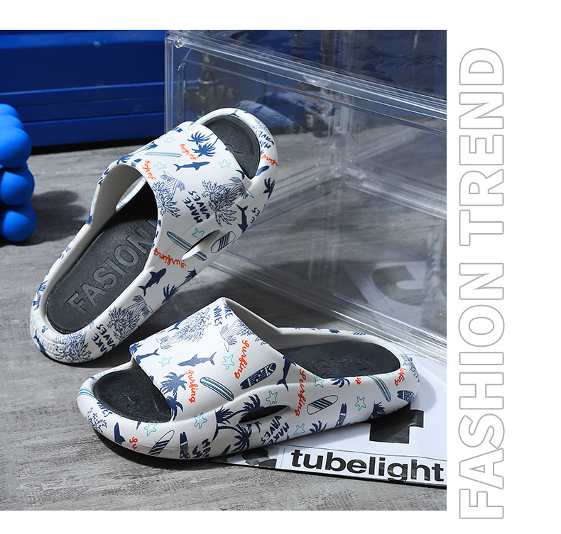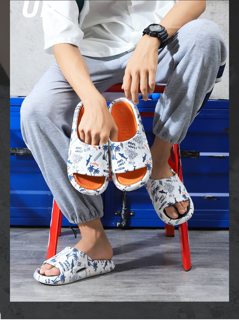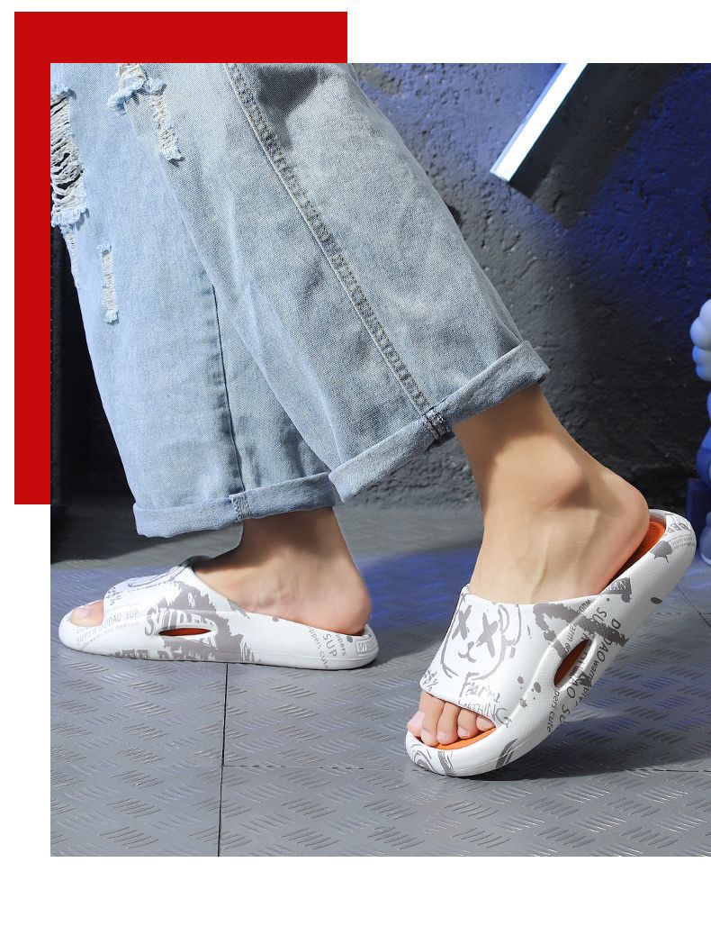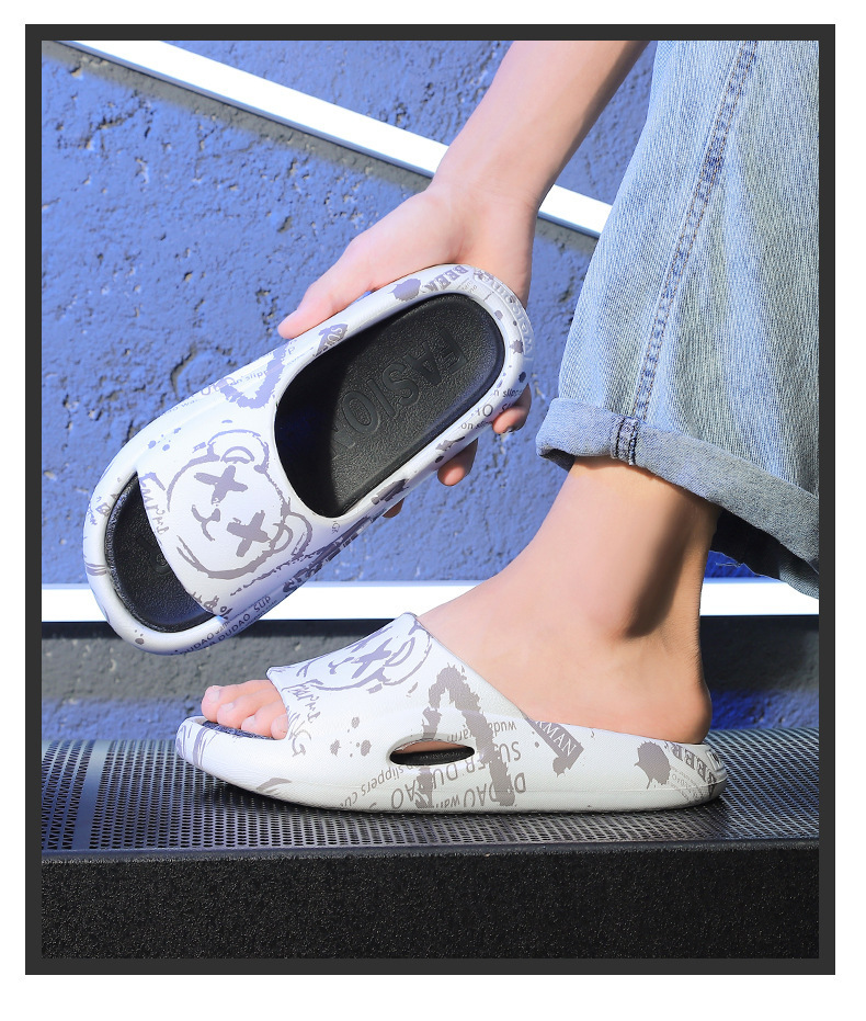 2024 새로운 남성 슬리퍼 여름 슬립 온 느낌의 외장 착용 스포츠 욕실 외부 홈 커플 인터넷 인기있는 조수 샌들스토어 가기