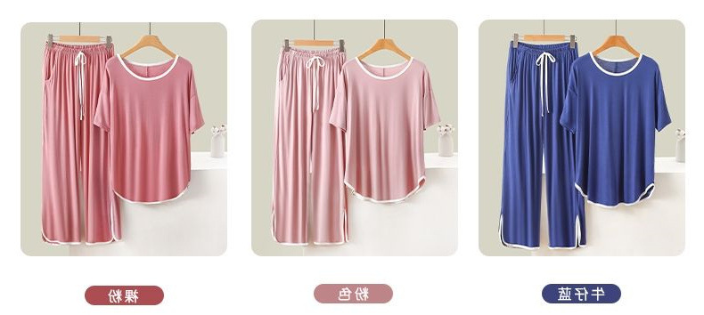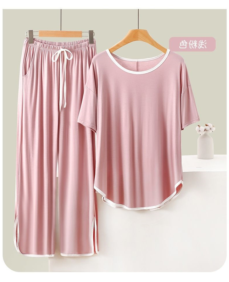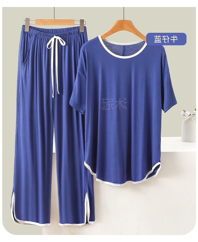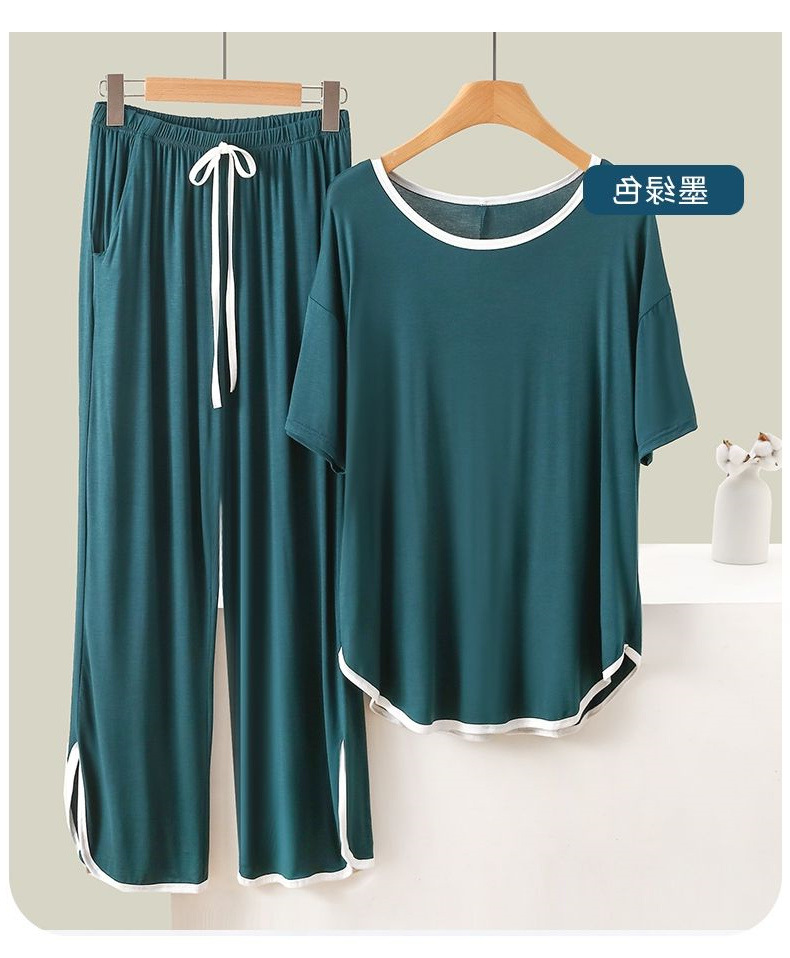 뚱뚱한 MM300 진 초대형 대형 느슨한 캐주얼 단색 얇은 짧은 소매 바지 홈 옷 잠옷 투피스 여성