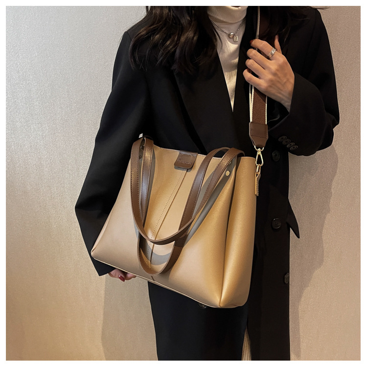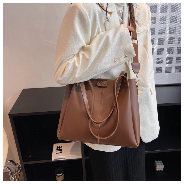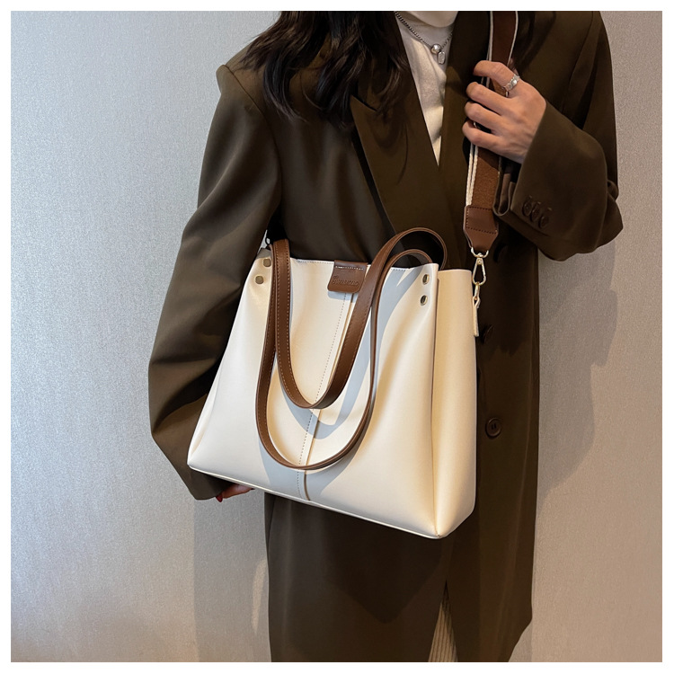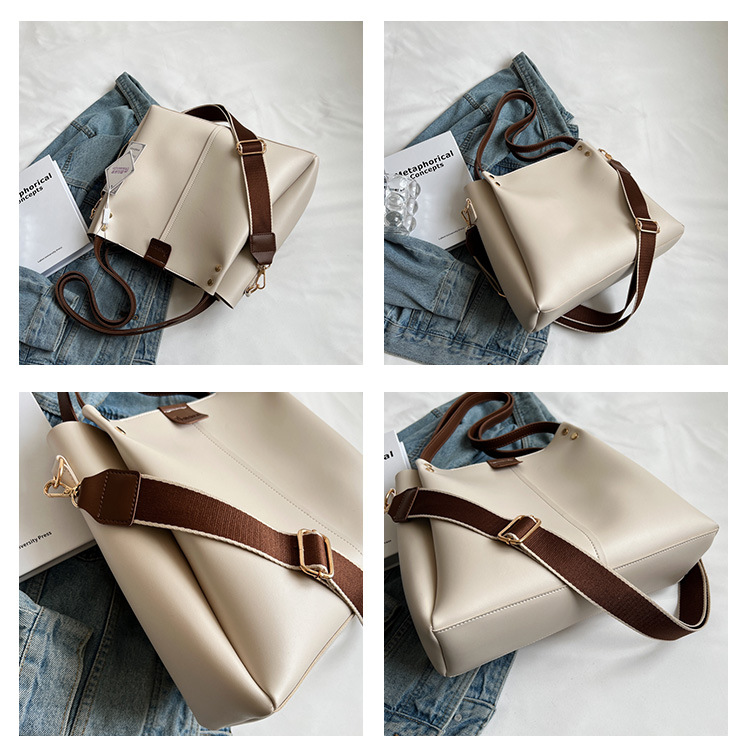 대용량 가방 여성 가방 2023 새로운 유행 가을 및 겨울 와이드 밴드 크로스 바디 백 폭발성 어깨 핸드 토트 백