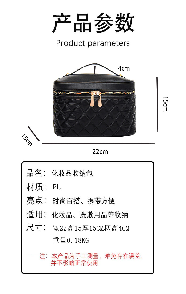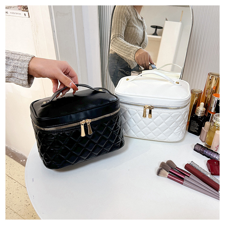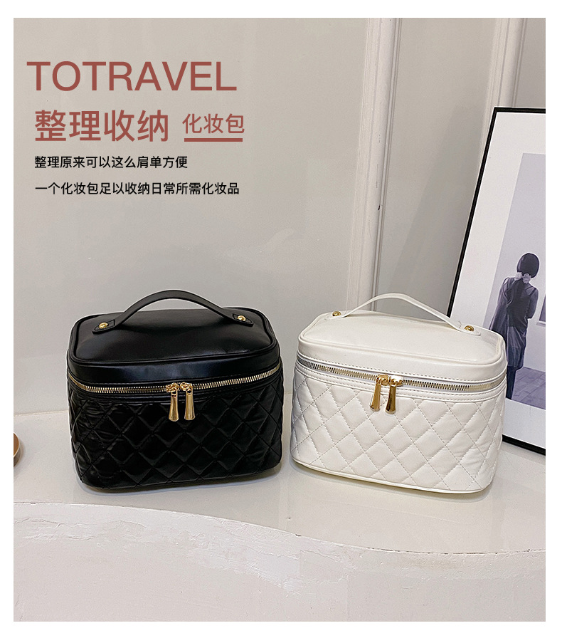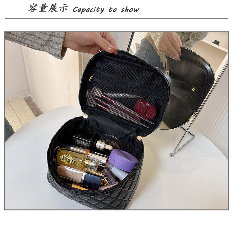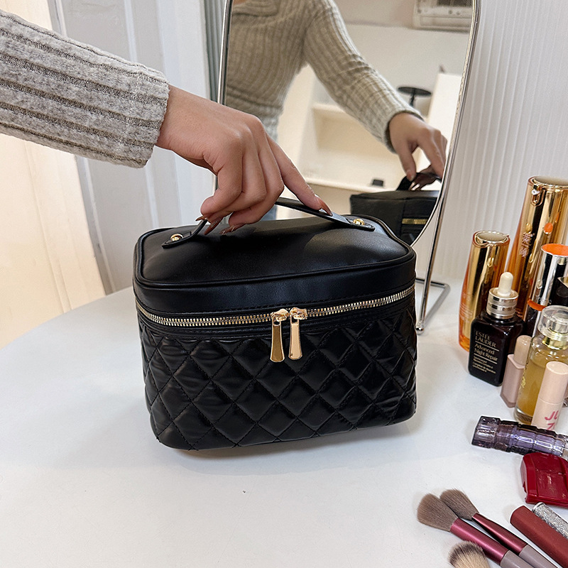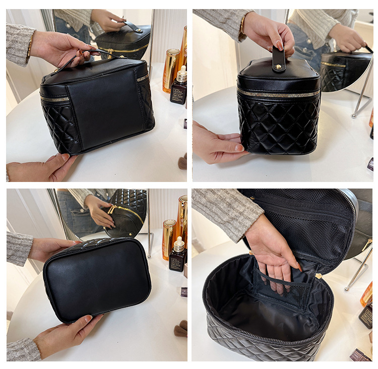 2026년 신형 자수 라인 블랙 PU 화장품 가방 대용량 화장품 수납 가방 고급스러운 휴대용 세면 가방