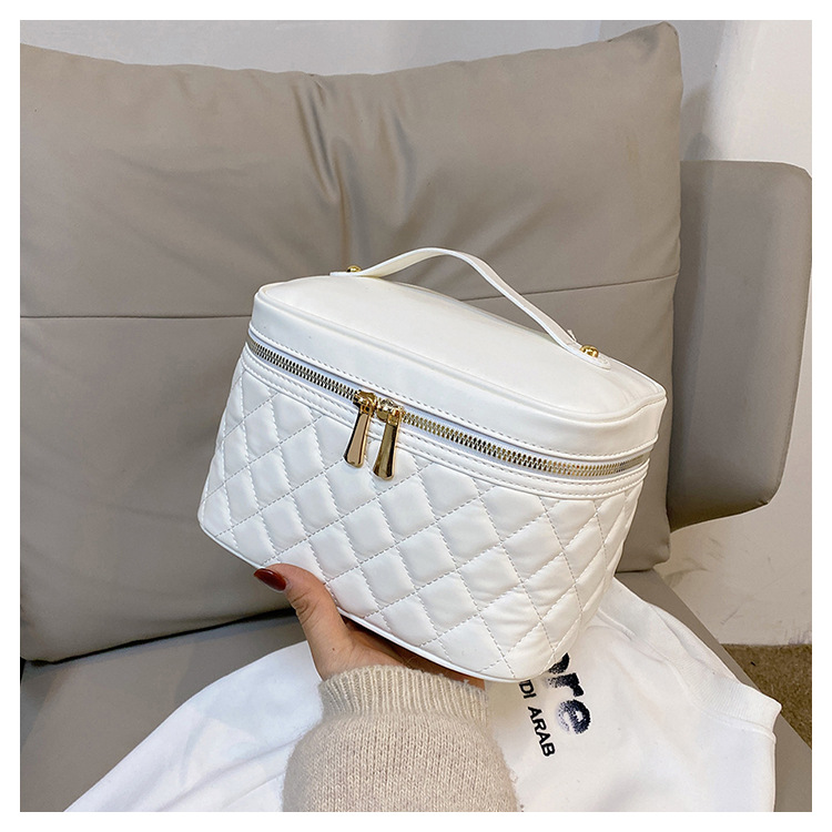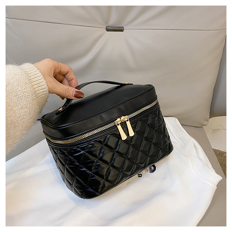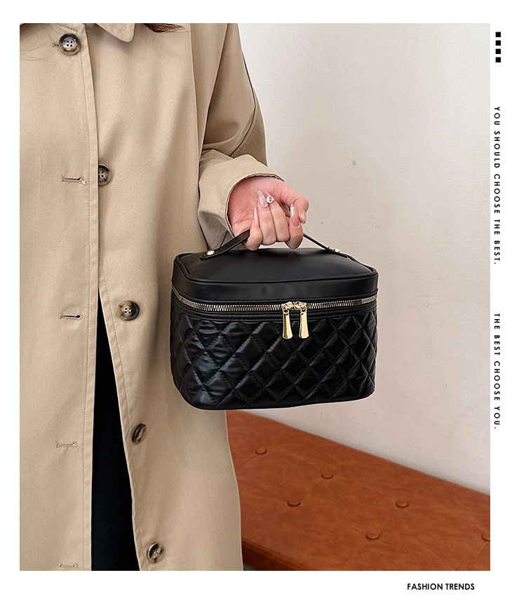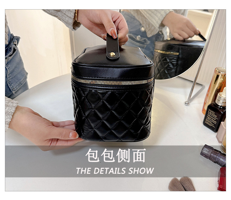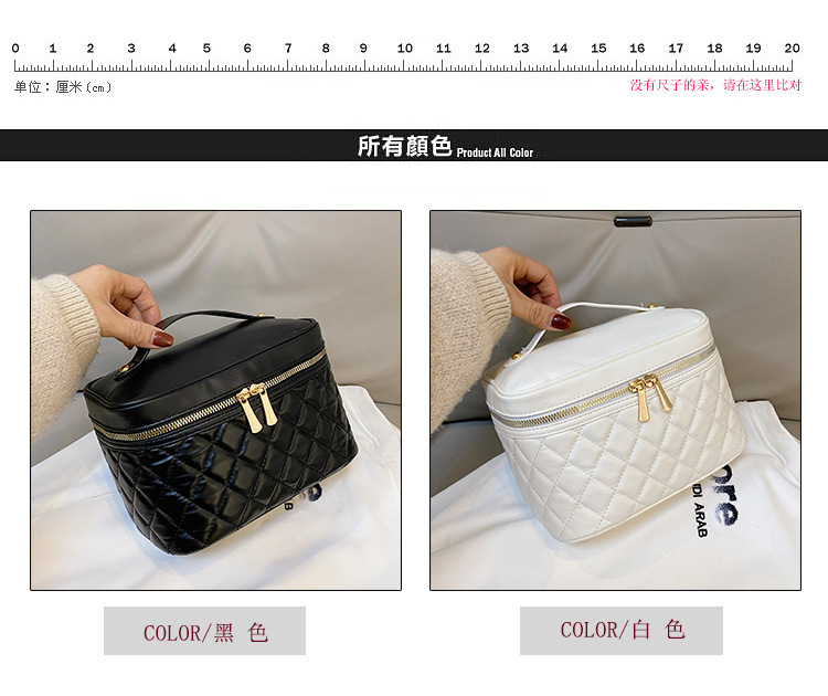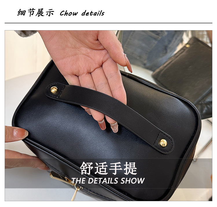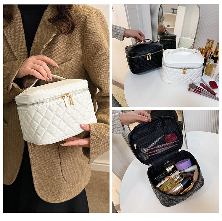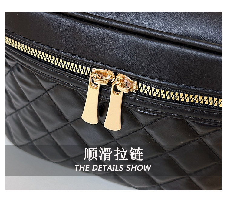 2026년 신형 자수 라인 블랙 PU 화장품 가방 대용량 화장품 수납 가방 고급스러운 휴대용 세면 가방
