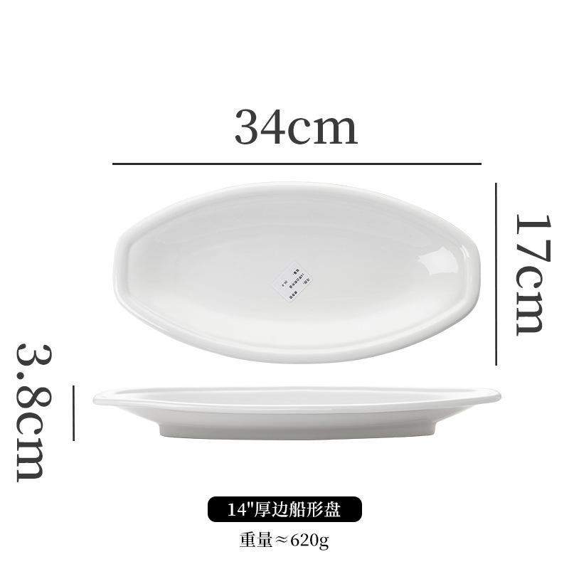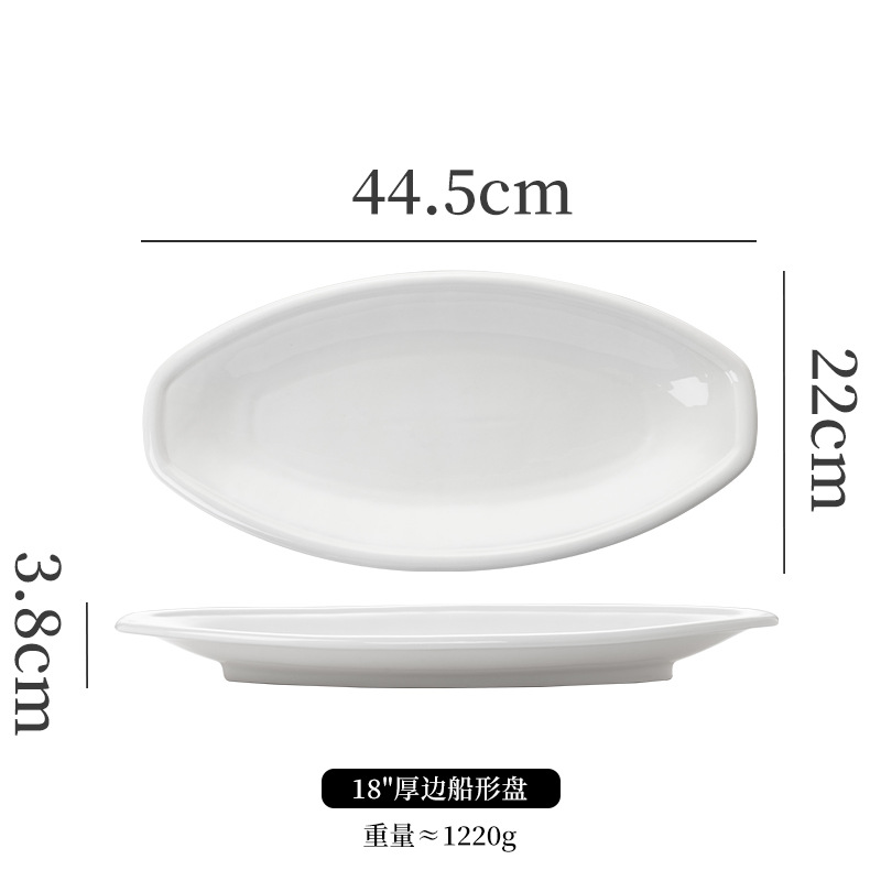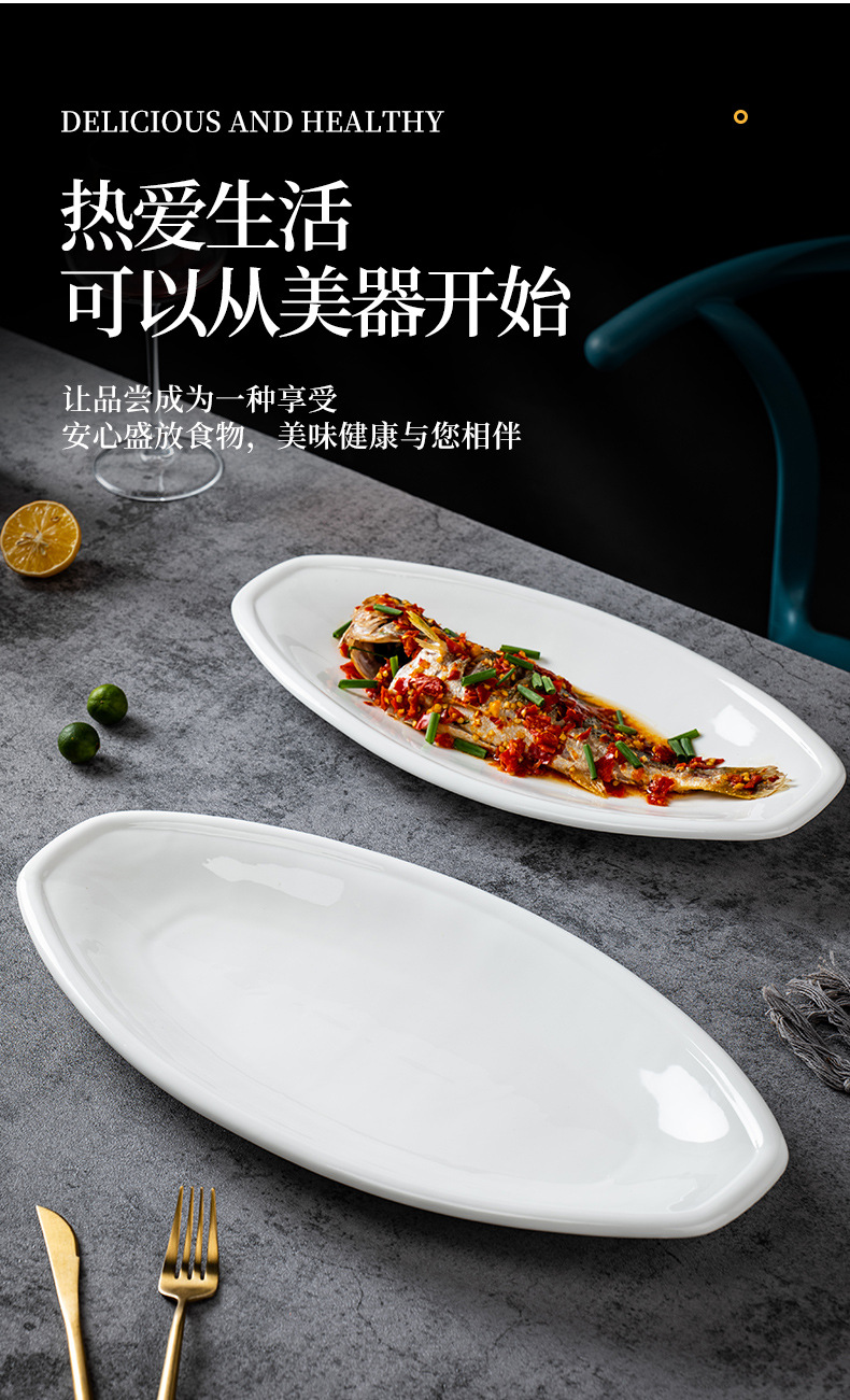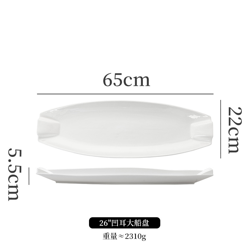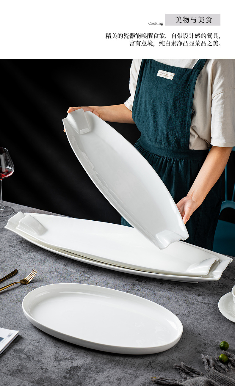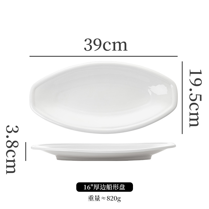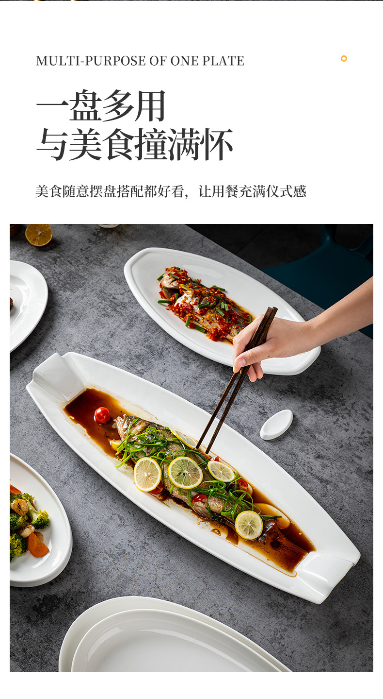 순수한 흰색 세라믹 생선 접시 호텔 큰 긴 접시 레스토랑 클럽 큰 물고기 접시 보트 모양의 접시 태국 레몬 생선 접시
