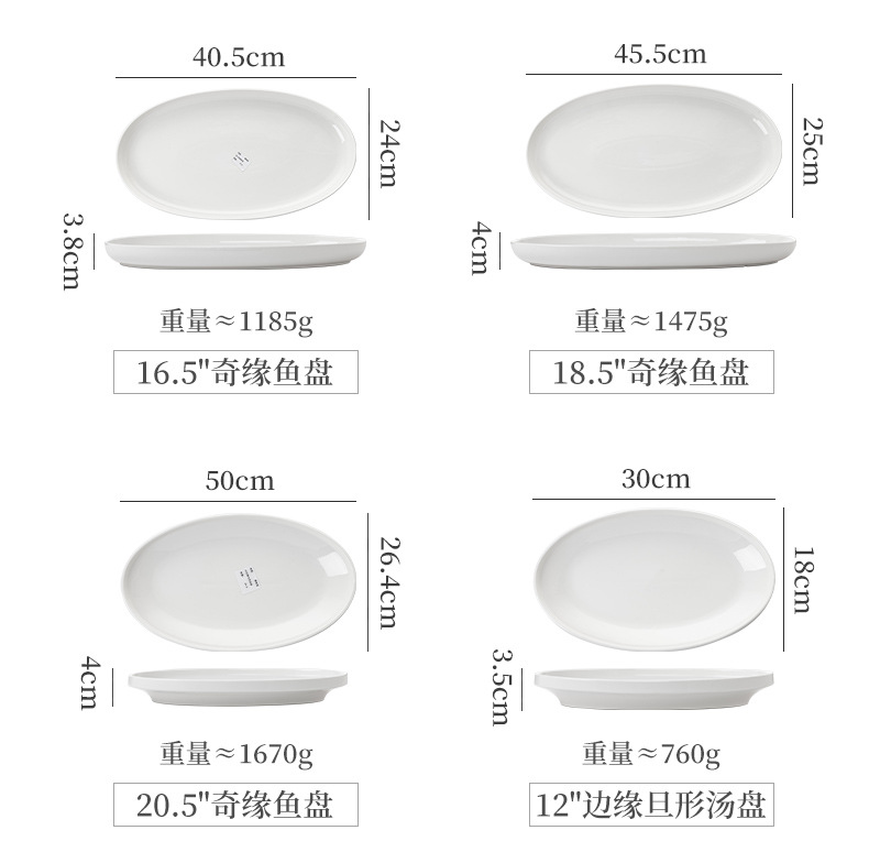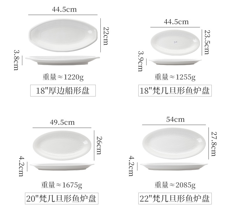 • 흰색 16.5 인치 Qiyuan 생선 접시