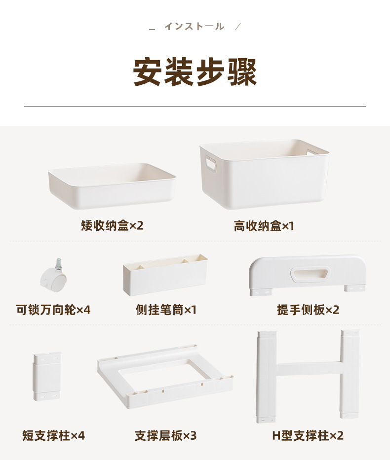 도르래가 달린 책가방 수납선반, 탈부착 가능한 책가방 유물, 책 수납선반, 책상 밑 워크스테이션, 가방 카트