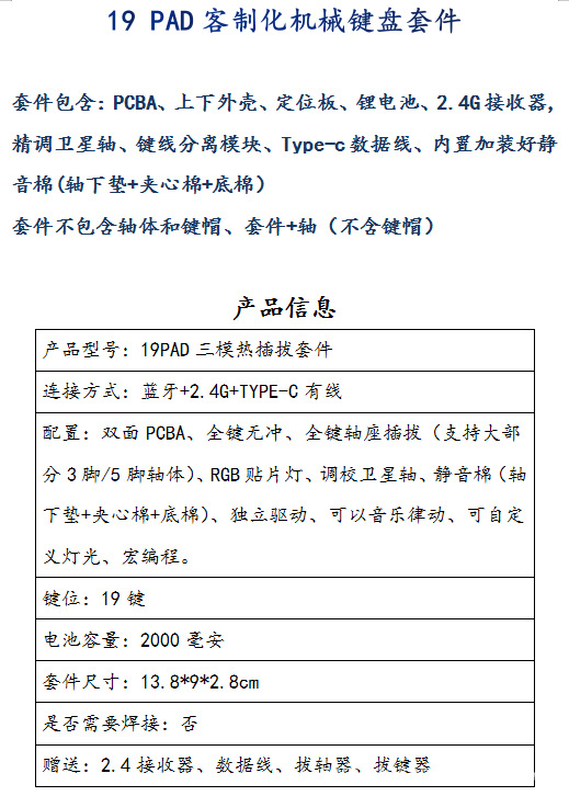 • 19키 3모드 키트 + 사일런트 피치 v3 샤프트(키캡/비고 색상 없음)