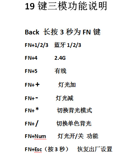 • 19 키 흰색 3 모드 키트 (샤프트/키 캡 제외)
