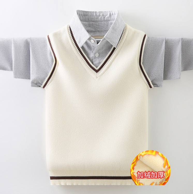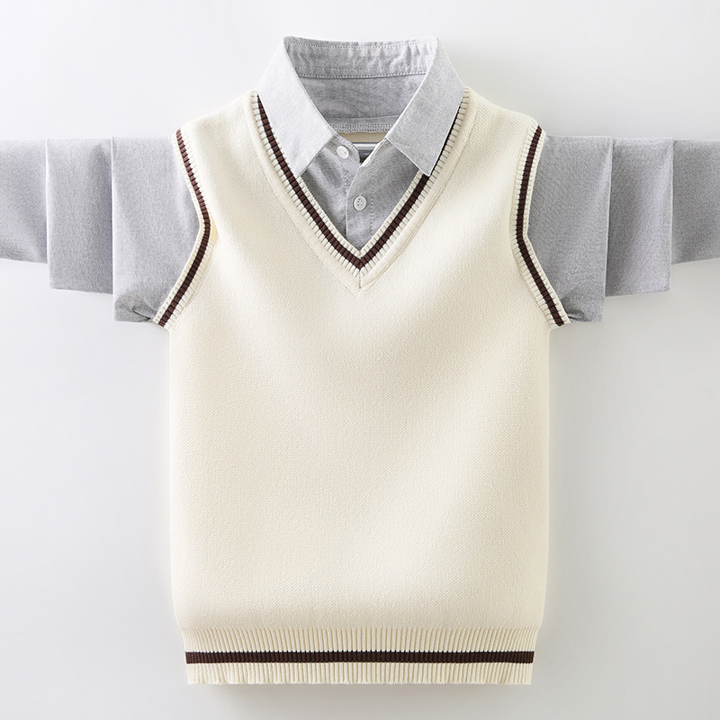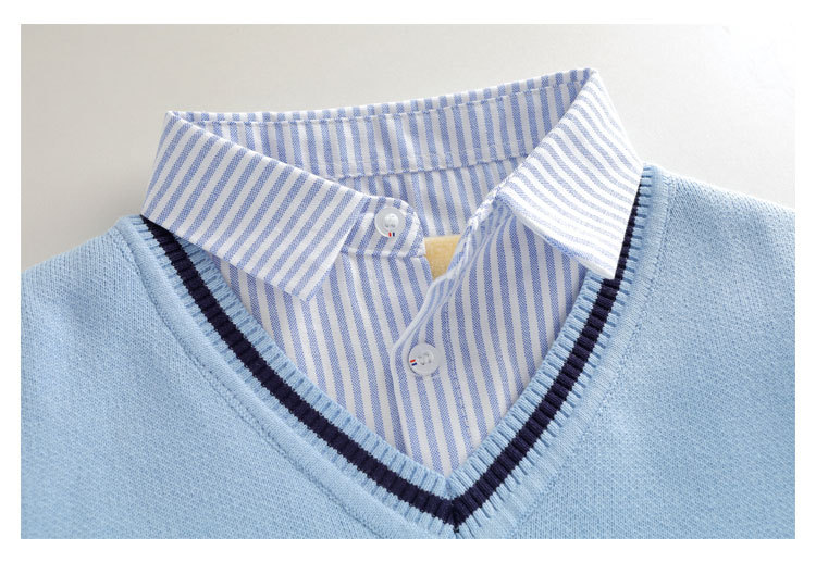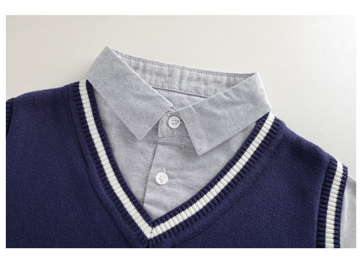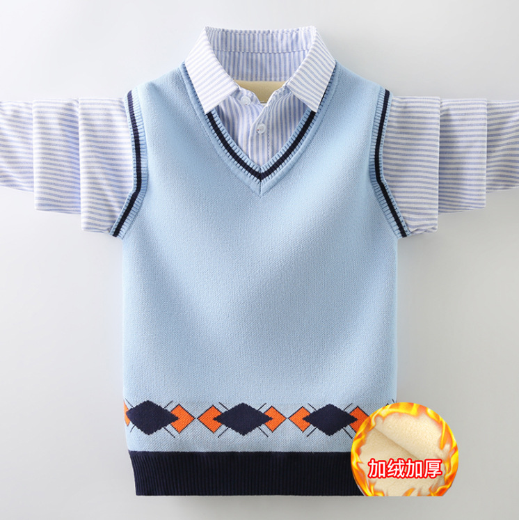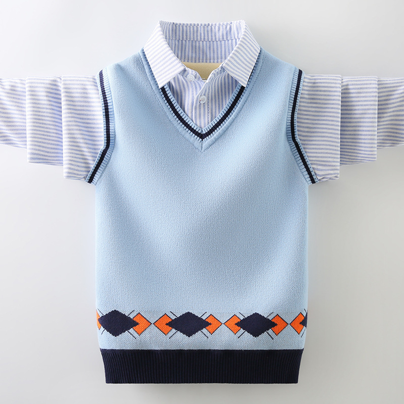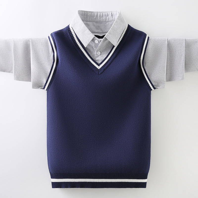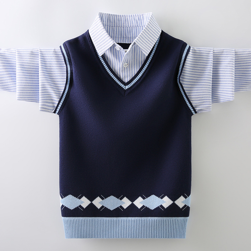 소년 스웨터 순면 2023 새로운 봄, 가을, 겨울 어린이 소년 스웨터 중대형 어린이 셔츠 칼라 가짜 투피스 T스토어 가기