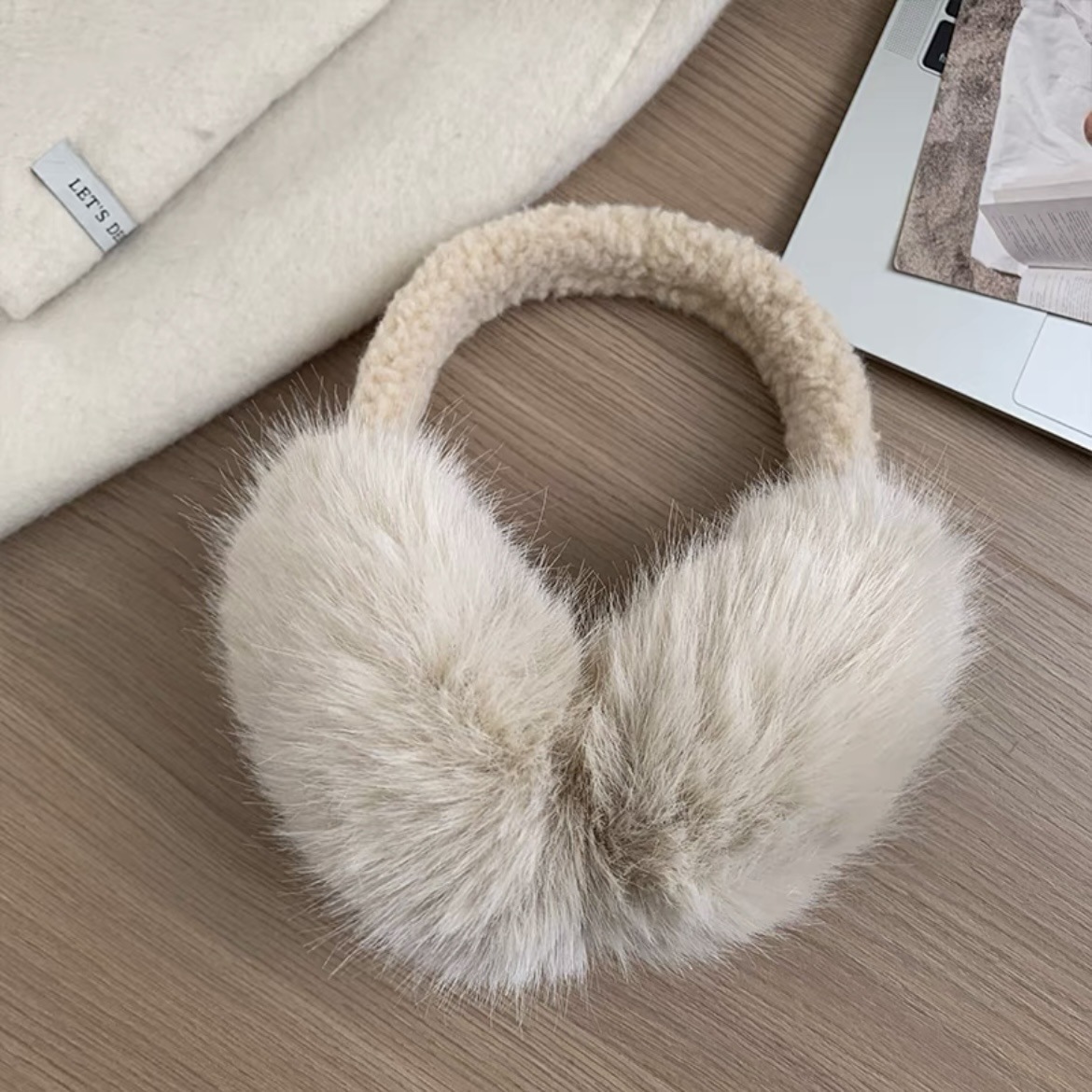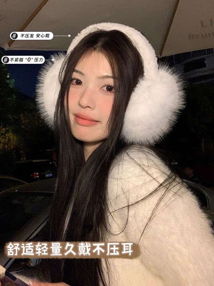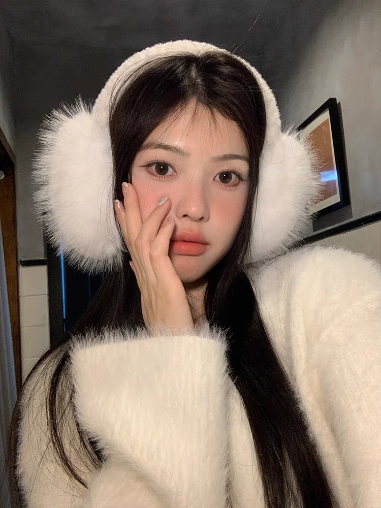 흰색 푹신한 부드러운 귀여운 플러시 귀마개 사이클링 냉동 방지 귀마개 접이식 겨울 귀마개 여성 방풍 귀마개스토어 가기
