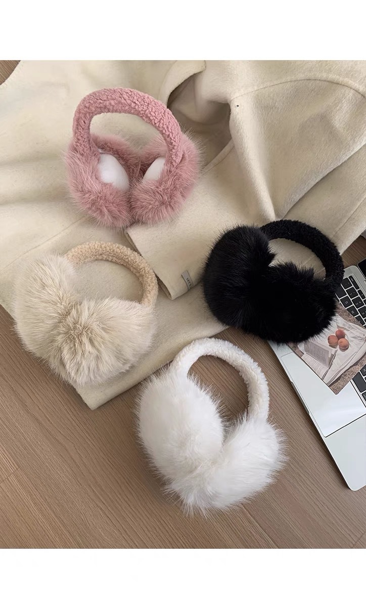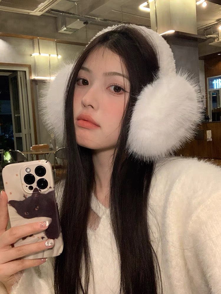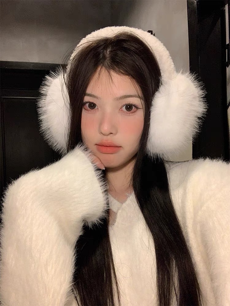 흰색 푹신한 부드러운 귀여운 플러시 귀마개 사이클링 냉동 방지 귀마개 접이식 겨울 귀마개 여성 방풍 귀마개