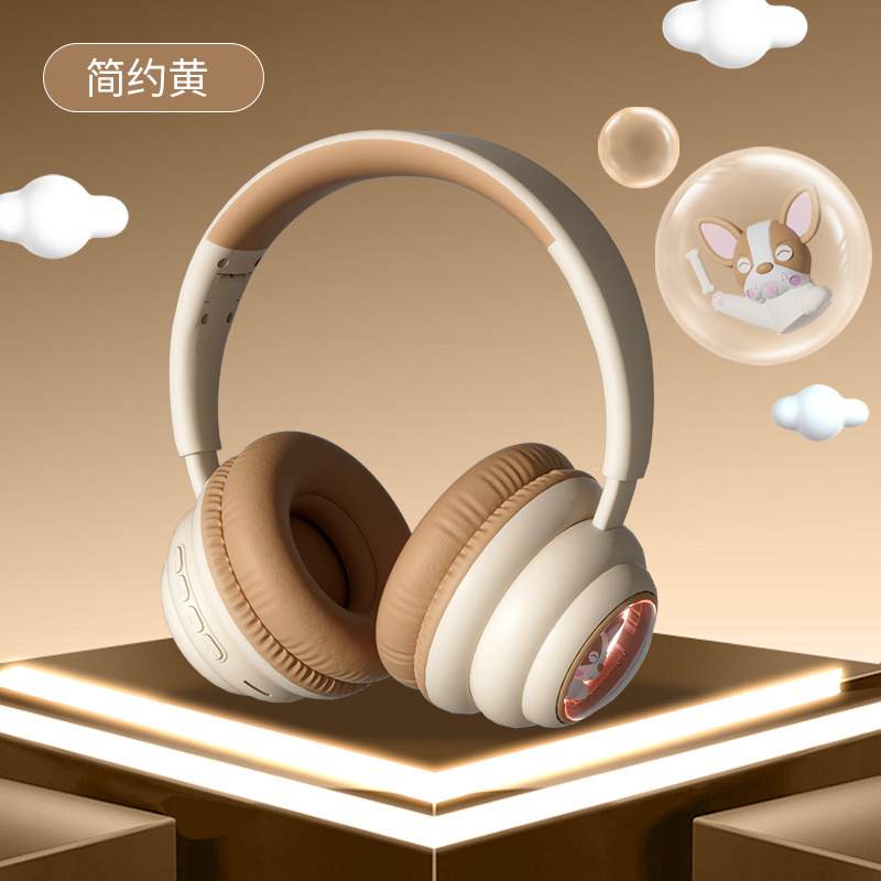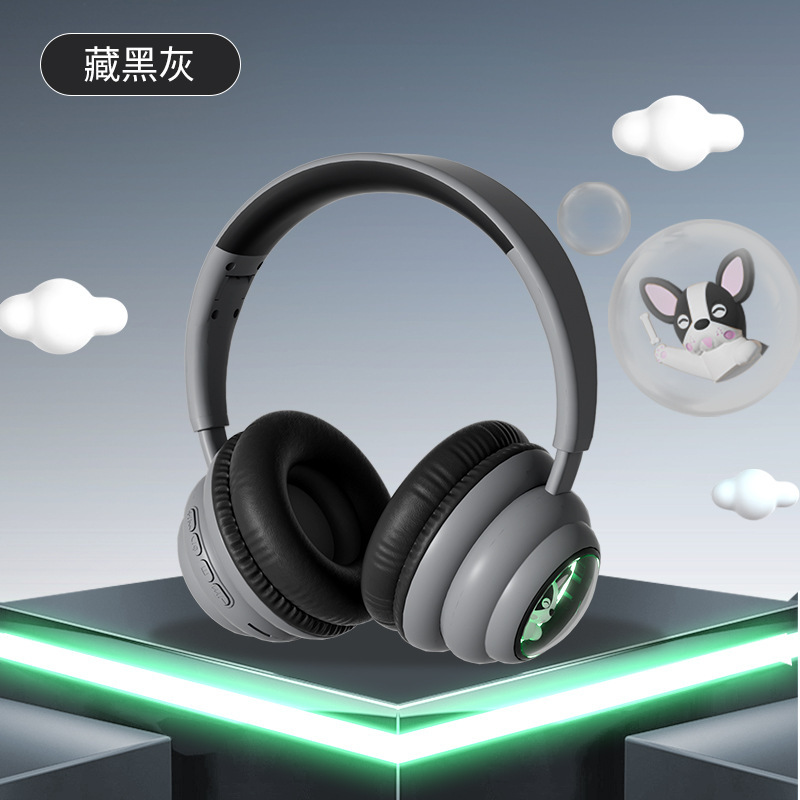 跨境新款头戴式蓝牙耳机发光可爱大电量降噪游戏耳麦可折叠高颜值