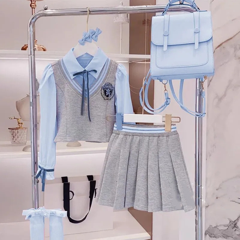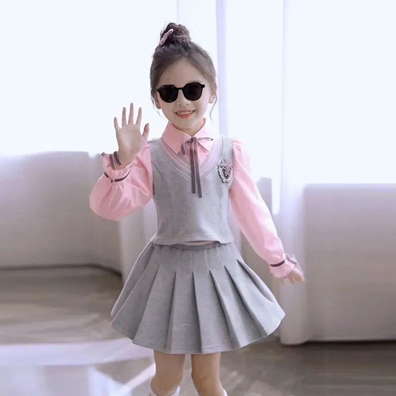 여아 스커트 세트 2025 가을 신상 아동 봄 가을 의류 중대형 아동용 컬리지 스타일 상의 세련된 반바지스토어 가기