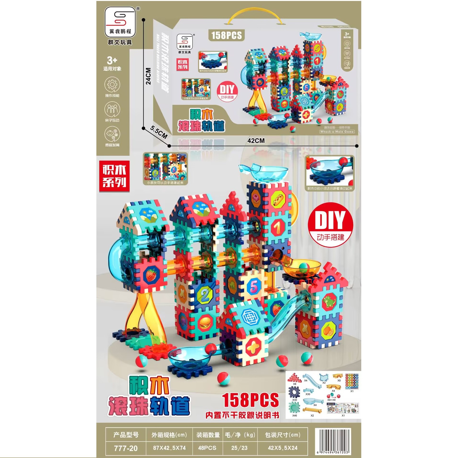777-20 어린이 교육 빌딩 블록 핀볼 트랙 158 조각 선물 상자 세트 등록 선물 어린이 장난감 도매