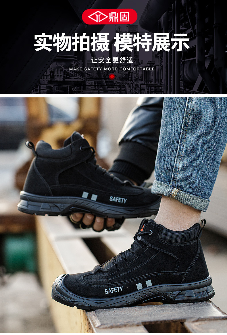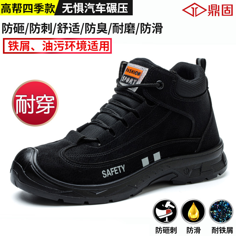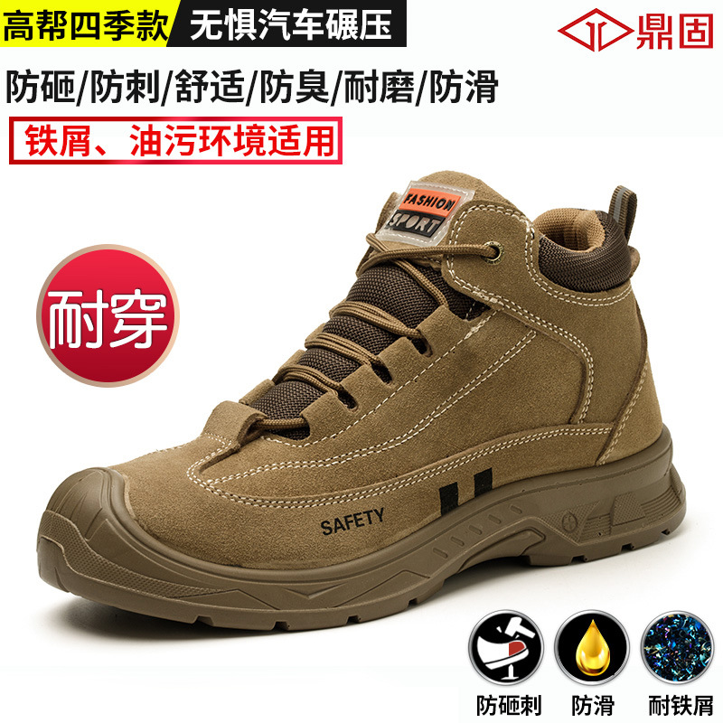Dinggu 용접기 노동 보호 신발 남성용 스매시 방지 핀 내성 툴링 신발 내화성 Cowhide 안전 작업 신발스토어 가기