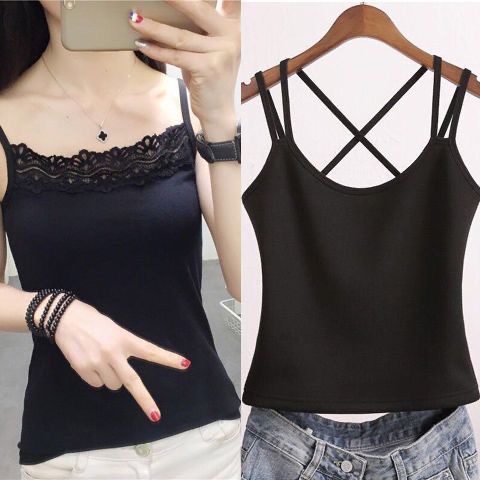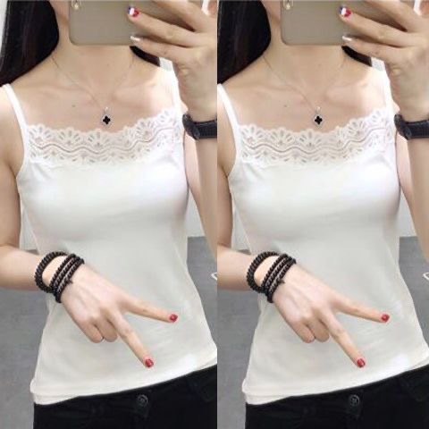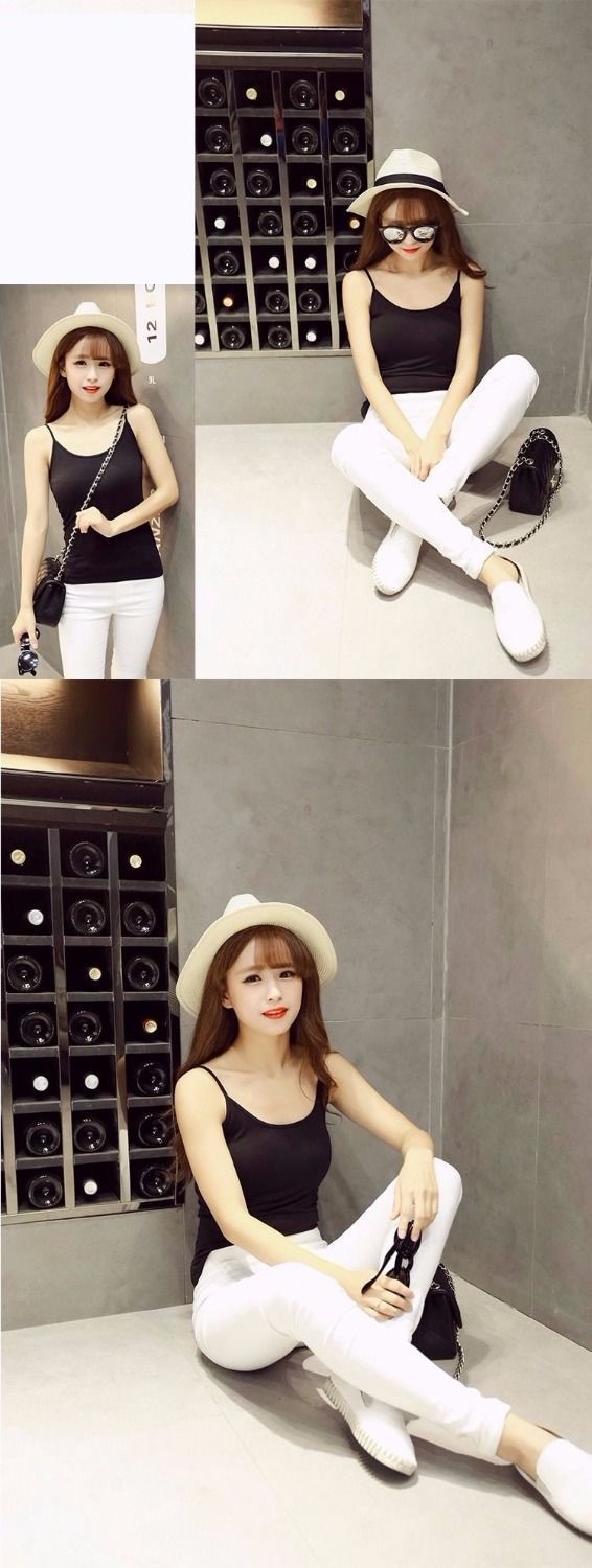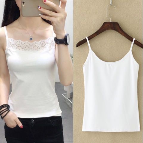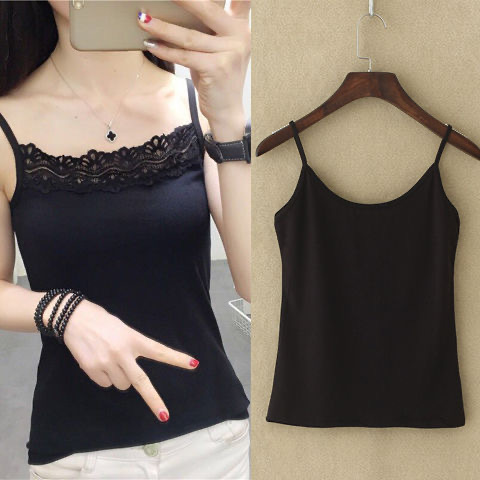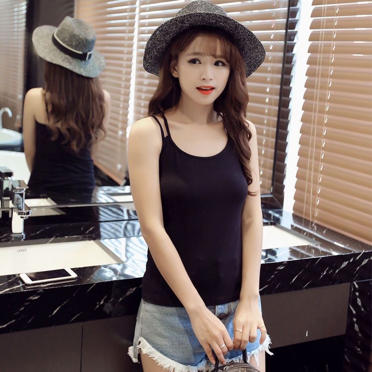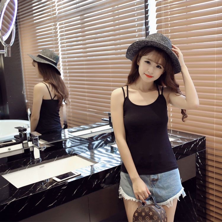 단색 캐미솔 여성의 노출 방지 바닥 셔츠 1-2 짧은 슬림 안쪽과 바깥 쪽 착용 학생 캐미솔스토어 가기