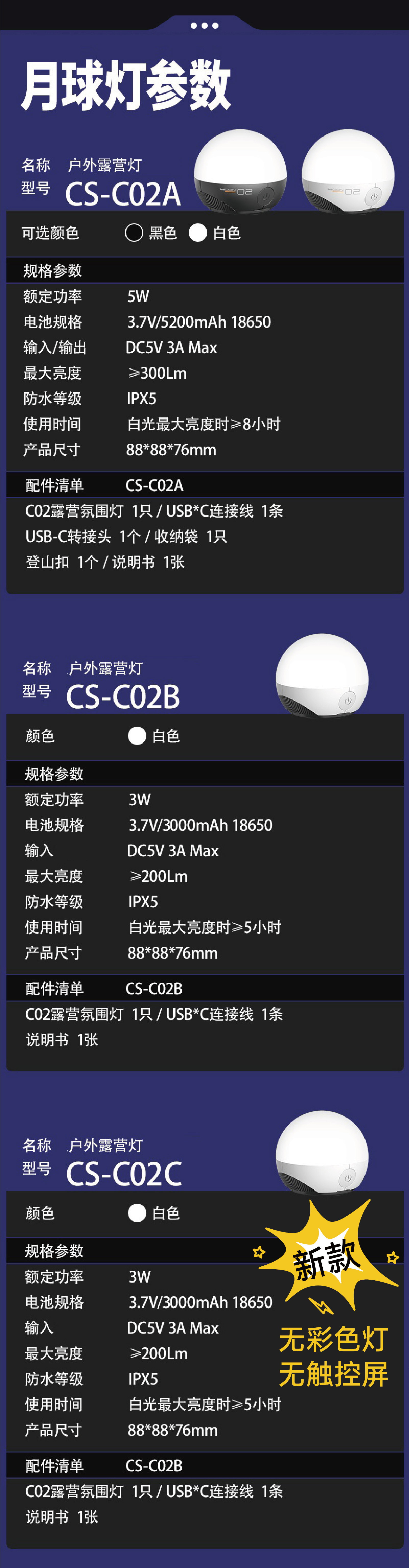 • C02-A-문라이트 화이트 [5200mAh] [백색광/황색광/다채로운 주변광/SOS] [모바일 전원]