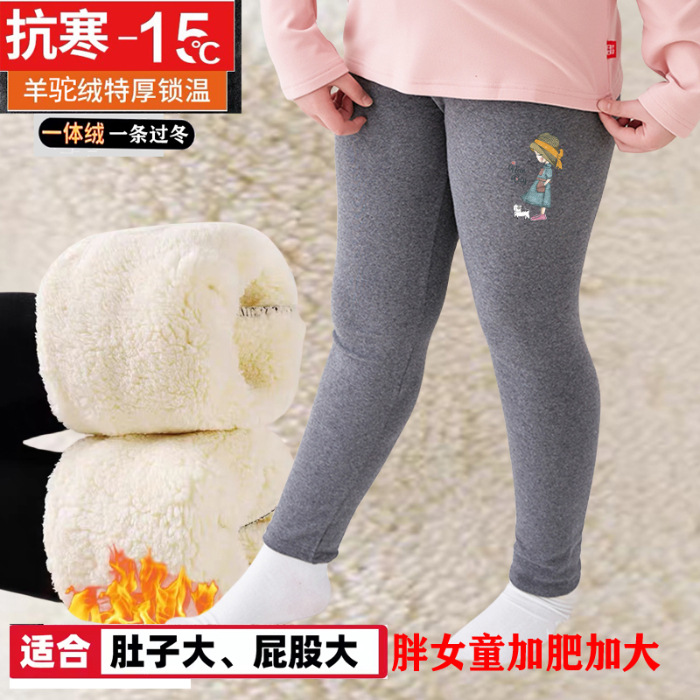 뚱뚱한 소녀 플러스 사이즈 레깅스 높은 탄성 봄, 가을, 겨울 큰 아이들 플러스 사이즈 기모 슬리밍 외부 바지