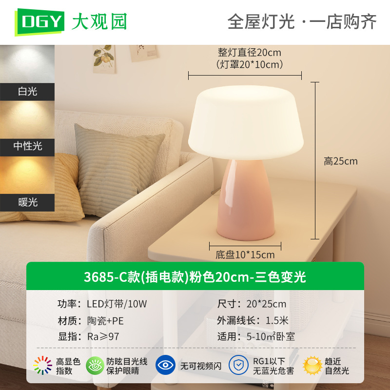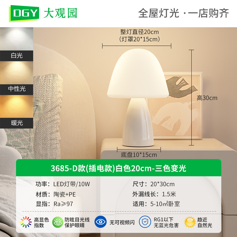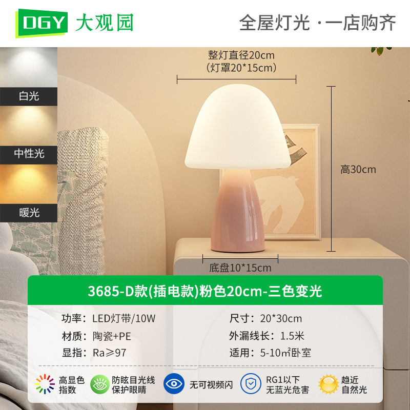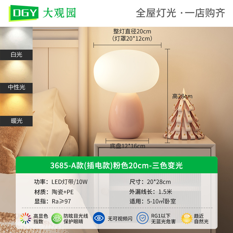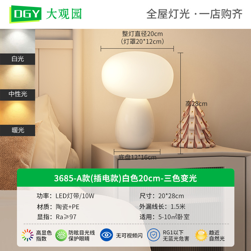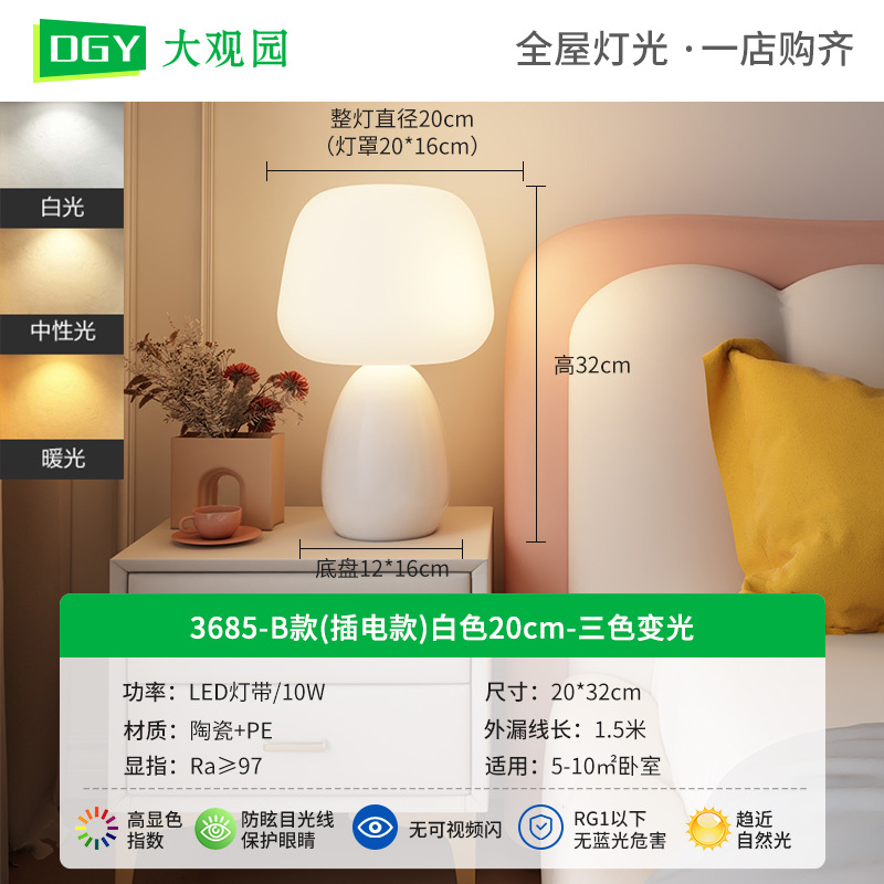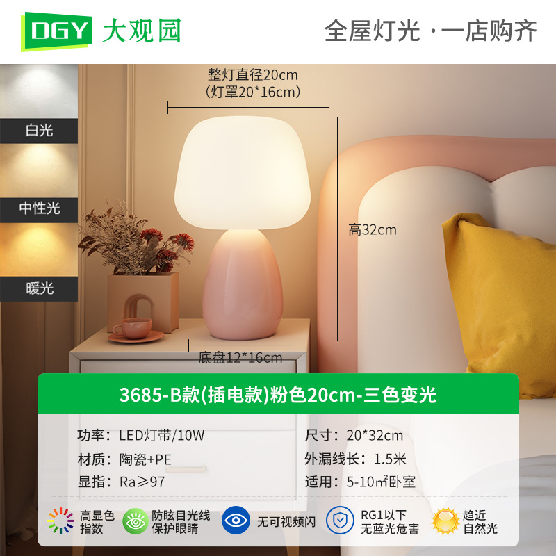 대관원 테이블 램프 침대 옆 램프 크림 스타일 버섯 모양 모던 심플 귀여운 소녀 장식 분위기 야간등 179L