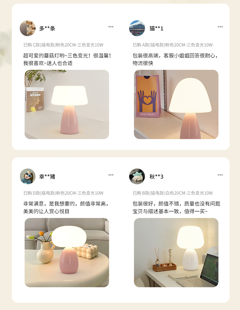 대관원 테이블 램프 침대 옆 램프 크림 스타일 버섯 모양 모던 심플 귀여운 소녀 장식 분위기 야간등 179L스토어 가기