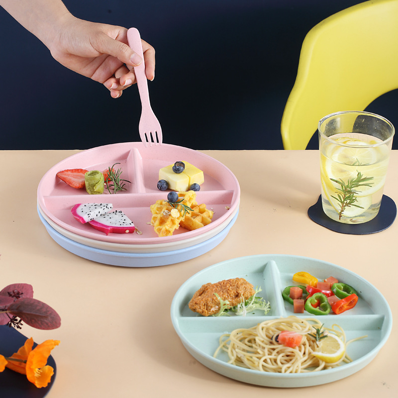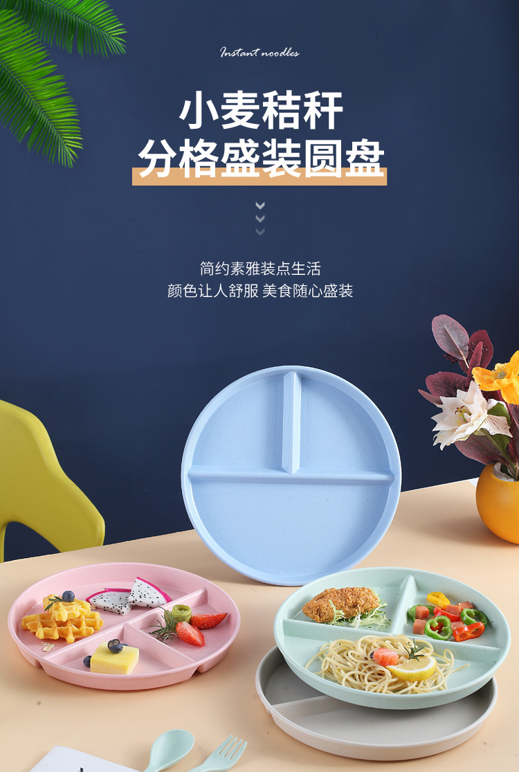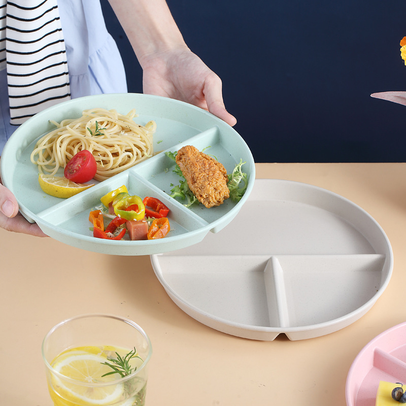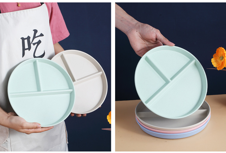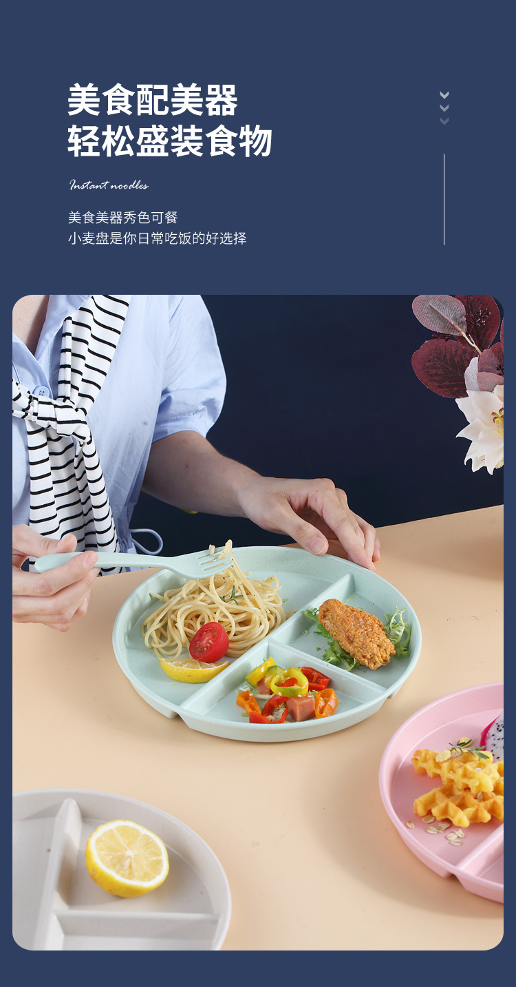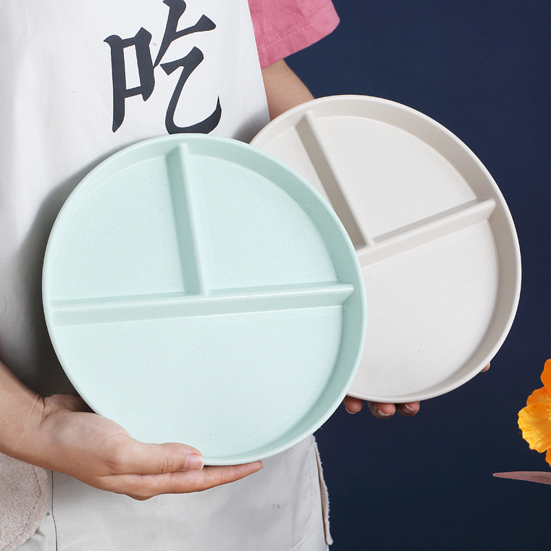 밀 밀짚 그리드 플레이트 피트니스 전문가 지방 감소 플레이트 과일 샐러드 플레이트 가정용 플레이트 플라스틱 플레이트 도매스토어 가기