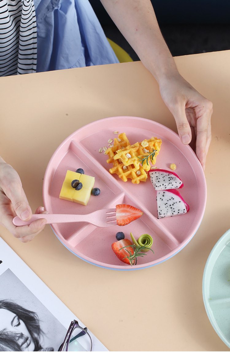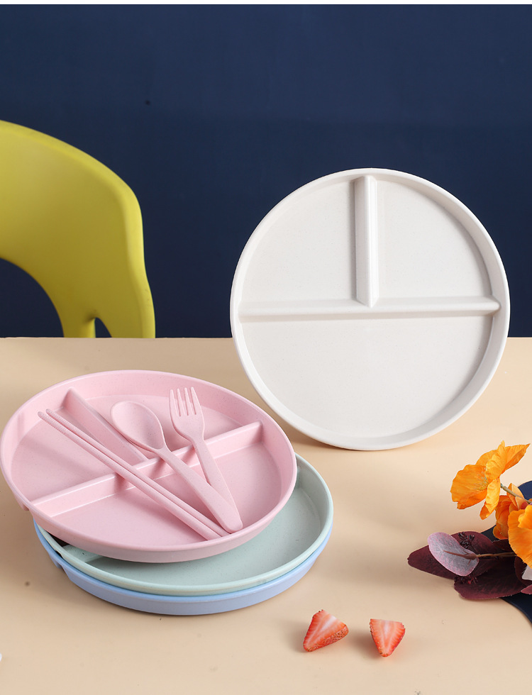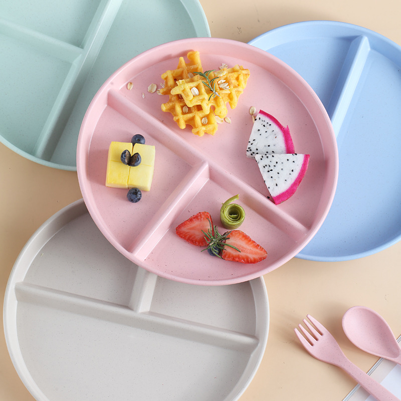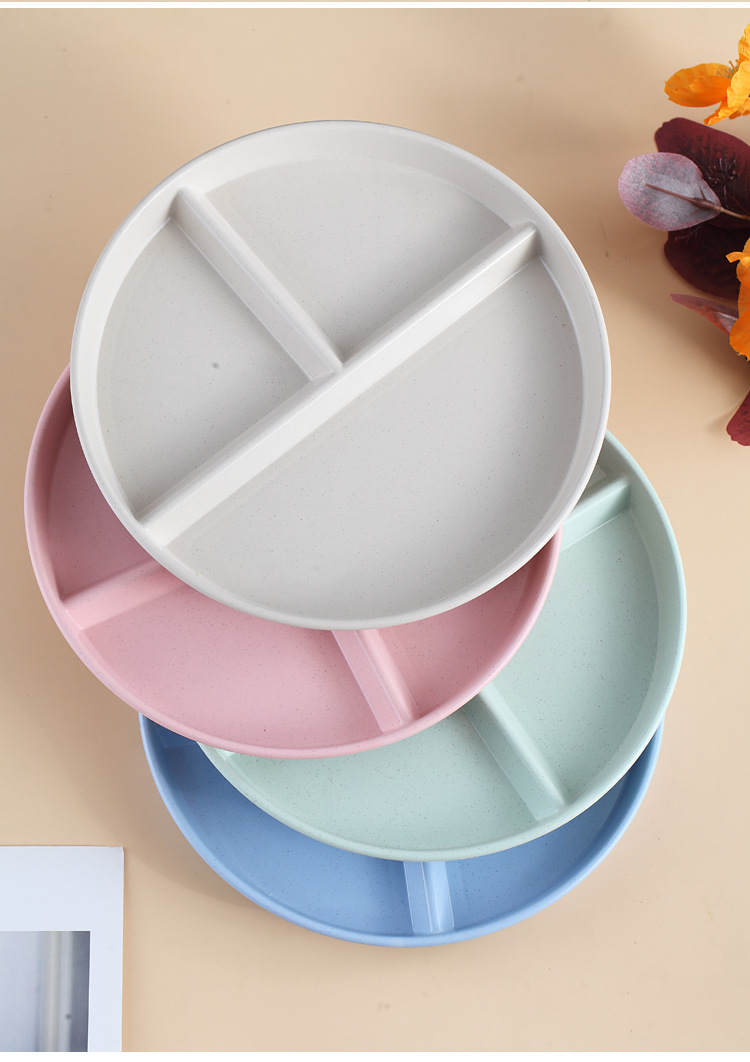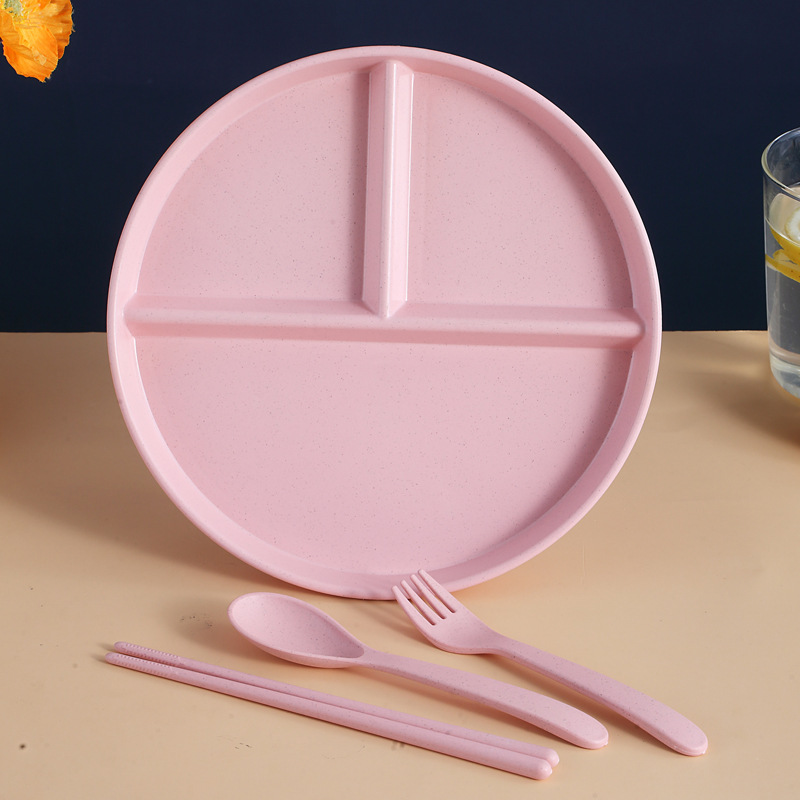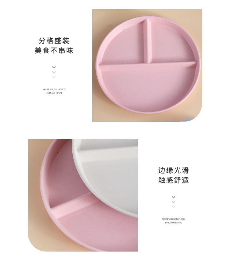 밀 밀짚 그리드 플레이트 피트니스 전문가 지방 감소 플레이트 과일 샐러드 플레이트 가정용 플레이트 플라스틱 플레이트 도매스토어 가기